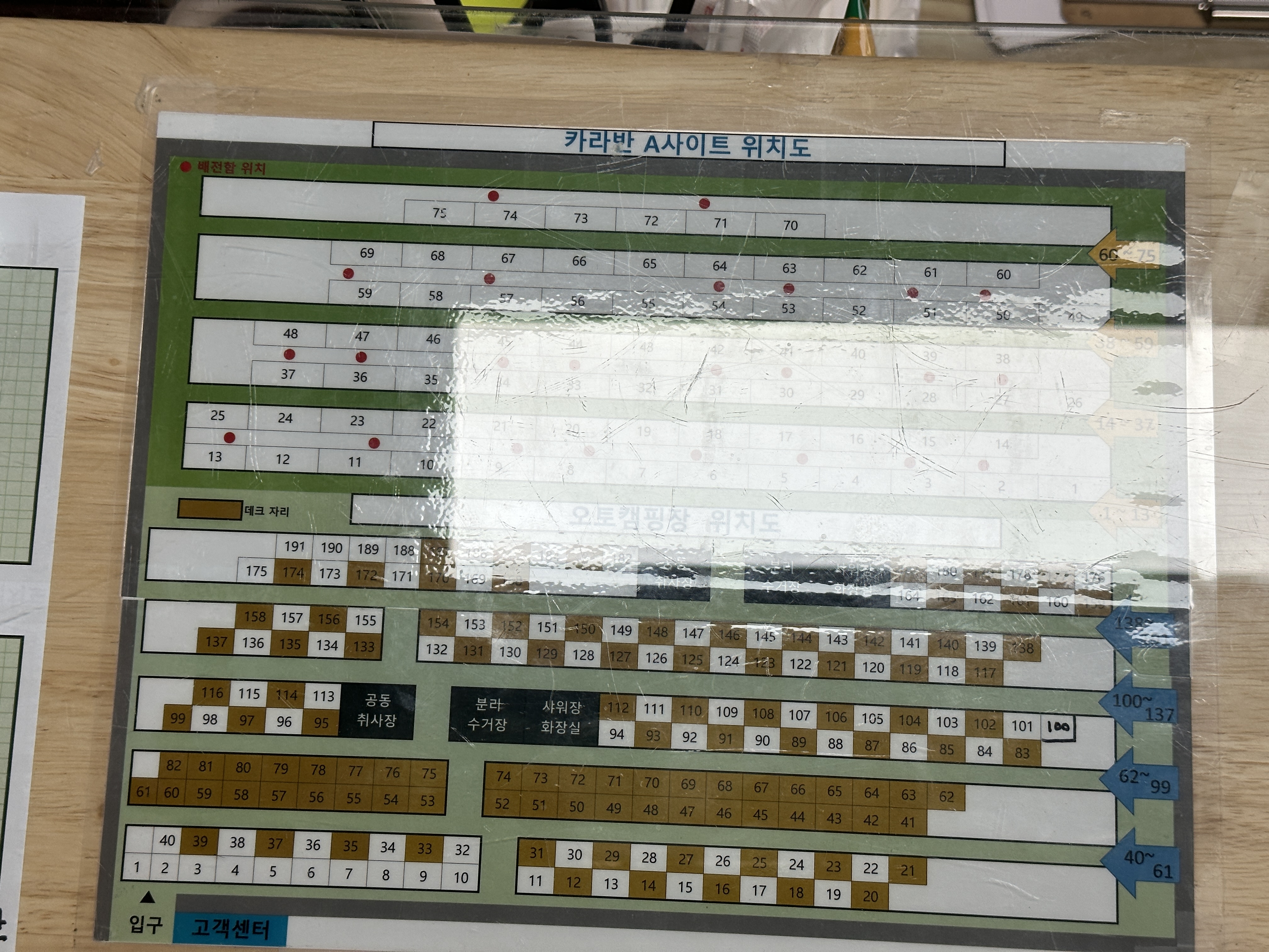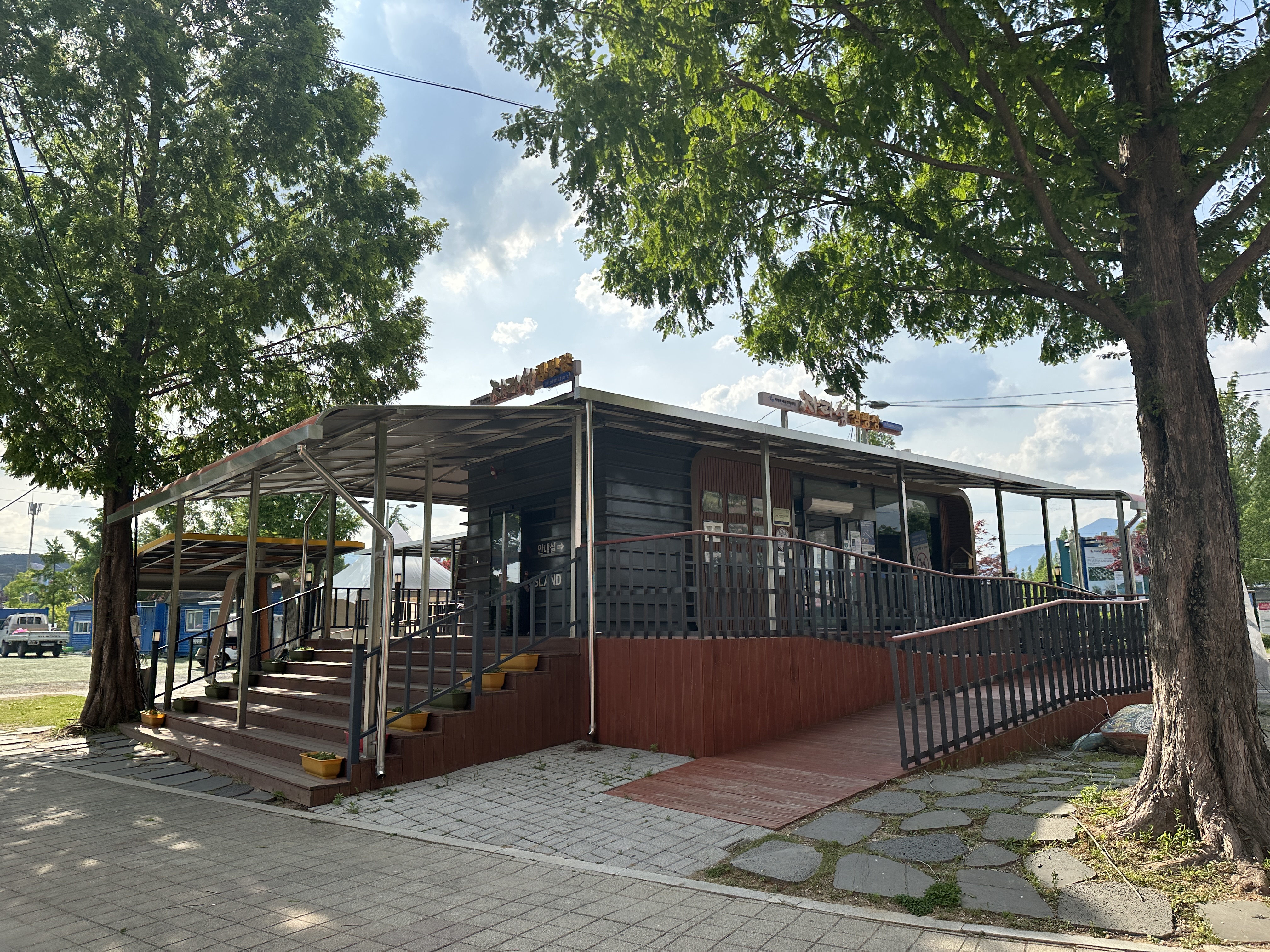 외부 주차장을 지나서 안쪽으로 들어오게 되면, 이렇게 안내소가있습니다. 캠핑장 진입하실 때 들어가셔서 신분증을 보여드리면 예약 사이트 확인 해주십니다. 사이트 위치도와 입실안내도 안내되어있고, 음식물 쓰레기 종량제봉투 한봉지와 기타 투명 봉지 두장을 주십니다. (어차피 분리수거 하니까요)