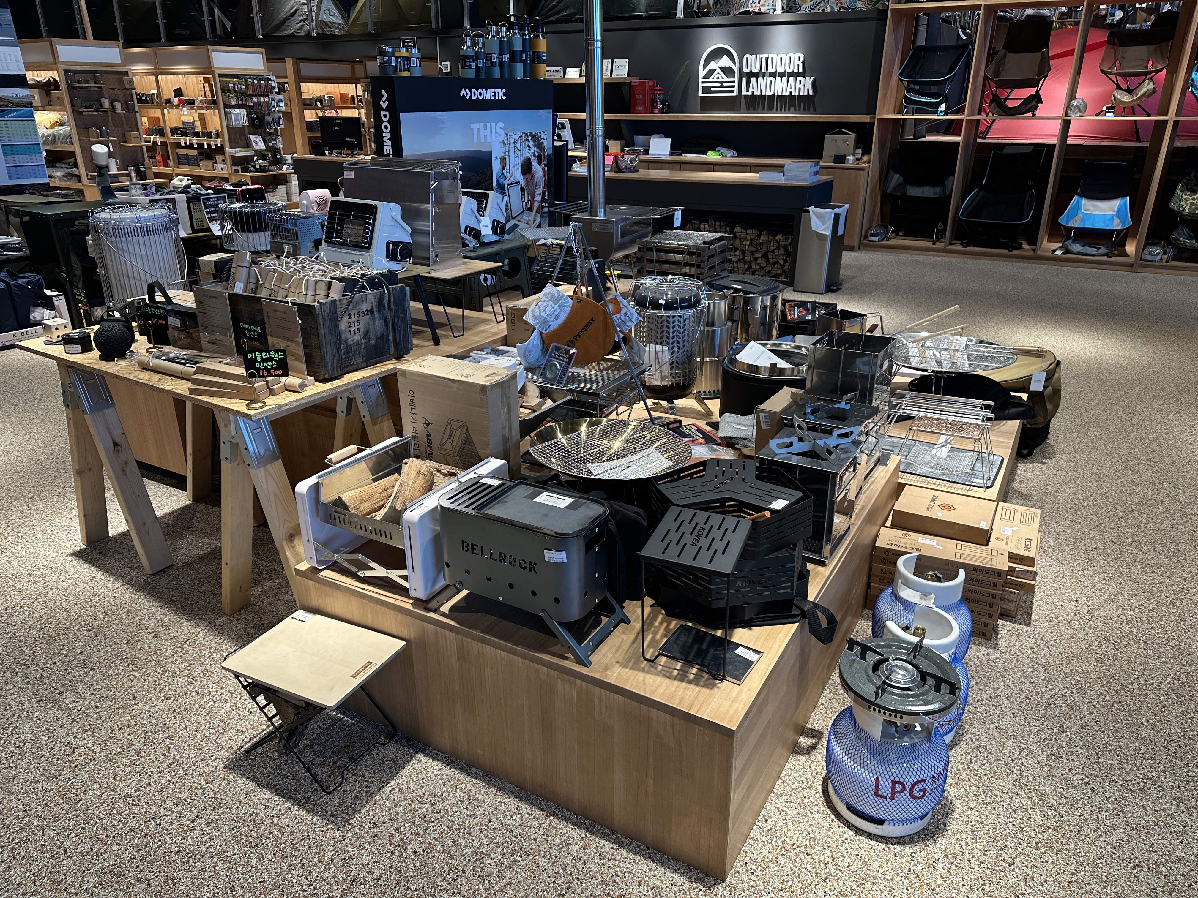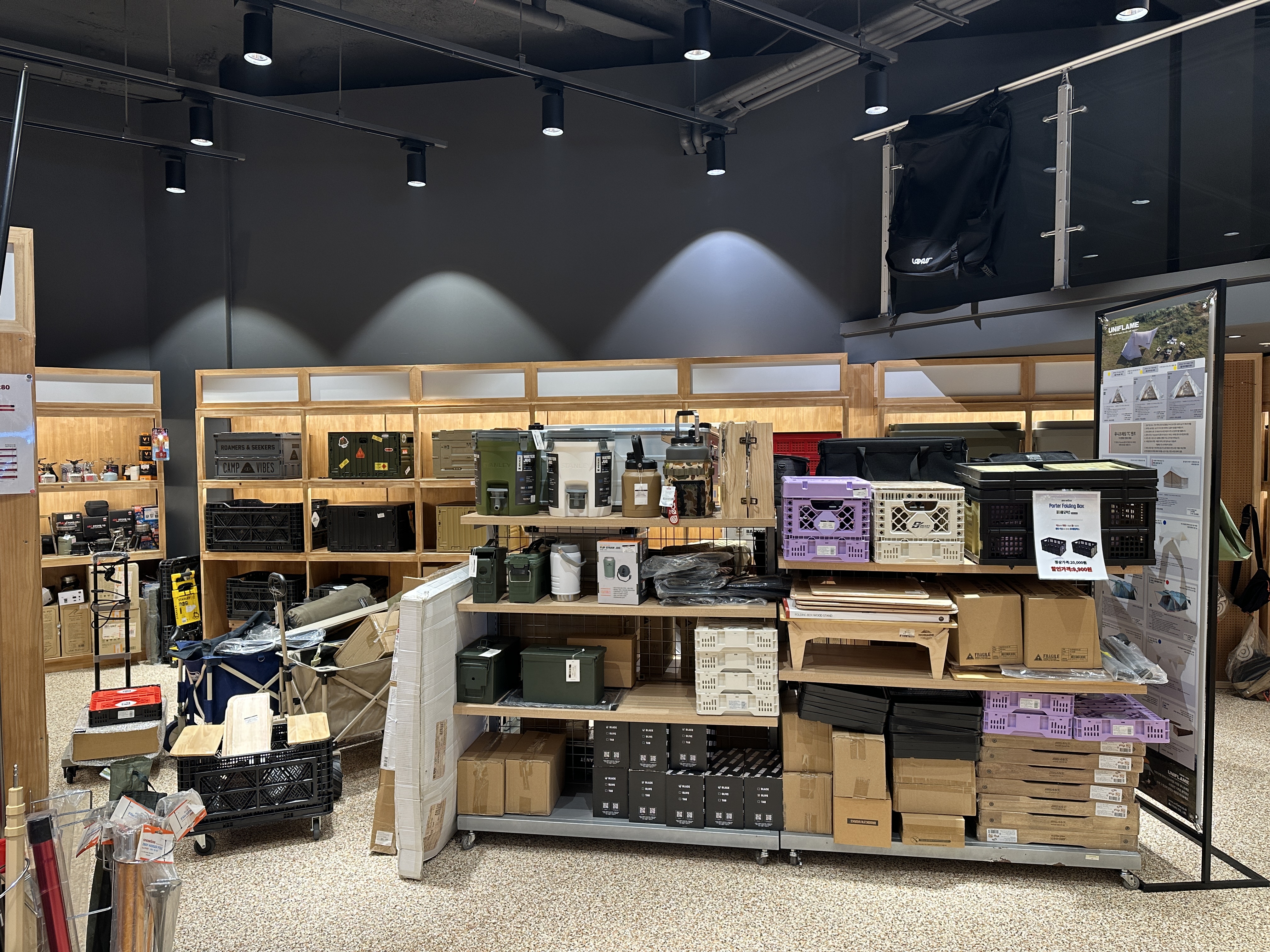 오른쪽 안쪽으로 오니 조명용품들이 또 있습니다. 기름랜턴부터 요새 충전해서 사용하는 랜턴 등 다양한 랜턴들이 전시되어 있습니다. 제 아이템인 베른 테이블도 딱 자리에 있네요 ㅋㅋㅋ 반갑습니다. ㅋㅋㅋ 근데 은색이 더 이쁜것 같기도 하고 ㅎㅎ