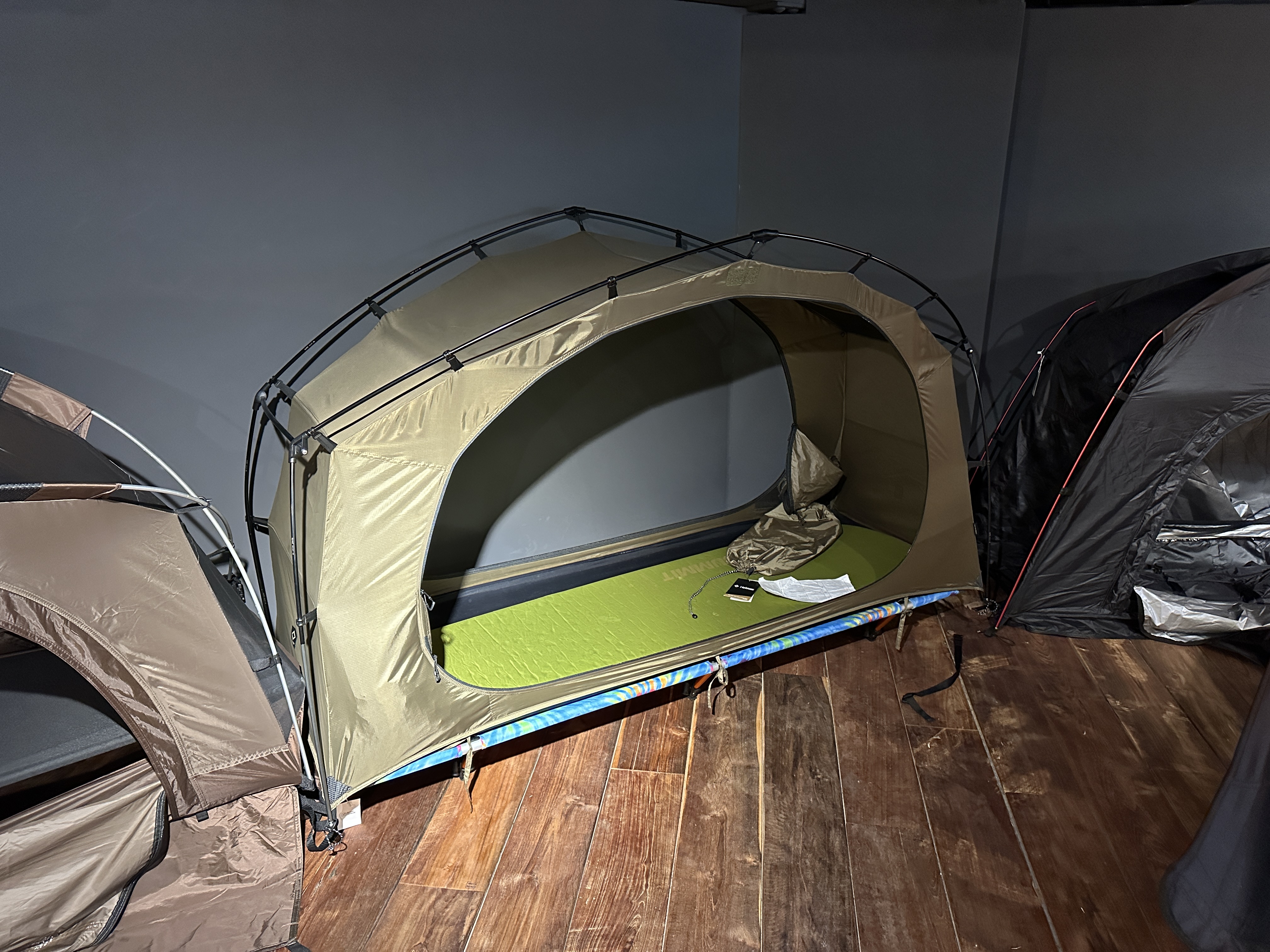 반층 올라가는 쪽에는 이렇게 텐트가 피칭되어 있습니다. 힐레베르그 텐트도 있고, 백컨트리도 있네요 ㅎㅎ 헬리녹스 코트텐트도 있습니다. 저건 진짜 사고싶은데... ㅠㅠ