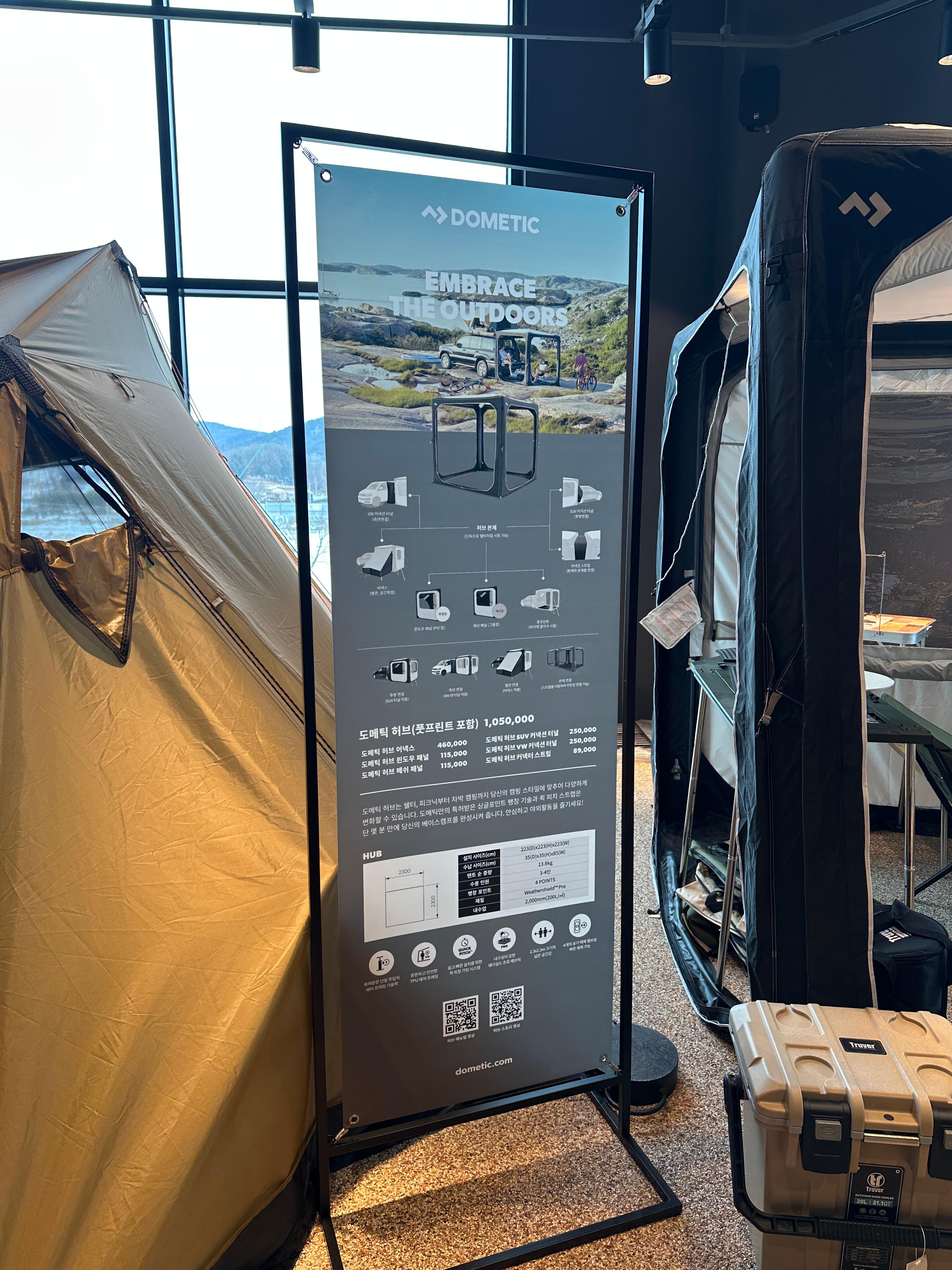 한쪽 면을 차지하던 텐트들 사이에 처음보는 텐트가 있어서 사진으로 찍어둡니다. 이녀석은 SUV와 도킹이 되는 에어 텐트더라구요. 생각보다 괜찮아보였습니다. 텐트가 없었다면 한번 쯤 고민해 볼 만 한 녀석입니다. ㅋㅋ