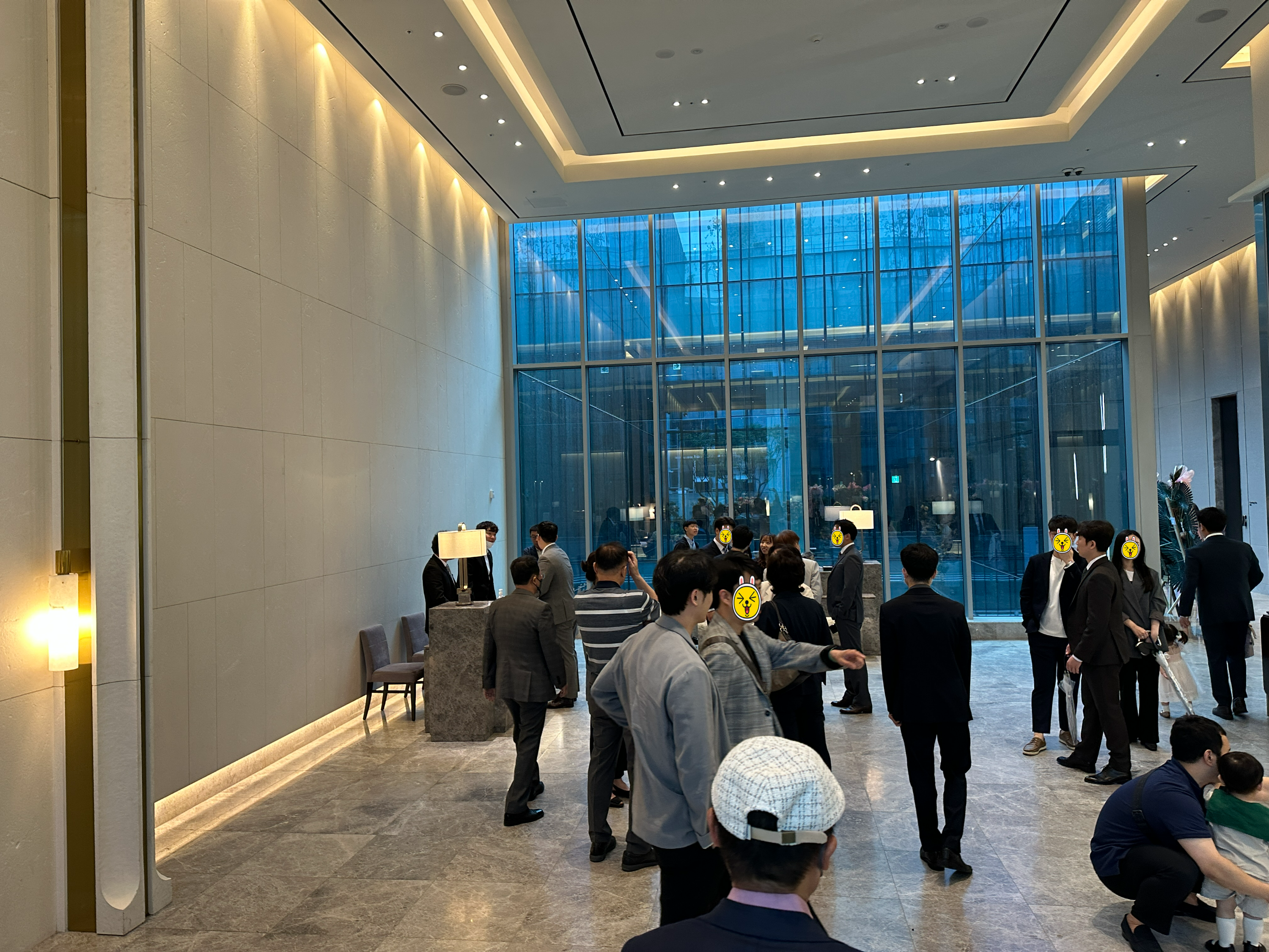 식 진행 중인 신랑 신부님께서 아주 발이 넓으신 모양입니다. 손님이 많아서 사진 찍기가 쉽지 않았어요 ㅎㅎ 하객분들께서 계실만한 로비도 적당하게 있었고, 특이하게도 포토존이 예쁘게 꾸며져 있습니다.