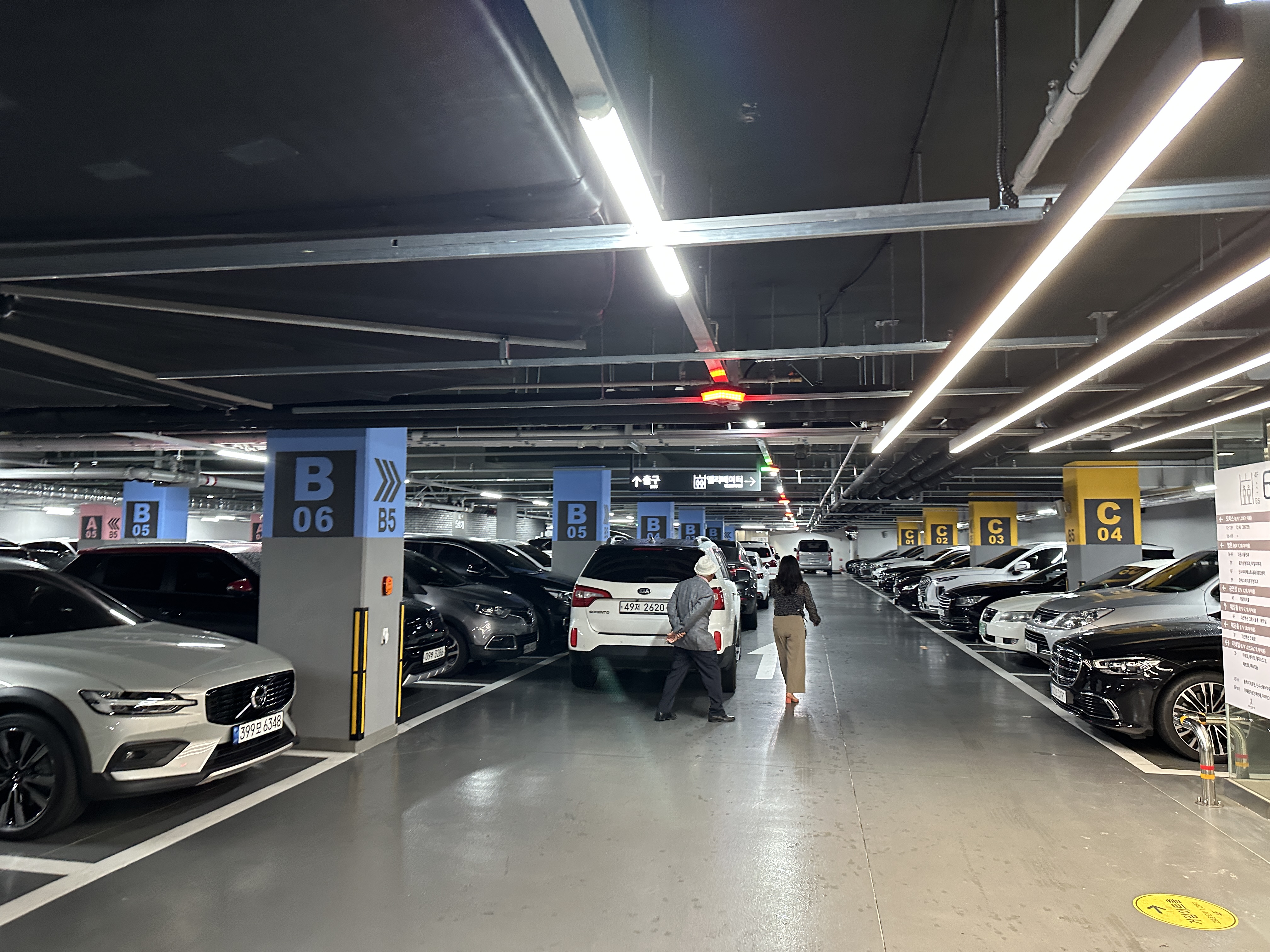 - 위의 사진에서 보실 수 있듯이, 지하 5층에서 대기하는 차량이 많았습니다. (하객이 많은 혼주라 그럴 가능성도 있으니 부족하다 넉넉하다는 판단하지 않겠습니다.) 결국 저도 벽면에 대고 올라갔다 오니 이중주차까지 해서 차량들이 들어서는 모습을 볼 수 있었습니다.