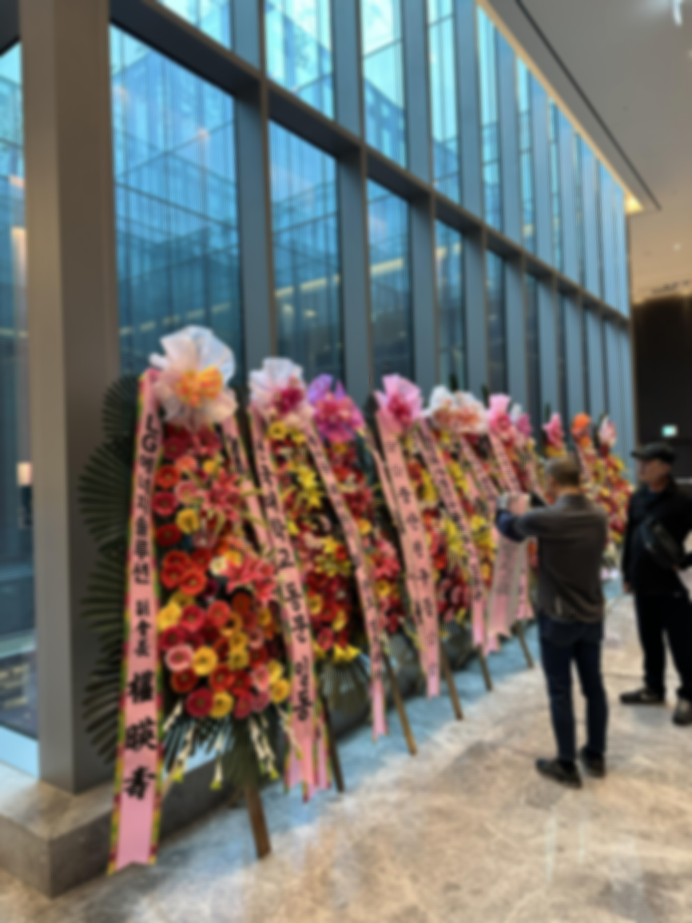 더컨벤션 신사점에서는 엘리베이터에서 나오자마자 바로 로비와 예약실이 있는데, 나가실 때 답례품도 이곳에서 교환하여 가져가시면 됩니다. 예약실을 끼고 돌아들어가면 화환들이 놓여 있고, 식장으로 이어지게 됩니다.