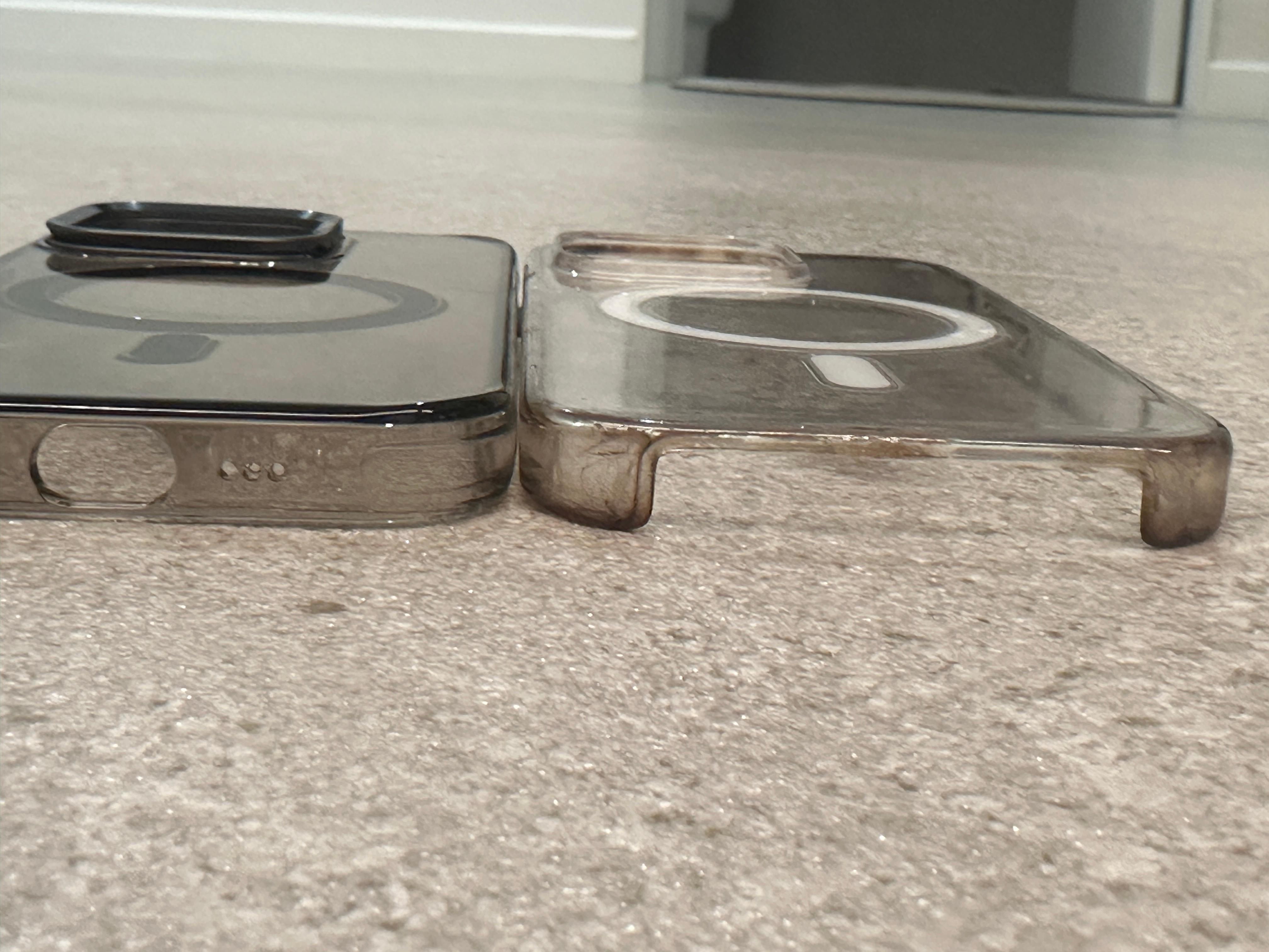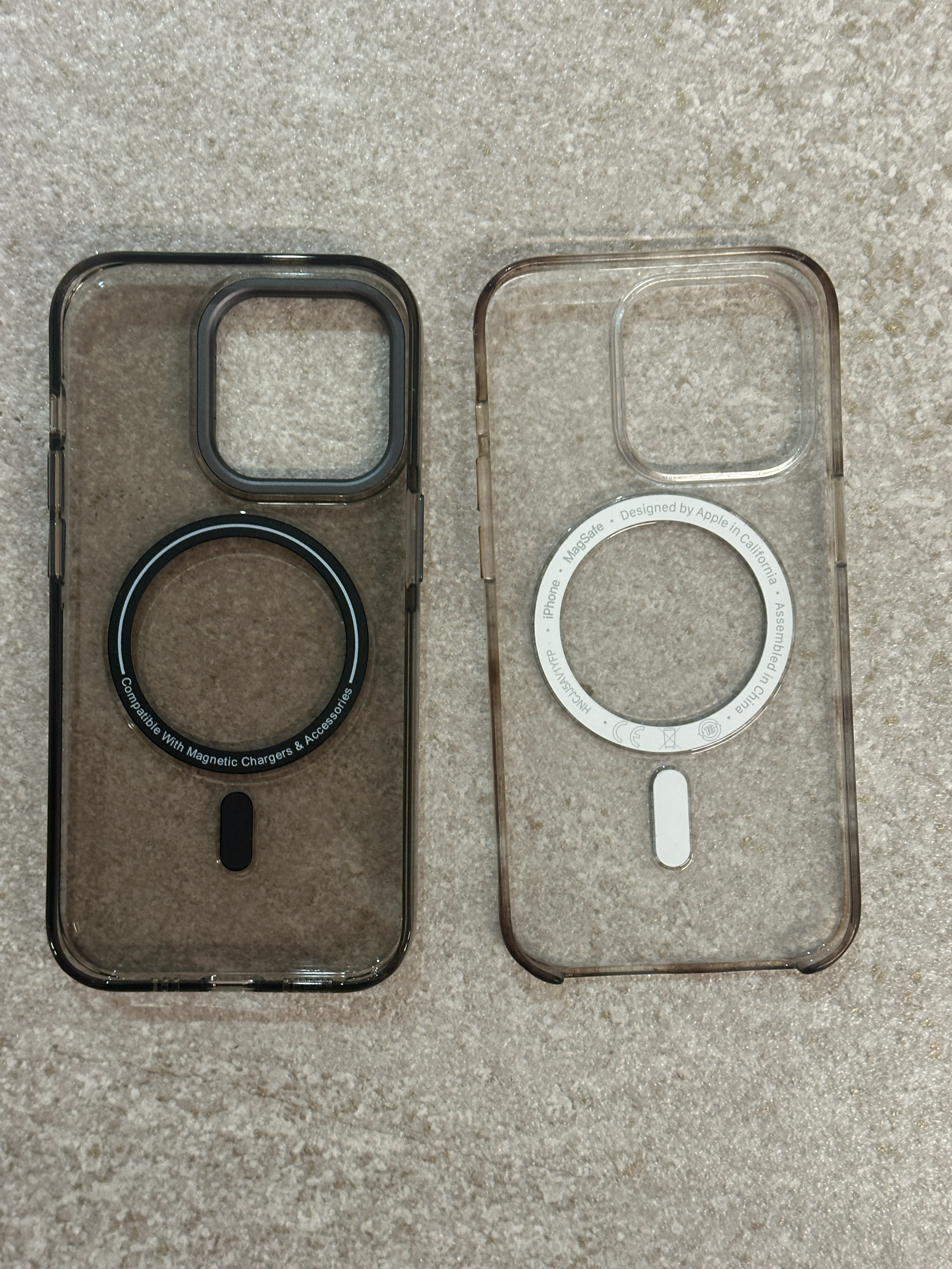 사용중이던 정품 케이스와 비교를 해 봅니다. 메탈 스탠드를 제외하고 보면 케이스의 색상, 맥세이프 링의 색상 정도만 다를 뿐 거의 똑같습니다. 촉감을 표현할 순 없지만, 만져봤을 때 질감이나 느낌도 거의 동일합니다. ㅎㅎㅎ