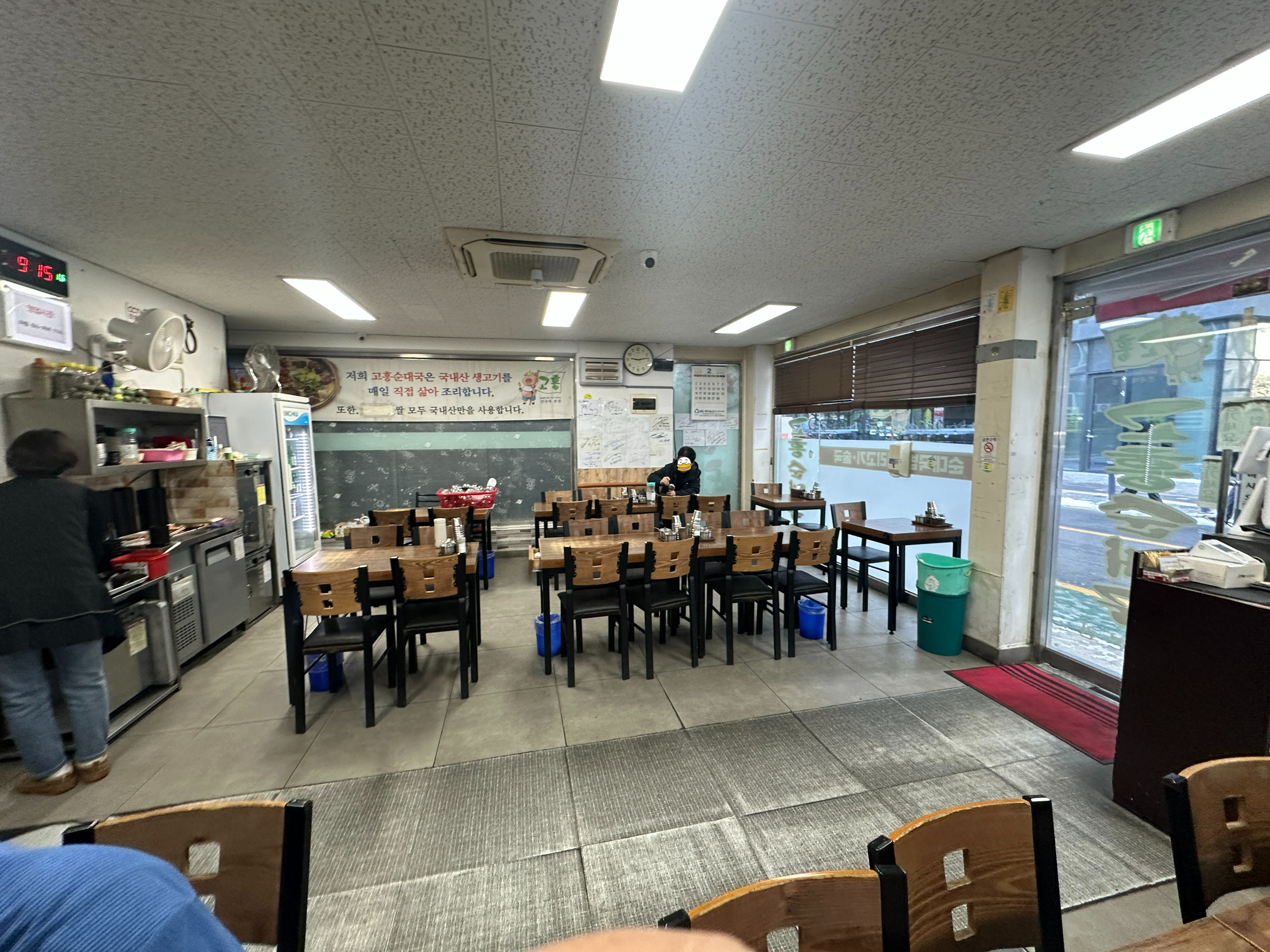 외관도 정겹습니다. 물론, 도로가 너무 깔끔한 건 반전이긴 합니다. ㅎㅎ 앞에 건물도 새로 들어오고 해서 도로만 바뀐건데 사실 느낌이 좀 다르긴 해요 항상 ㅎㅎ 이미 아침 일찍 한끼 드시는 어르신들께서 이쑤시개로 얼마나 맛있었는지를 표현하시고 계셨습니다.