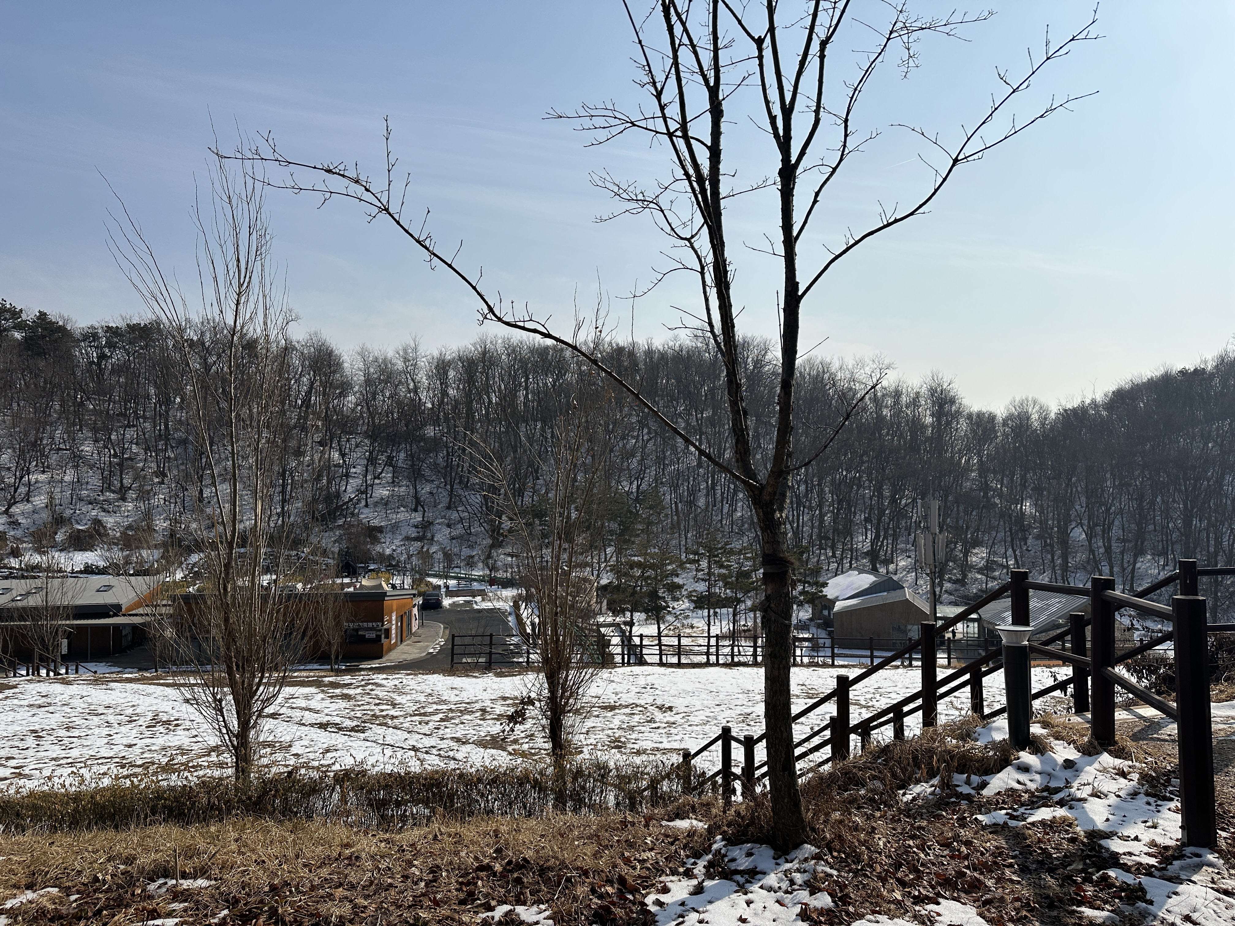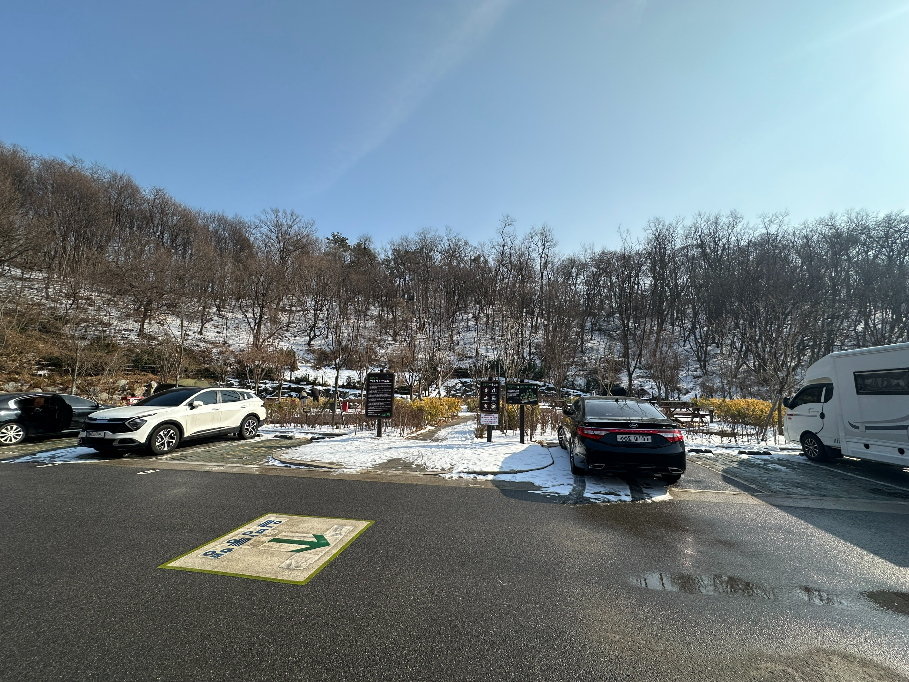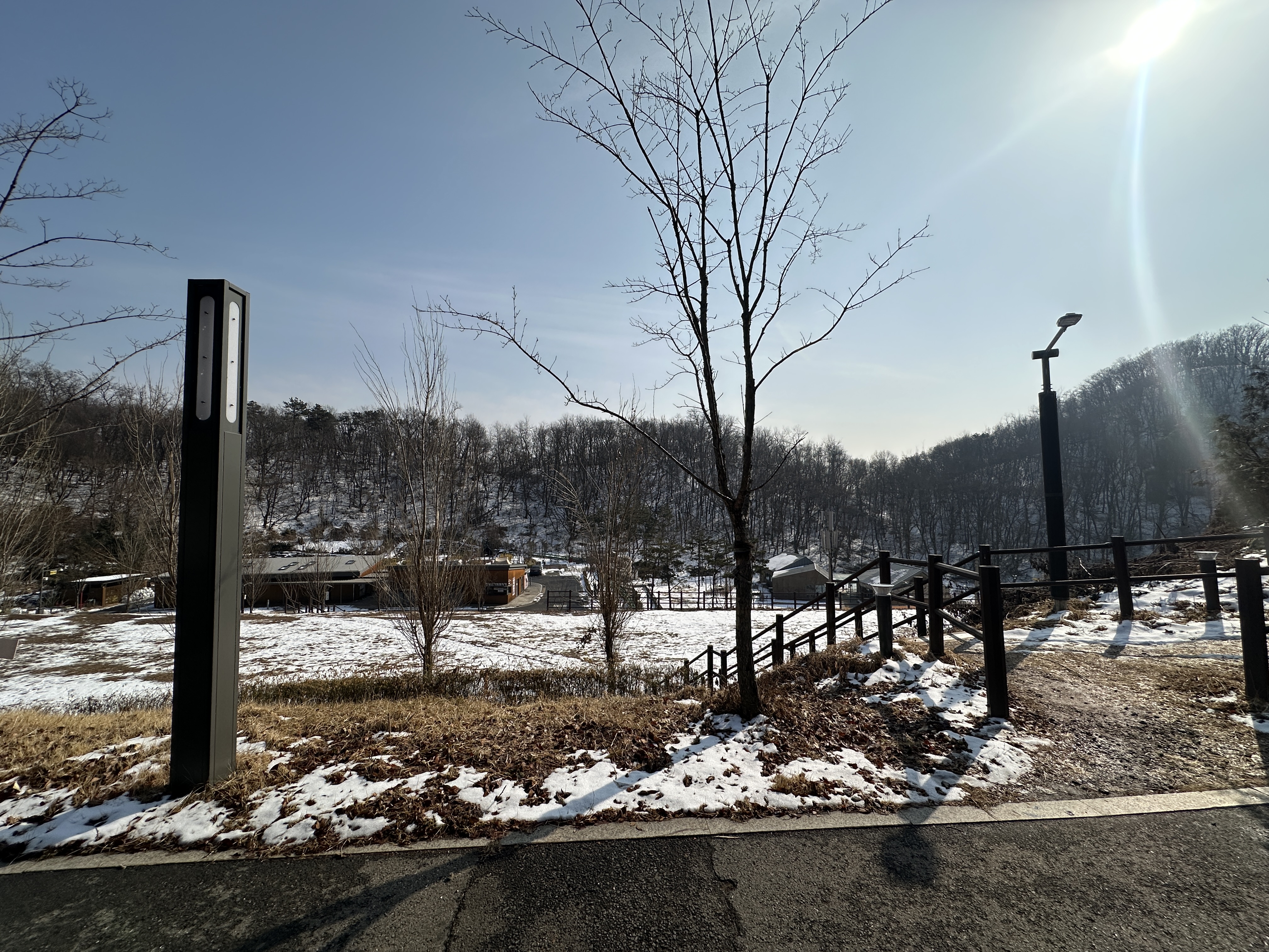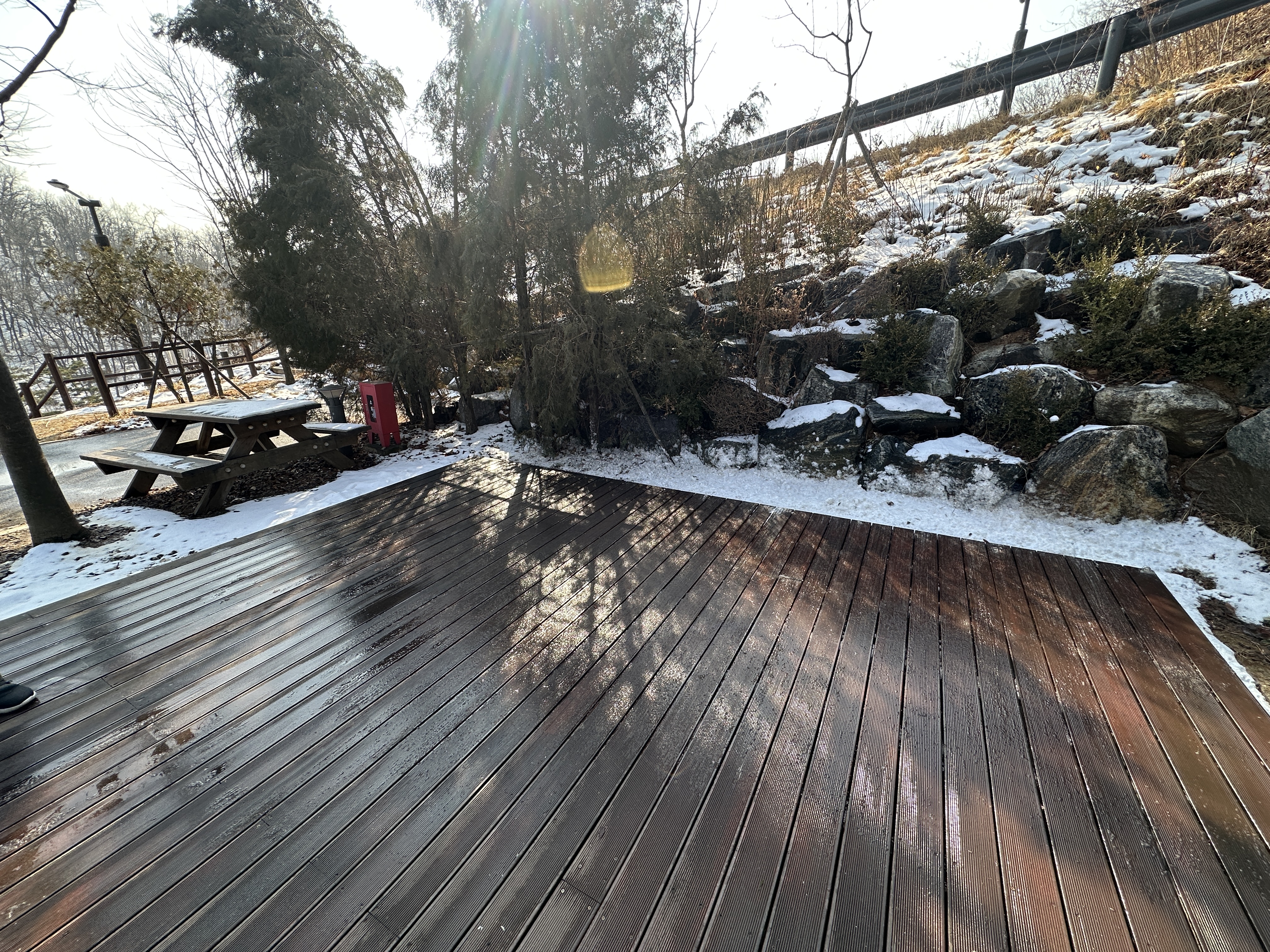 자, 이곳이 구로구 천왕산 가족캠핑장 13번 사이트입니다. 길 끝에 있다고 생각하실 수 있는데, 사진과 같이 언덕쪽에 나무가 무성하게 올라와 있어서 그늘이 져 있는 모습입니다. (체크인시간 기준) 덕분에 눈이 다 녹지 않아서 눈 온 다음에는 조금 불편한 감이 있습니다.