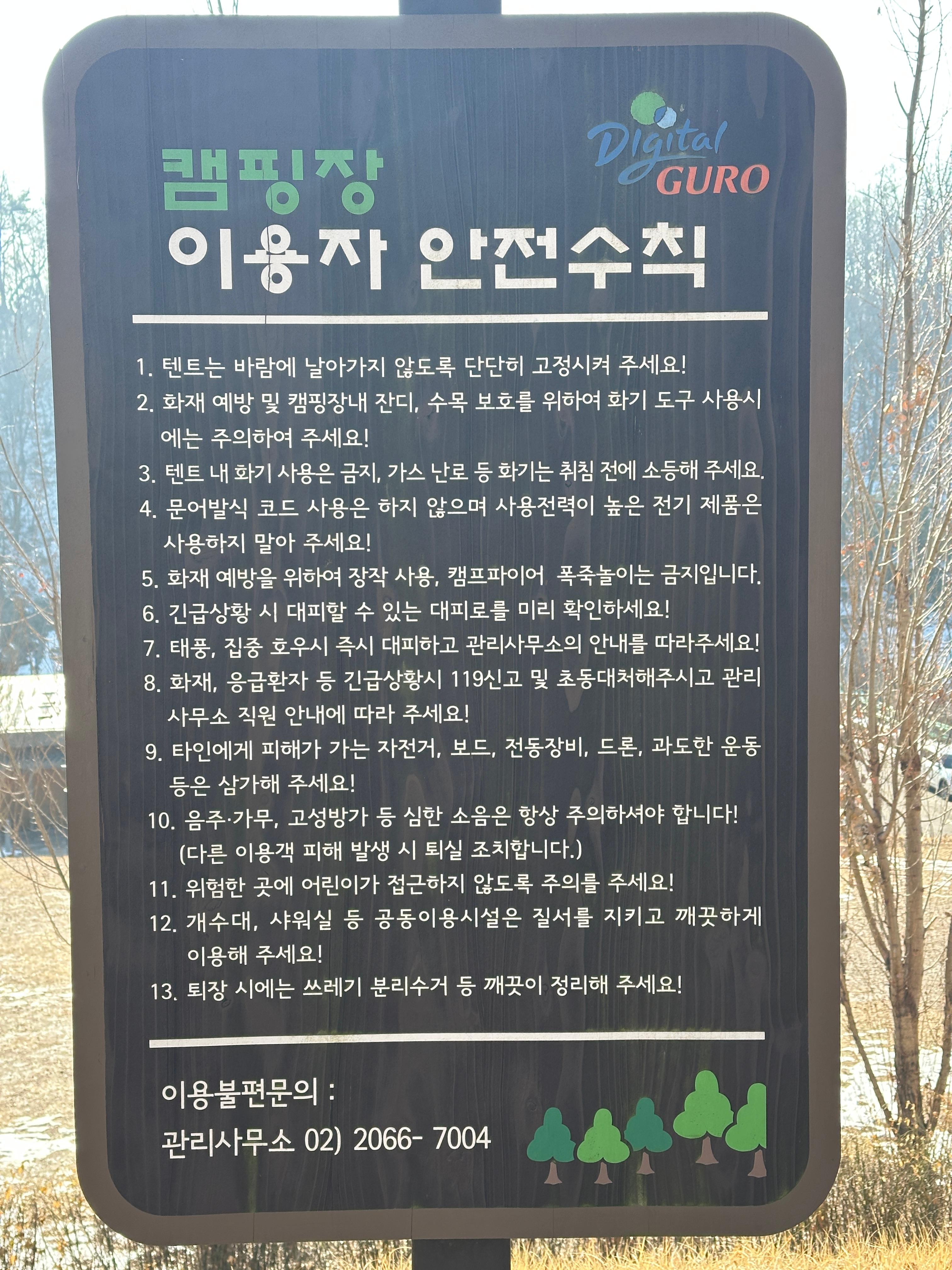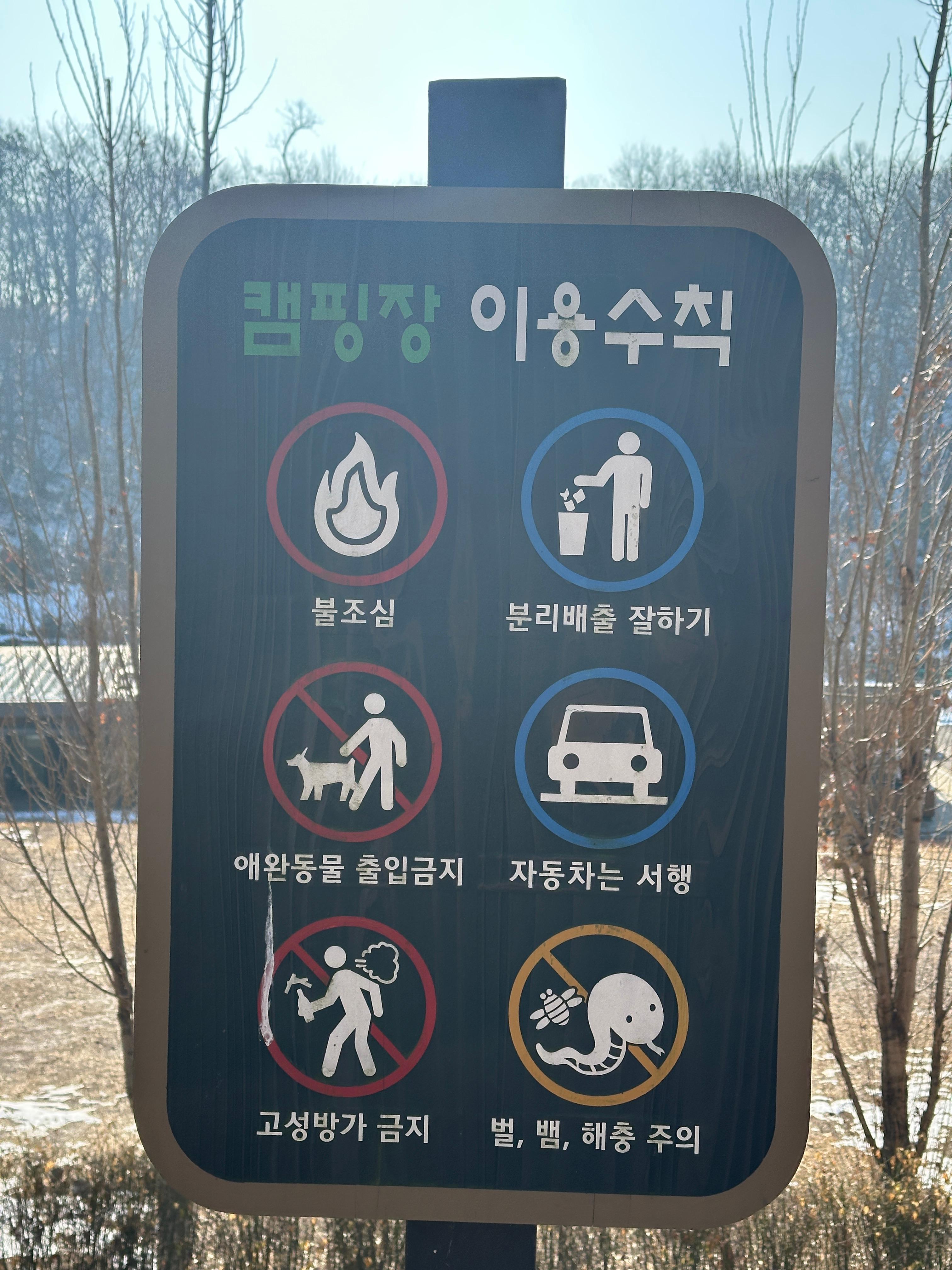 구로구 천왕산 가족캠핑장 이용수칙이 곳곳에 있습니다. 어디서나 지킬 당연한 예절과 매너이죠.ㅋㅋㅋ