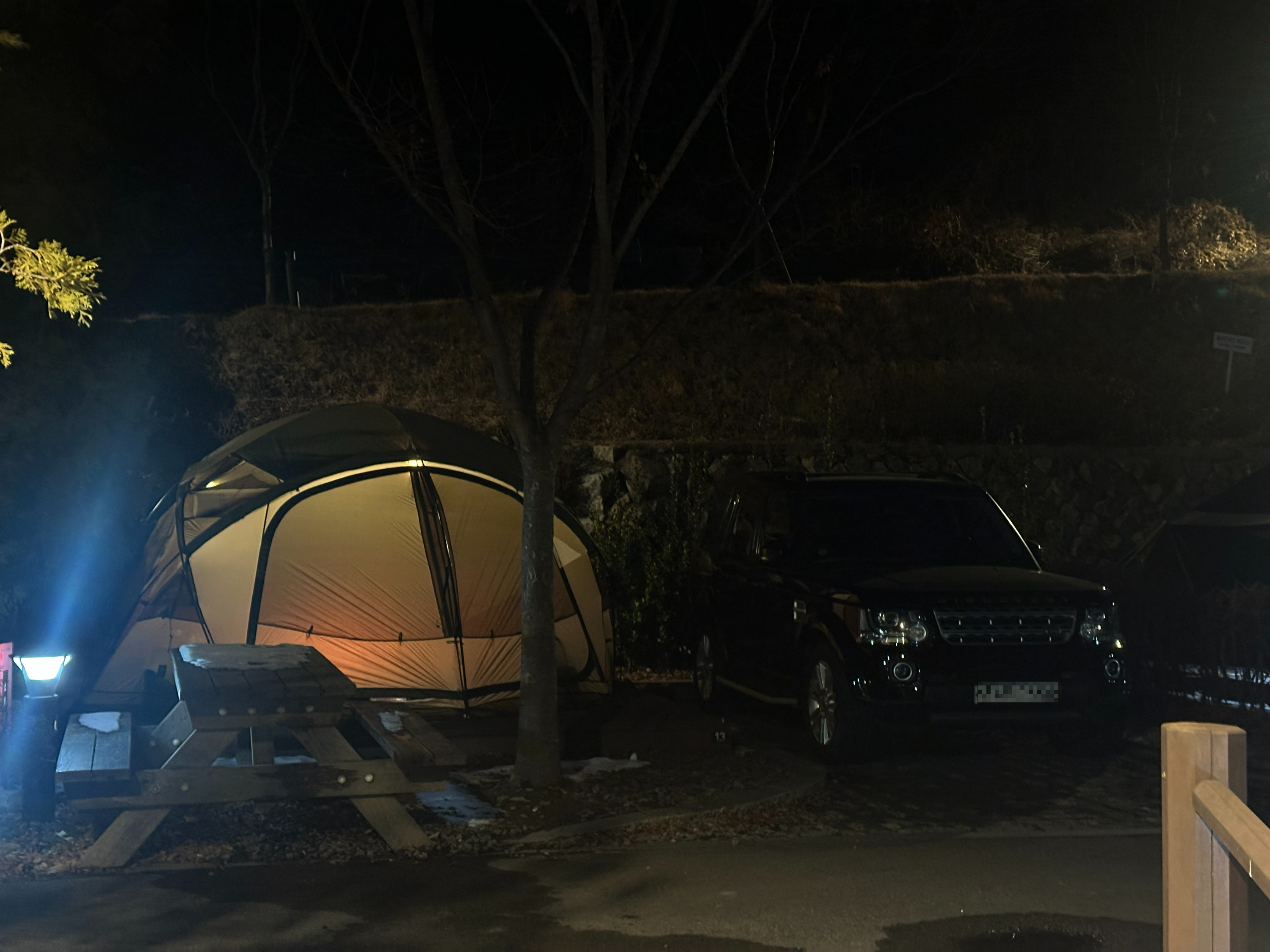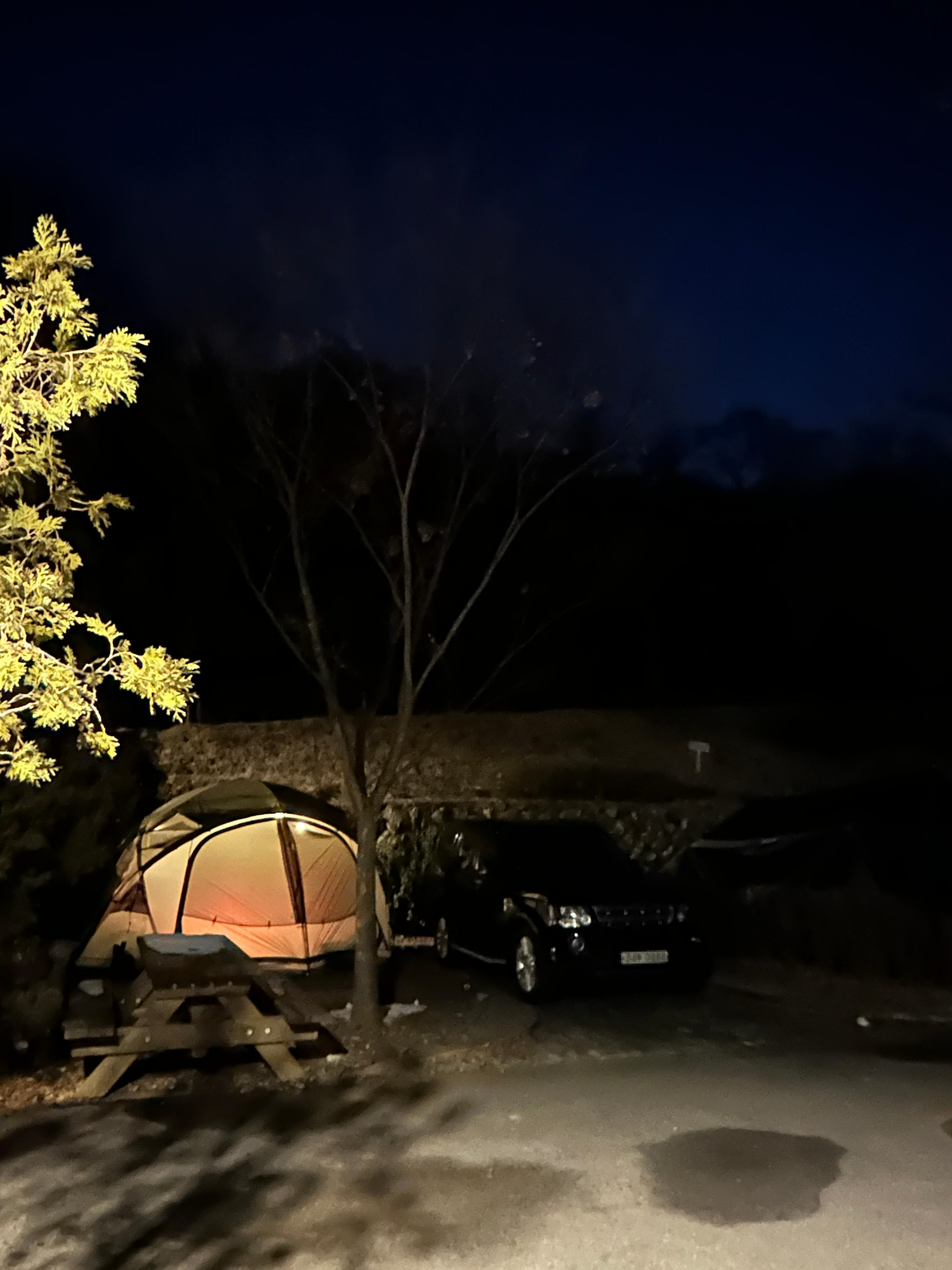 구로구 천왕산 가족캠핑장 오토 13번 사이트의 밤입니다. 텐트는 노나돔(헬리녹스) 입니다.
