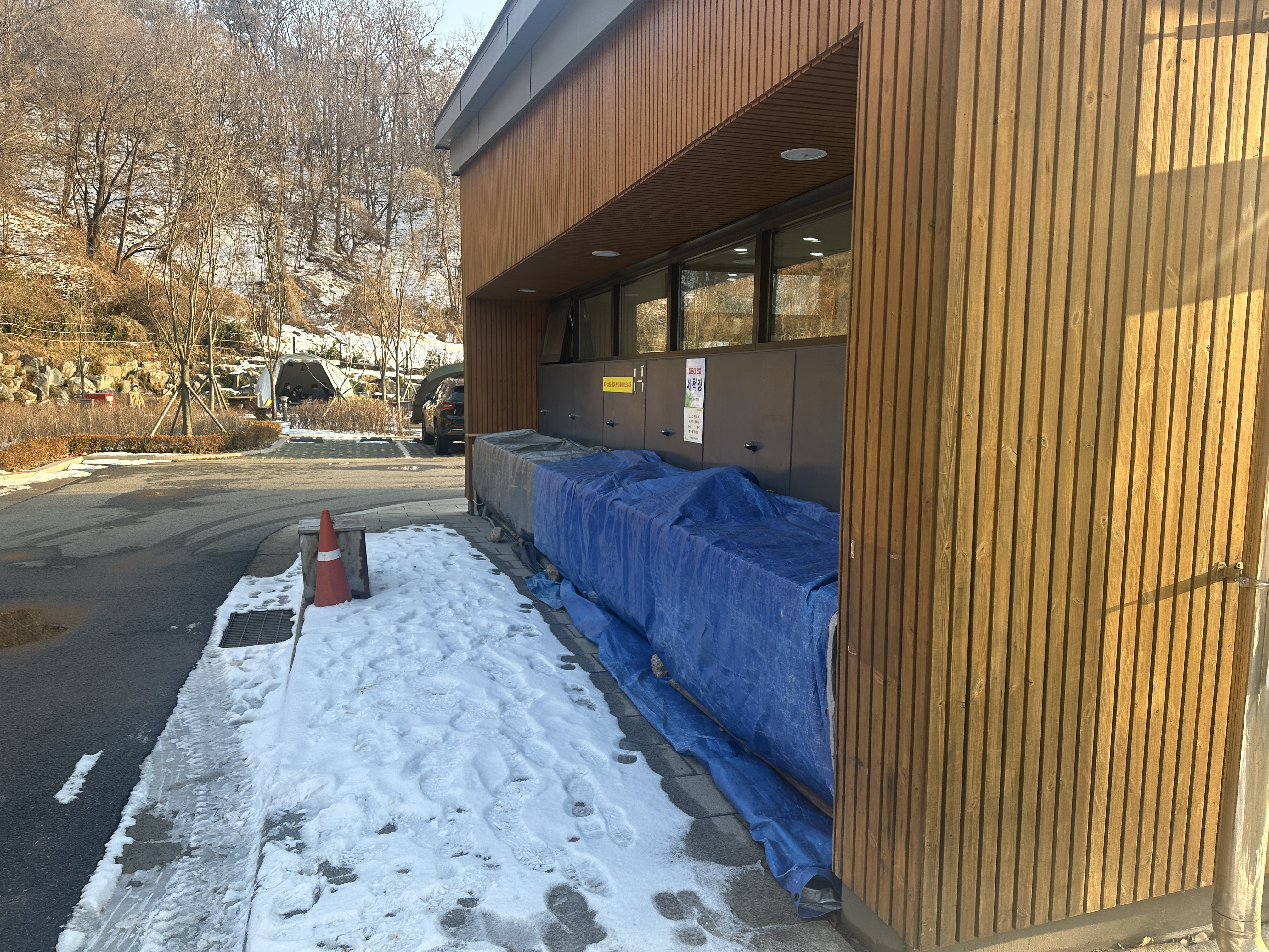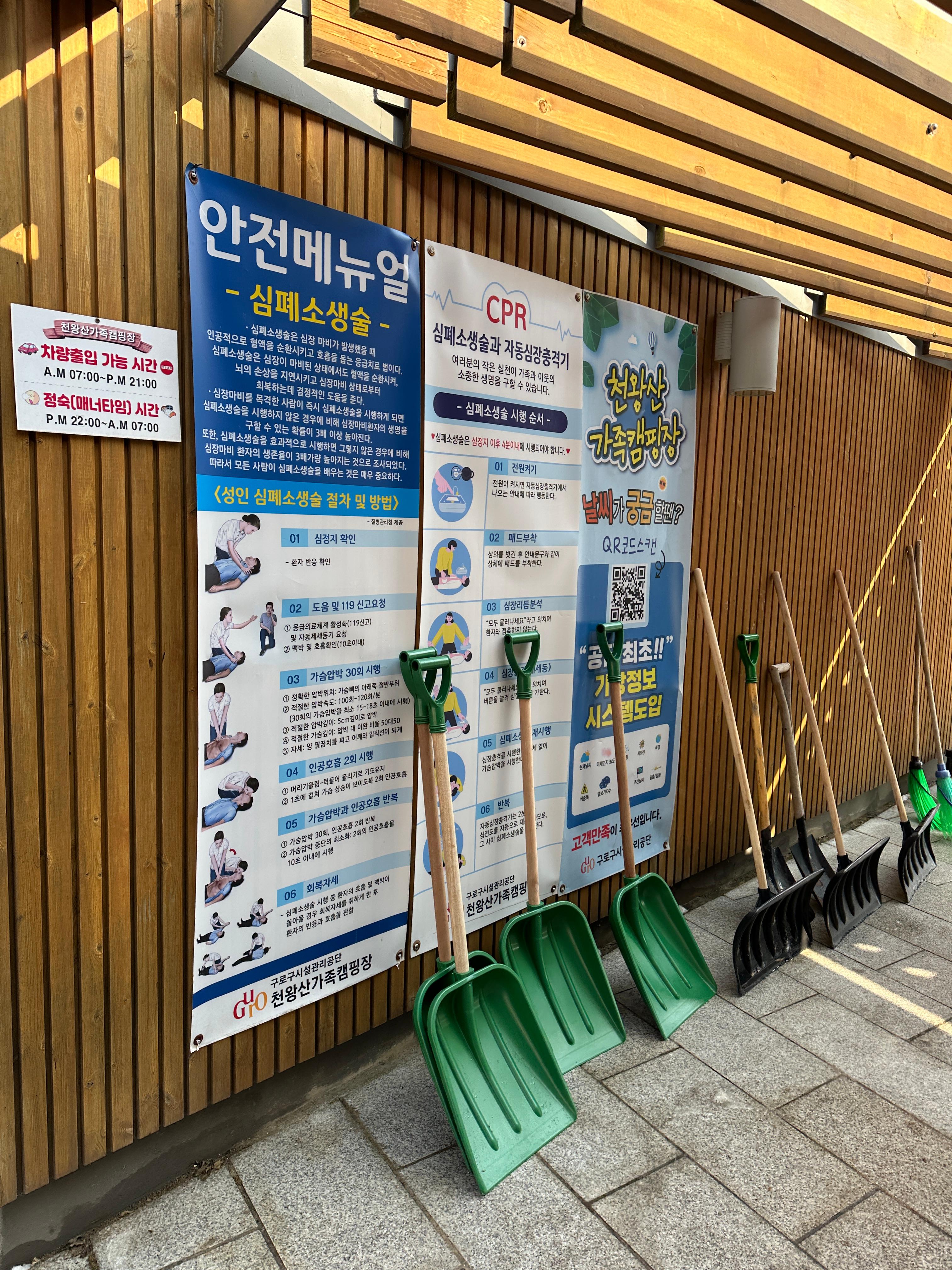 구로구 천왕산 가족캠핑장의 화장실과 샤워실입니다. 그리고 눈삽까지 깔끔하게 비치되어 있습니다. 눈이 많이 왔었기에 꼭 필요했죠.