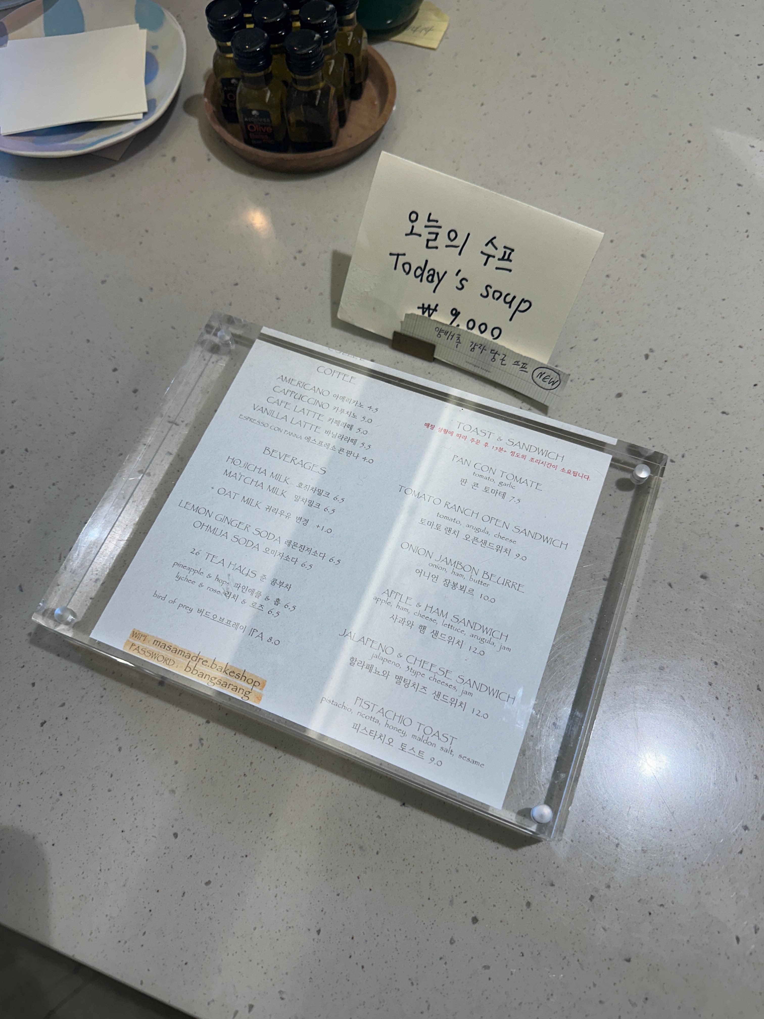 4. 서촌 샌드위치 마사마드레(MASAMADRE) 메뉴(판 콘 토마테, 사과와 햄 샌드위치, 할라피뇨와 멜팅치즈 샌드위치 + 호자차 밀크)