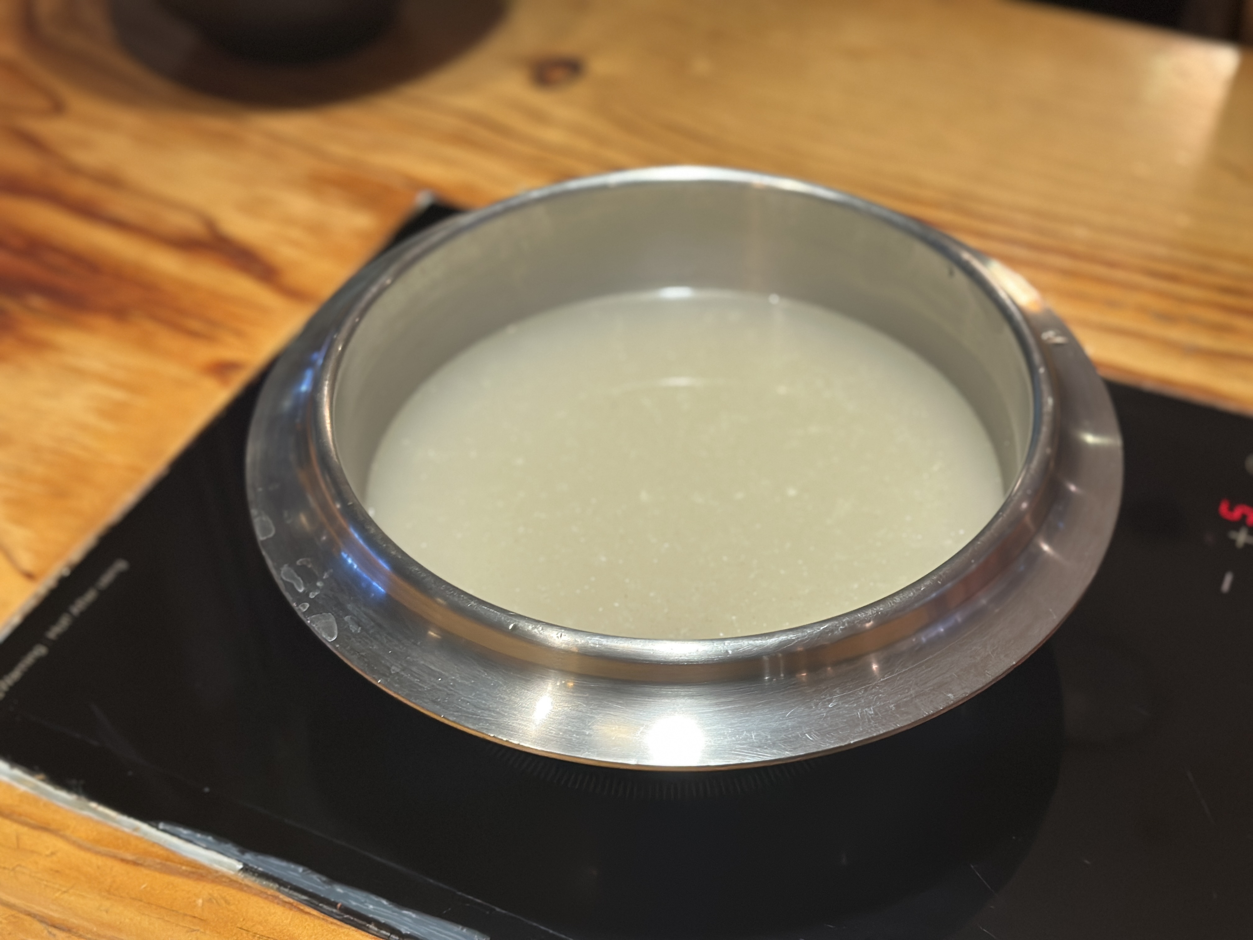 바르미샤브샤브N칼국수 구의점의 테이블은 가운데에 하이라이트가 있고, 자리에 앉아 주문하시면 육수 및 냄비 등을 가져다 주시는 방식입니다. 기본 메뉴인 소고기샤브샤브 2인을 주문해 봅니다.