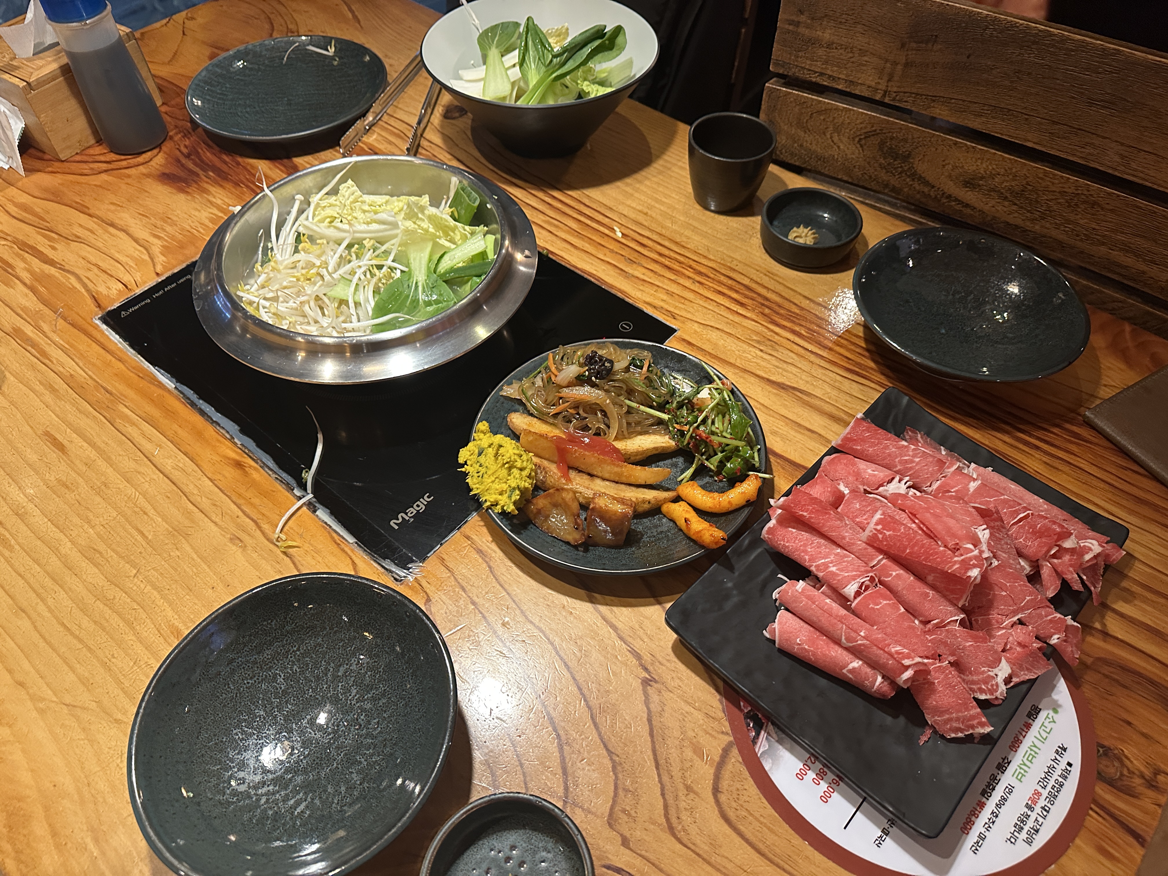 다양한 야채와 음식들로 입맛에 맞게 준비해 옵니다. 기분좋게 팔팔끓는 육수에 넣어서 맛있게 먹어봅니다. 월남쌈도 취향에 맞게 먹어볼 수 있어요.