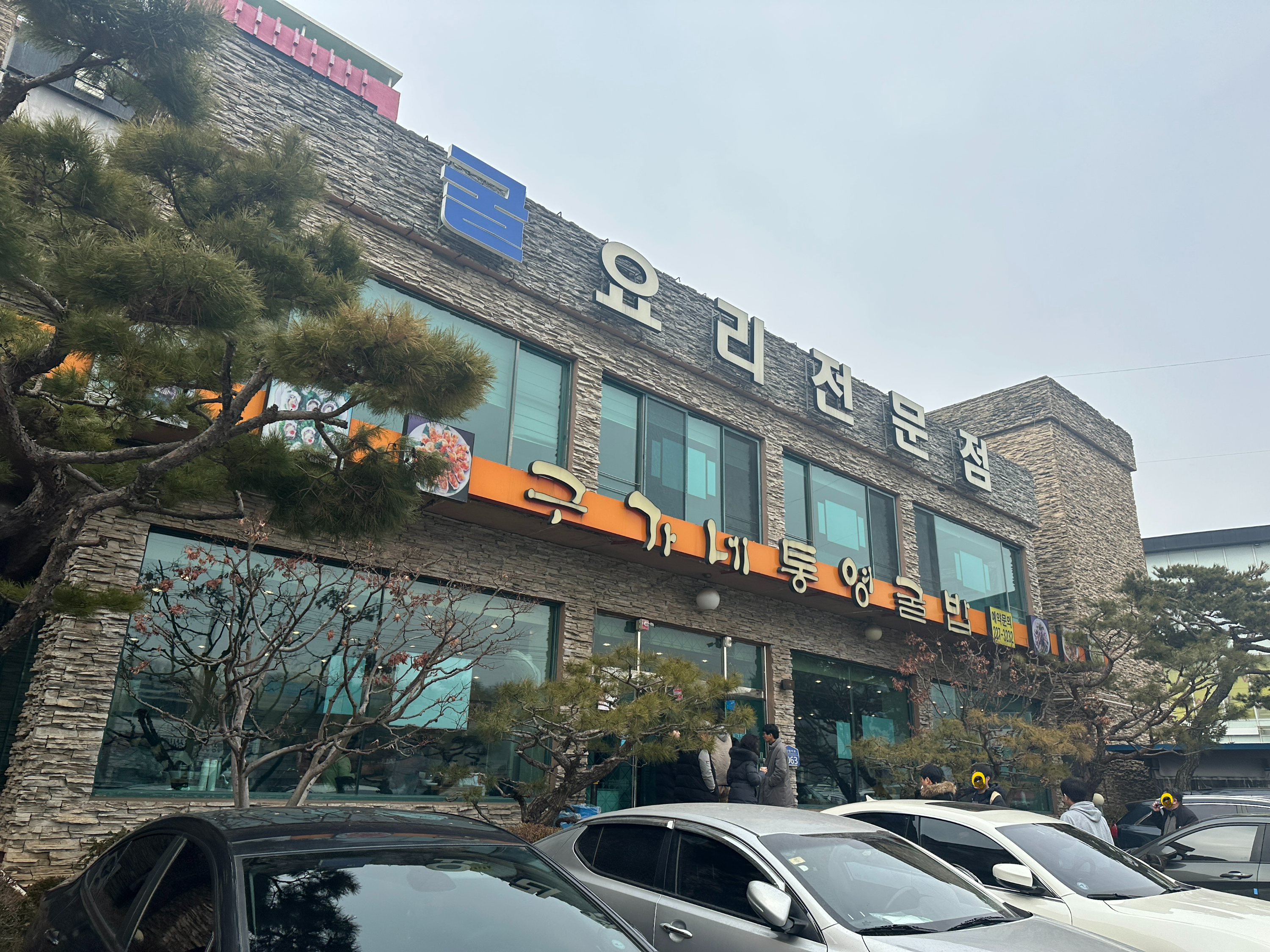 구가네통영굴밥의 주차장은 그야말로 광활합니다. 광활한데 너무 꽉 차 있어요...ㅋㅋㅋ 주차도 식사시간에는 쉽지 않은 곳입니다. 이게뭐야? 하고 들어가 봅니다.