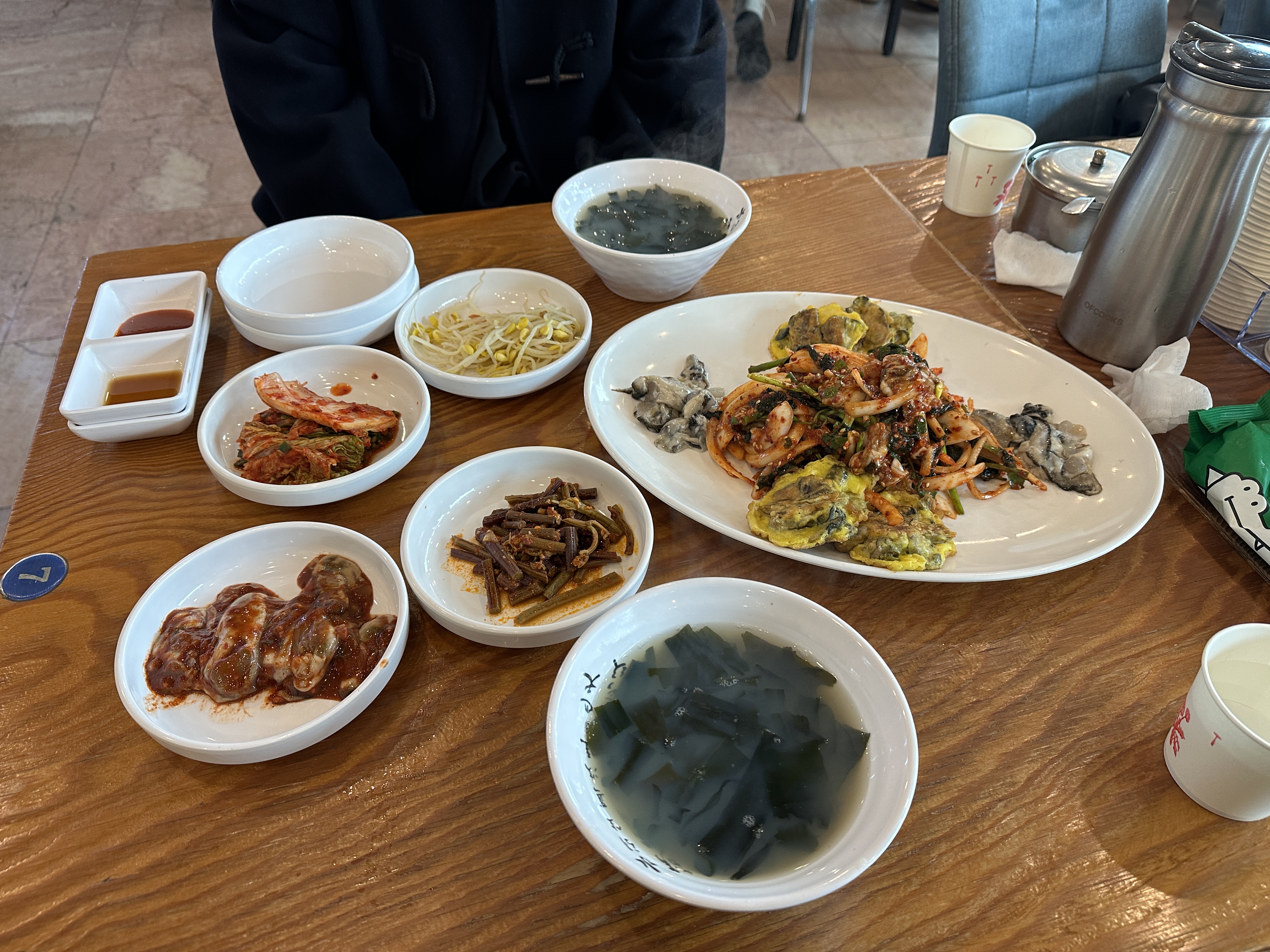 처음 왔으니 메인 굴정식으로 2인분 시켜서 먹어봅니다. 주문하기 무섭게 반찬들이 깔립니다. ㅎㅎ 굴국밥 생각하고 오긴 했는데 굴국밥을 안먹었네요 ㅎㅎ 다음번엔 굴국밥을 먹어야겠습니다.