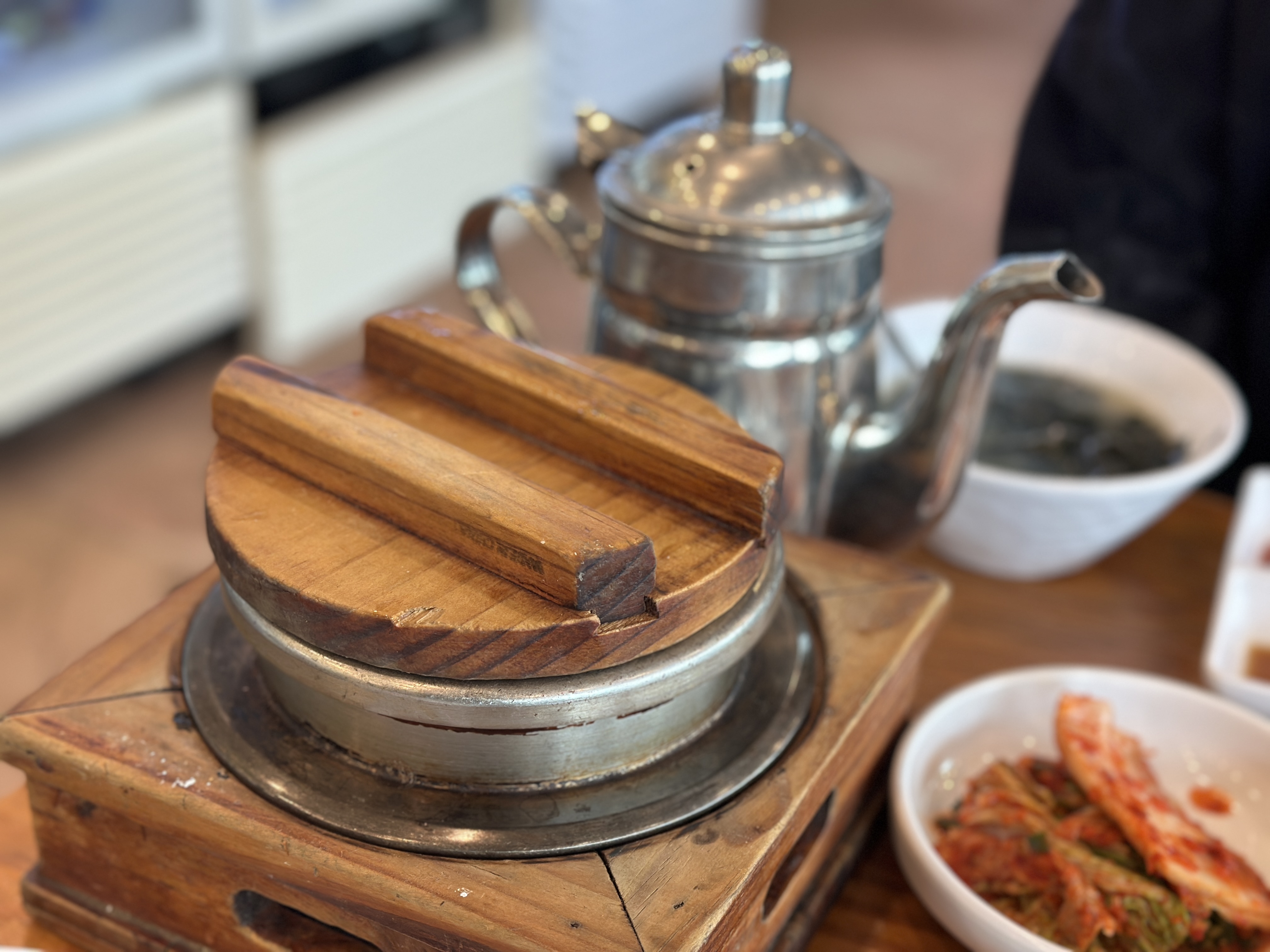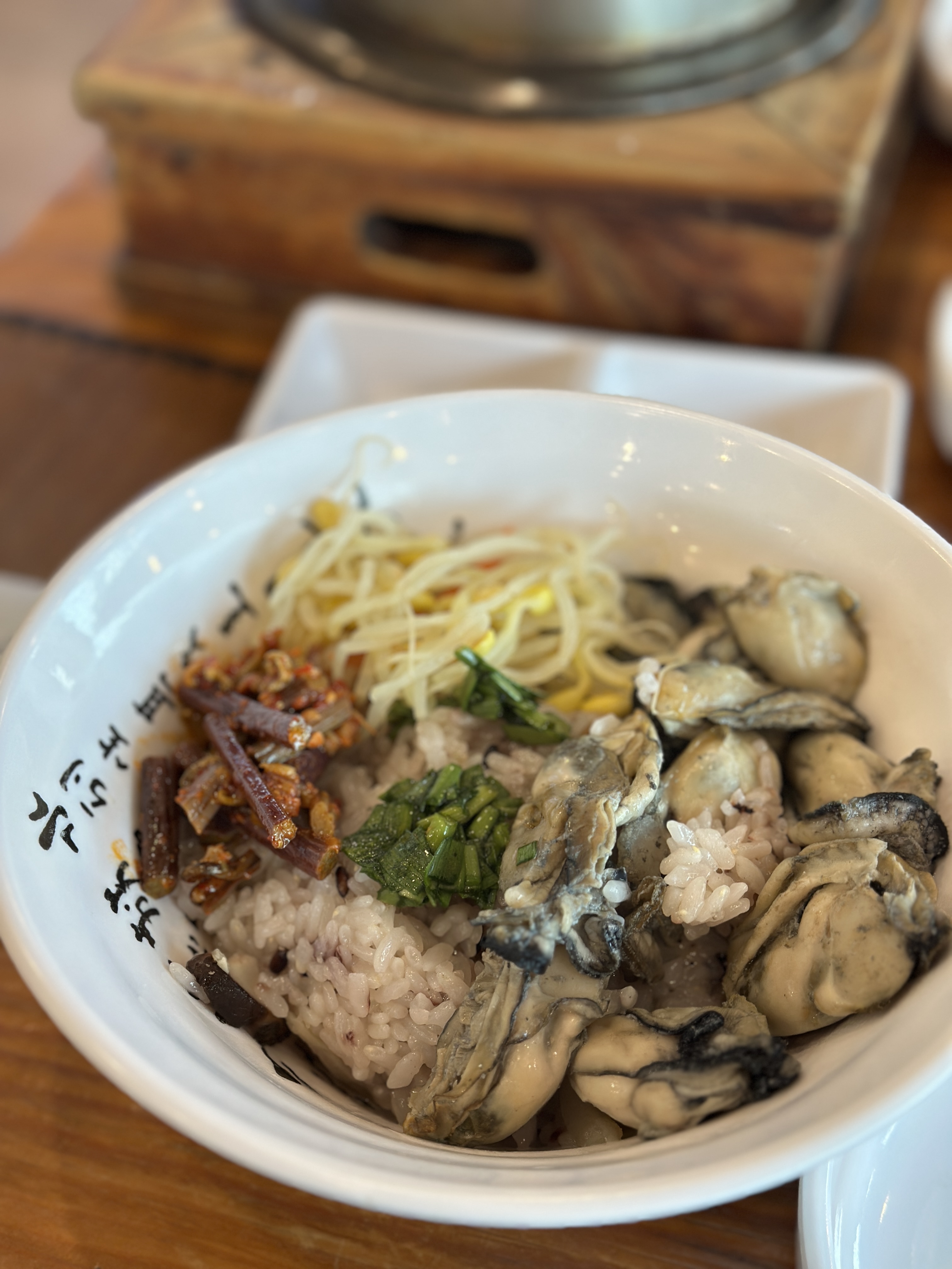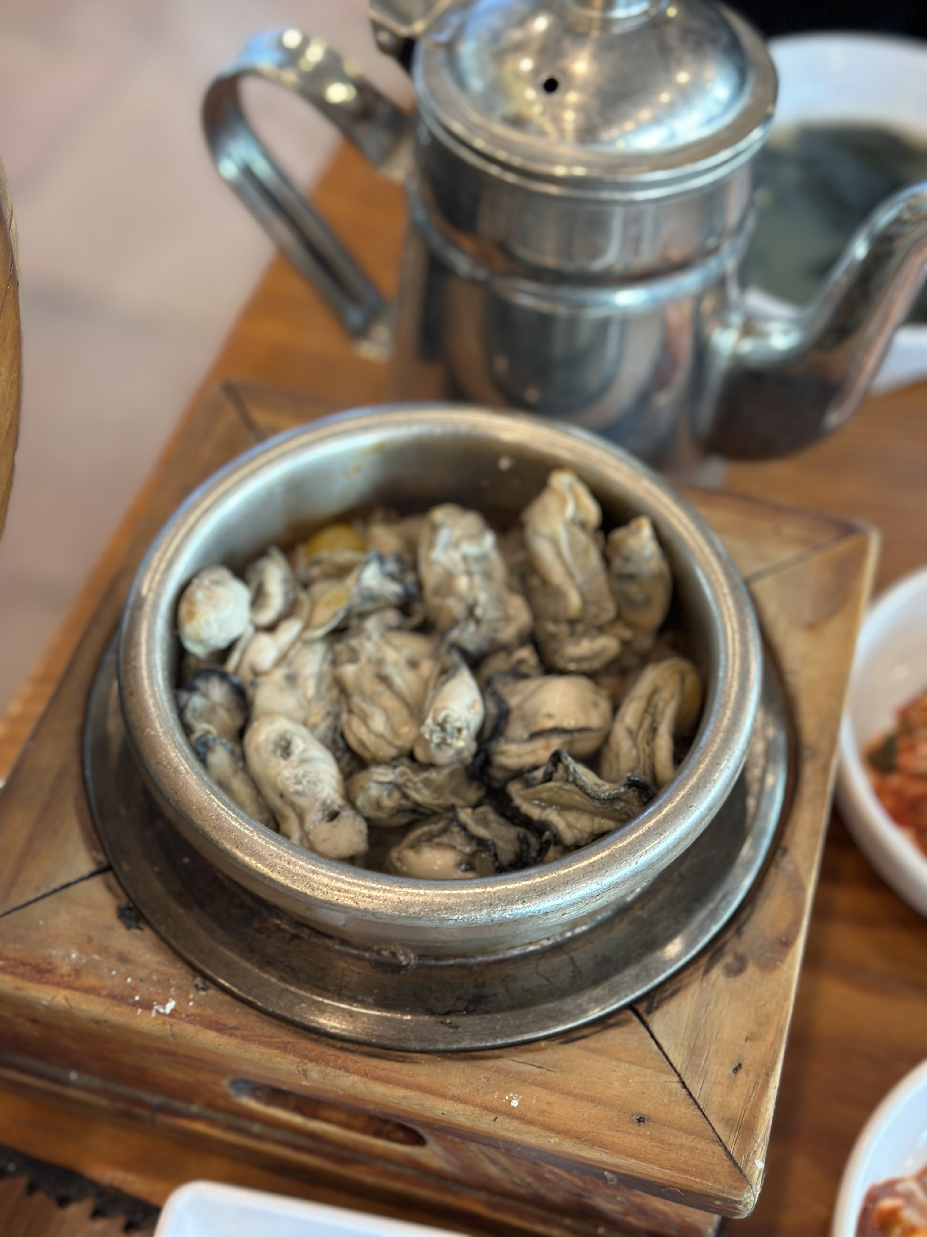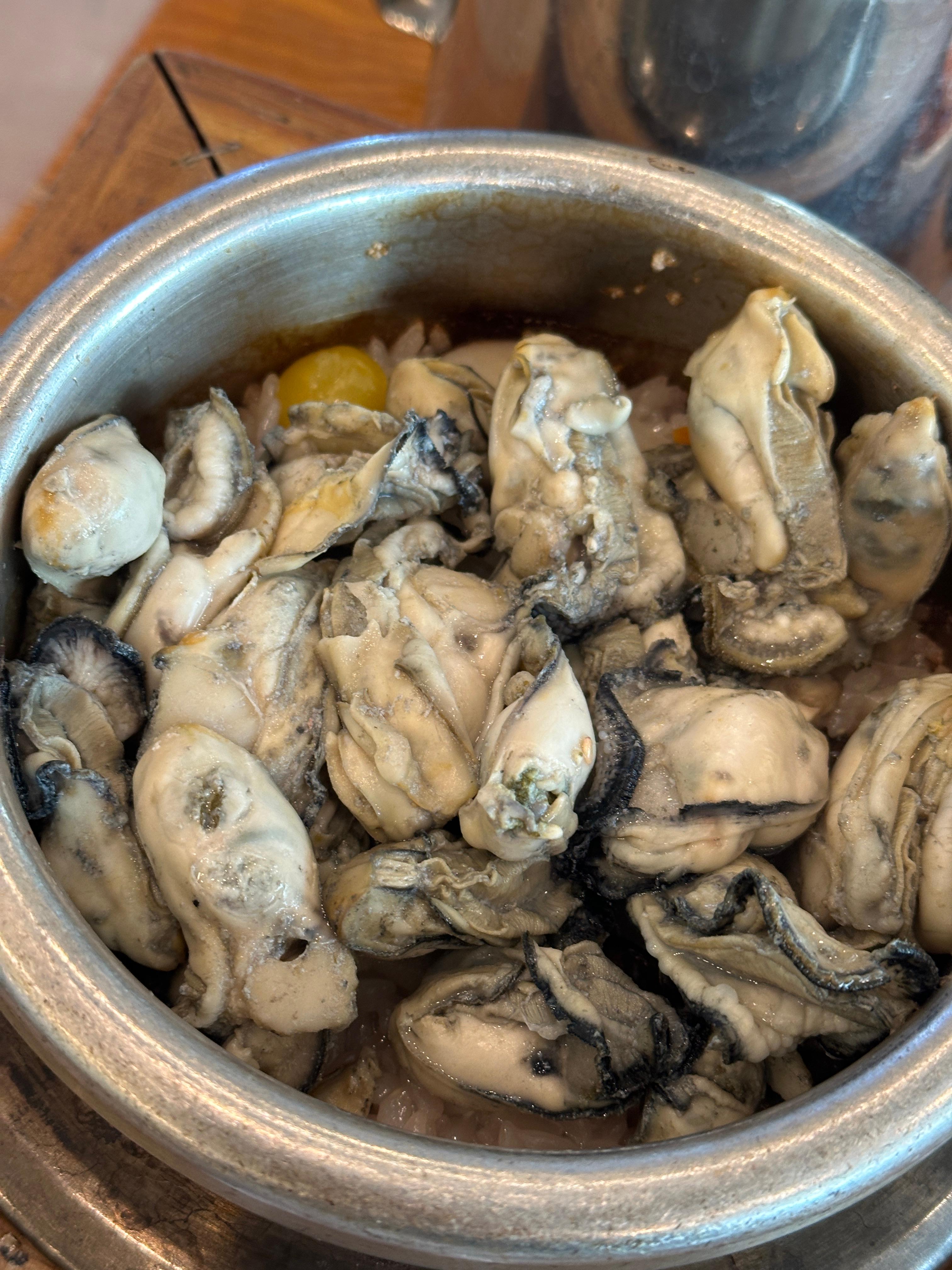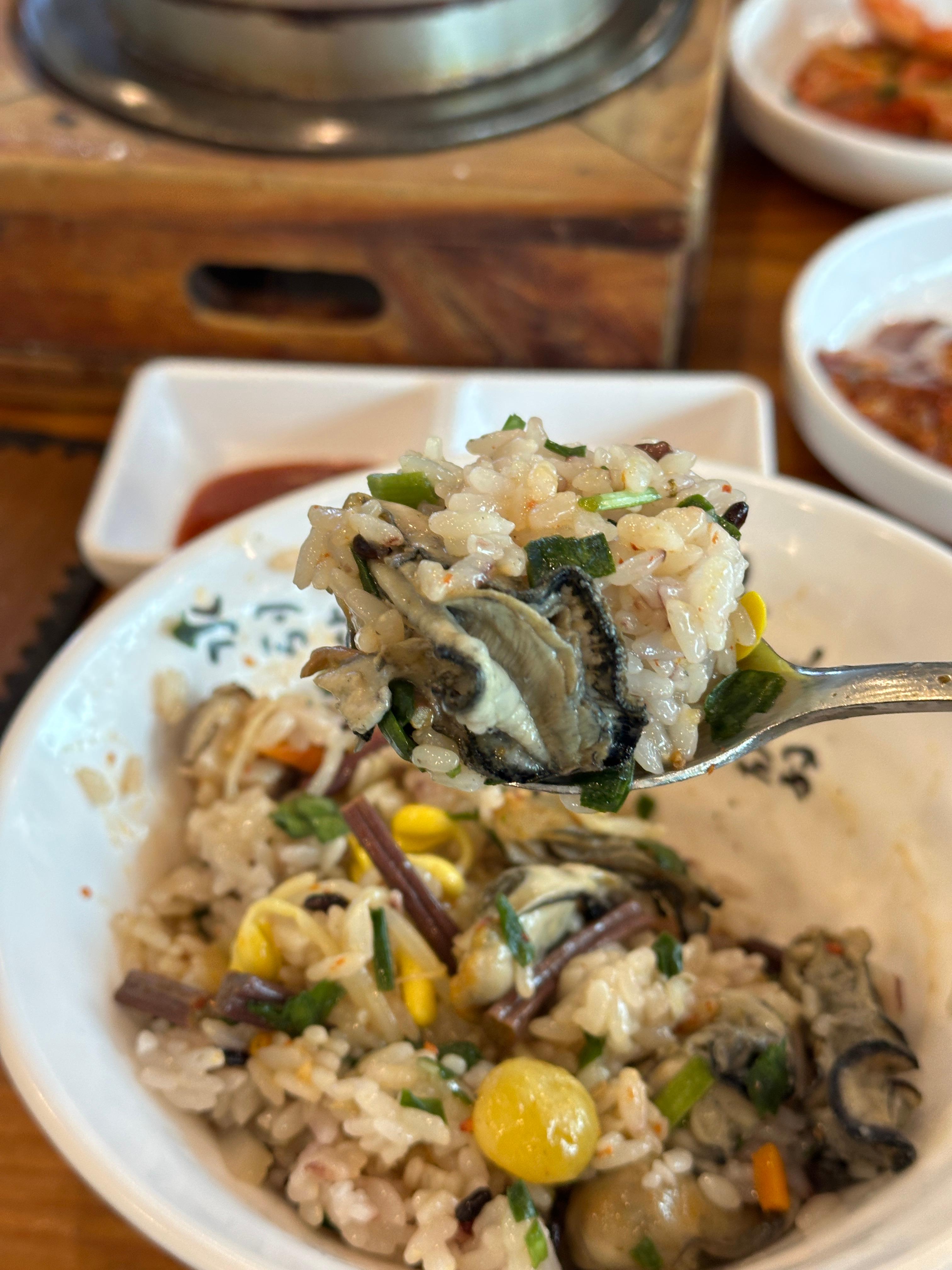 굴정식을 2인 시켜야 이렇게 솥밥으로 나온다고 합니다. 옆에 굴밥 시키신 걸 보니 그냥 뚝배기에 나오더라고요. 굴이 2인이라 푸짐하게 보입니다.