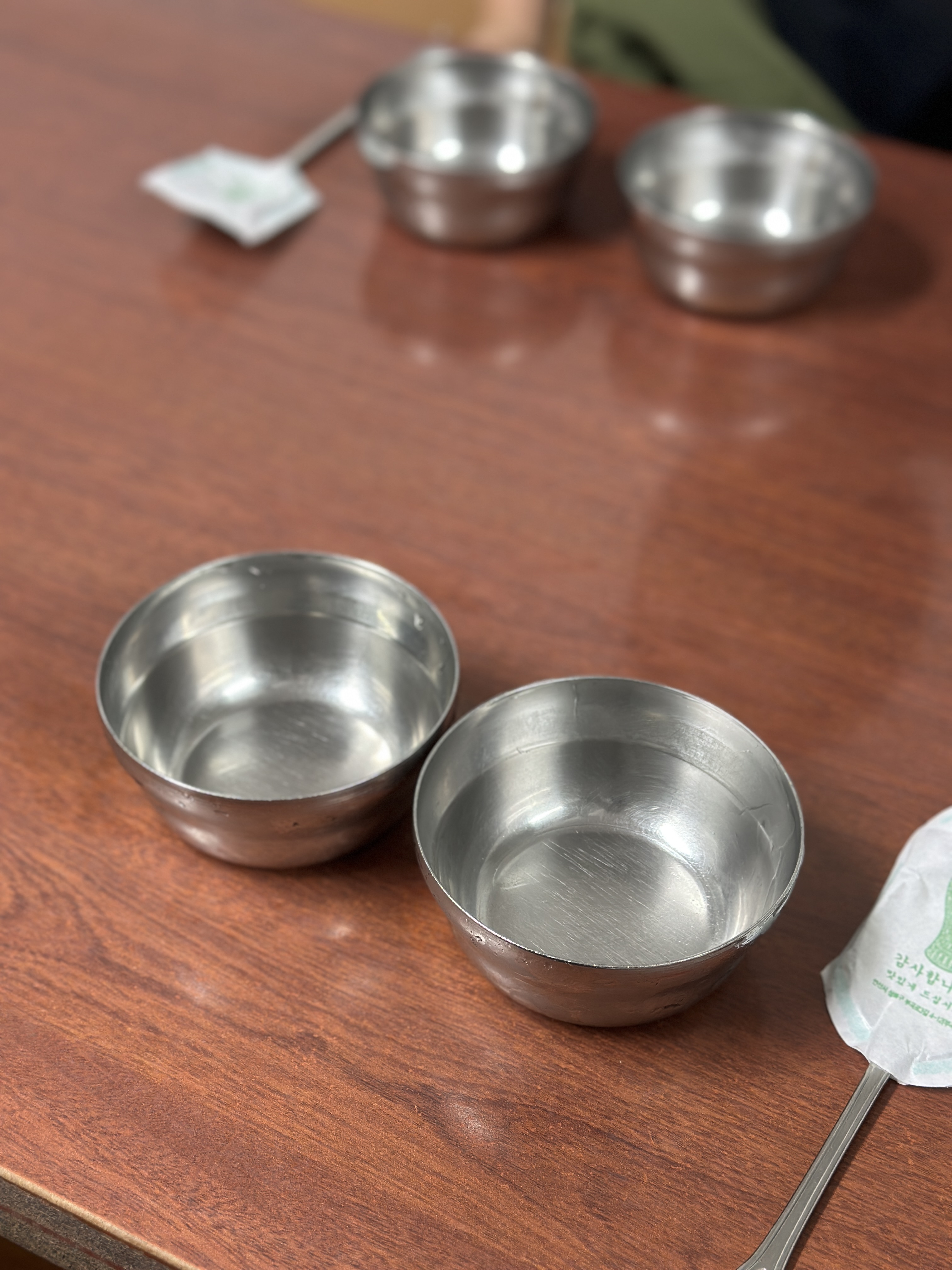 청량리역 혜성칼국수의 테이블 세팅입니다. 이렇게 깔끔하게 준비되어 있습니다. 물잔도 저 그릇으로 이용하니 특이하죠?ㅋㅋㅋㅋㅋ