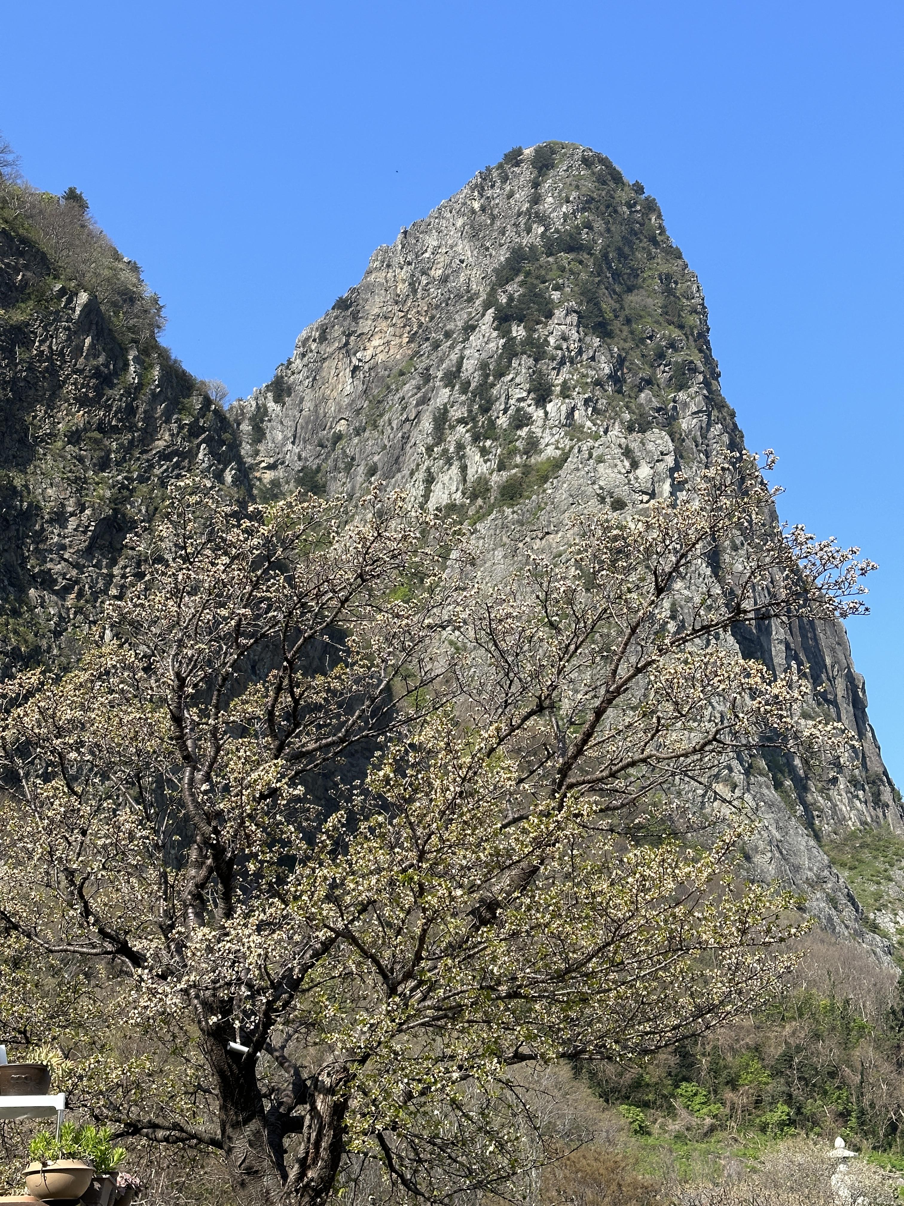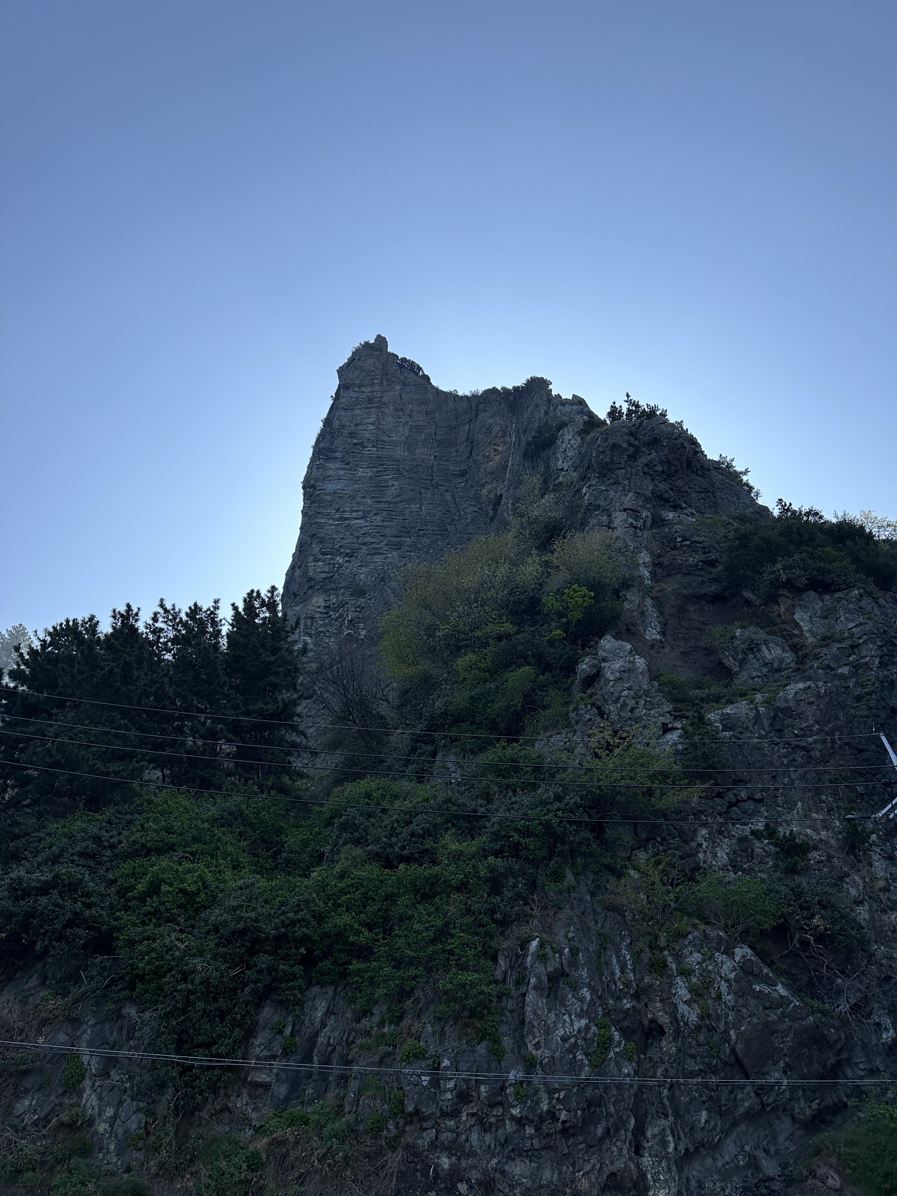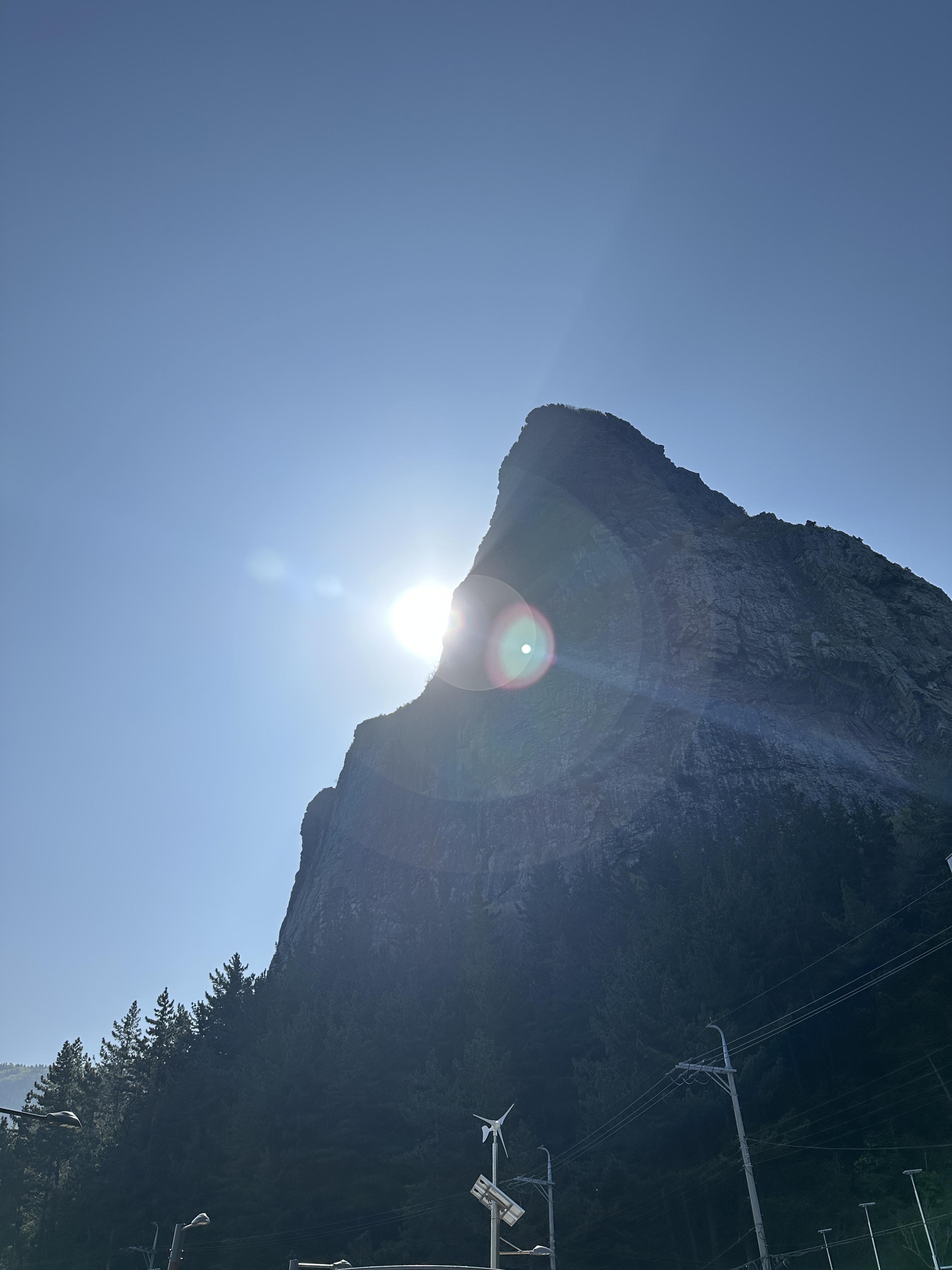 뒤를 돌아보니 정말 거대한 산봉우리가 하나 보입니다.
