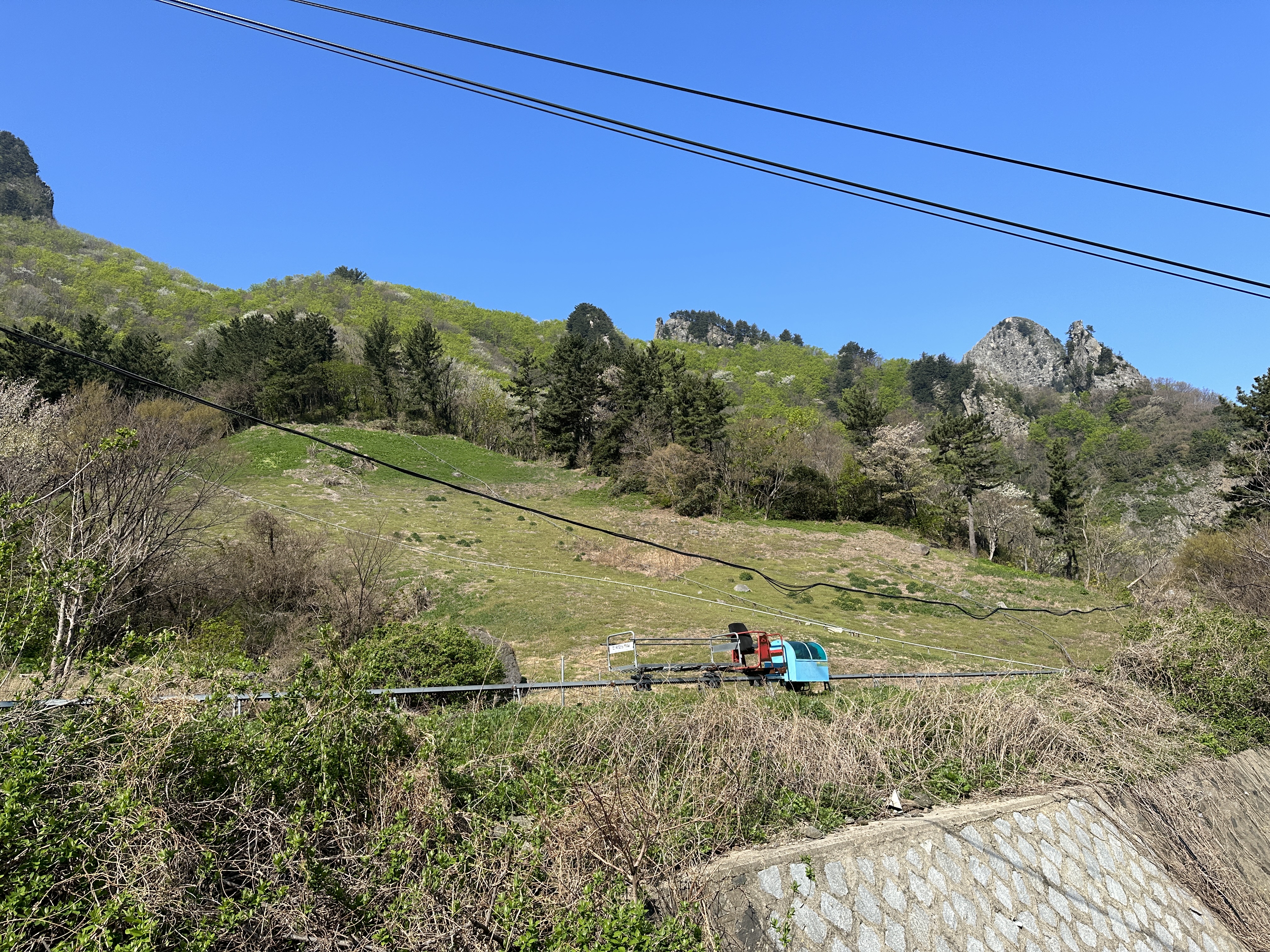 곳곳에 나물을 캐고 계신 어르신들이 많이 계셨습니다. 그 어르신들이 약초를 옮기시기 위해 만든 구조물인가 봅니다. 꼭 놀이기구 같이 생긴 것이 색감부터 주변 풍경과 딱 떨어지네요 ^^