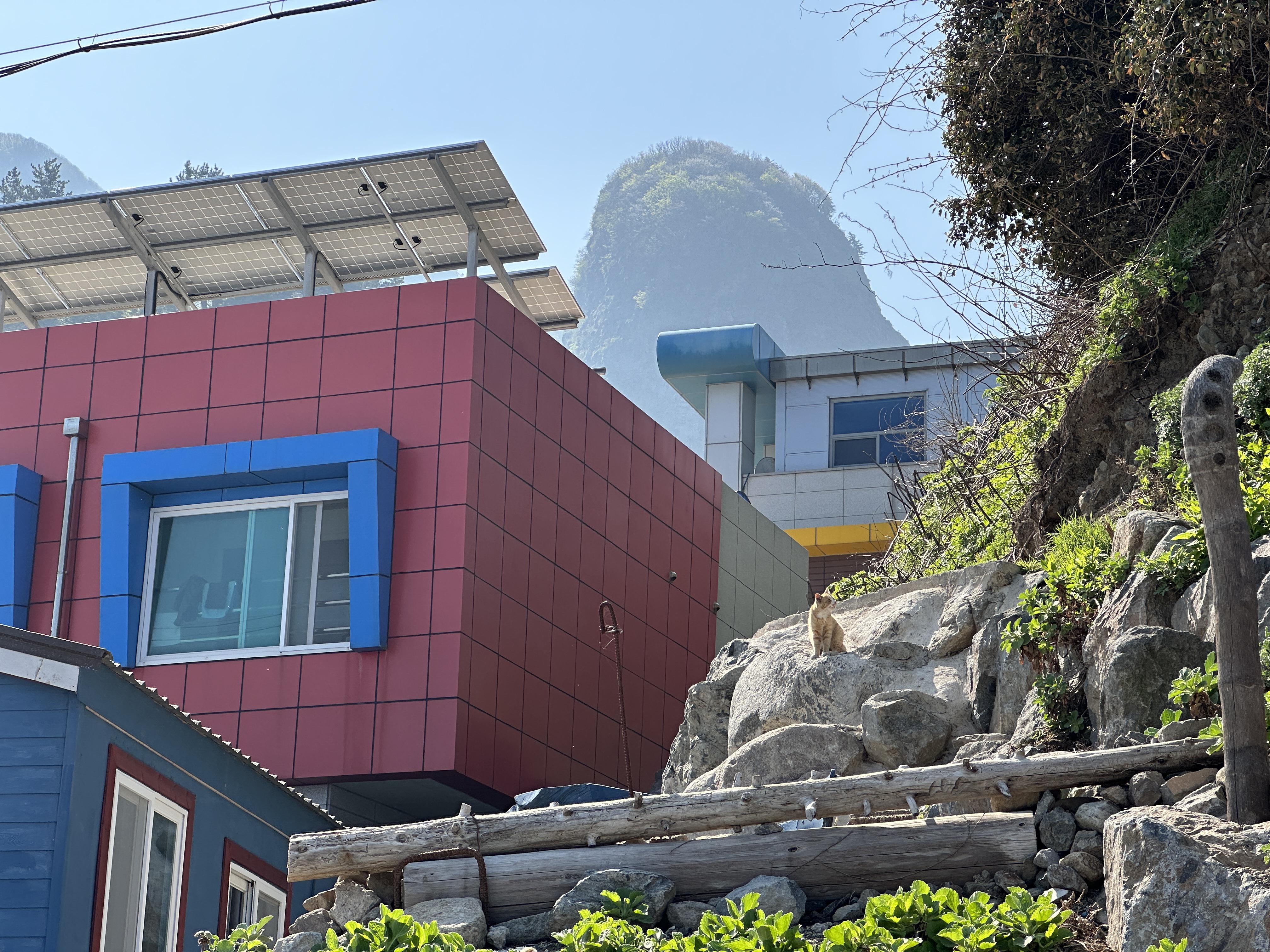 뒤의 울릉도 지형과 건물의 색깔, 그리고 고양이까지 완벽한 조합 아닙니까?ㅋㅋㅋ