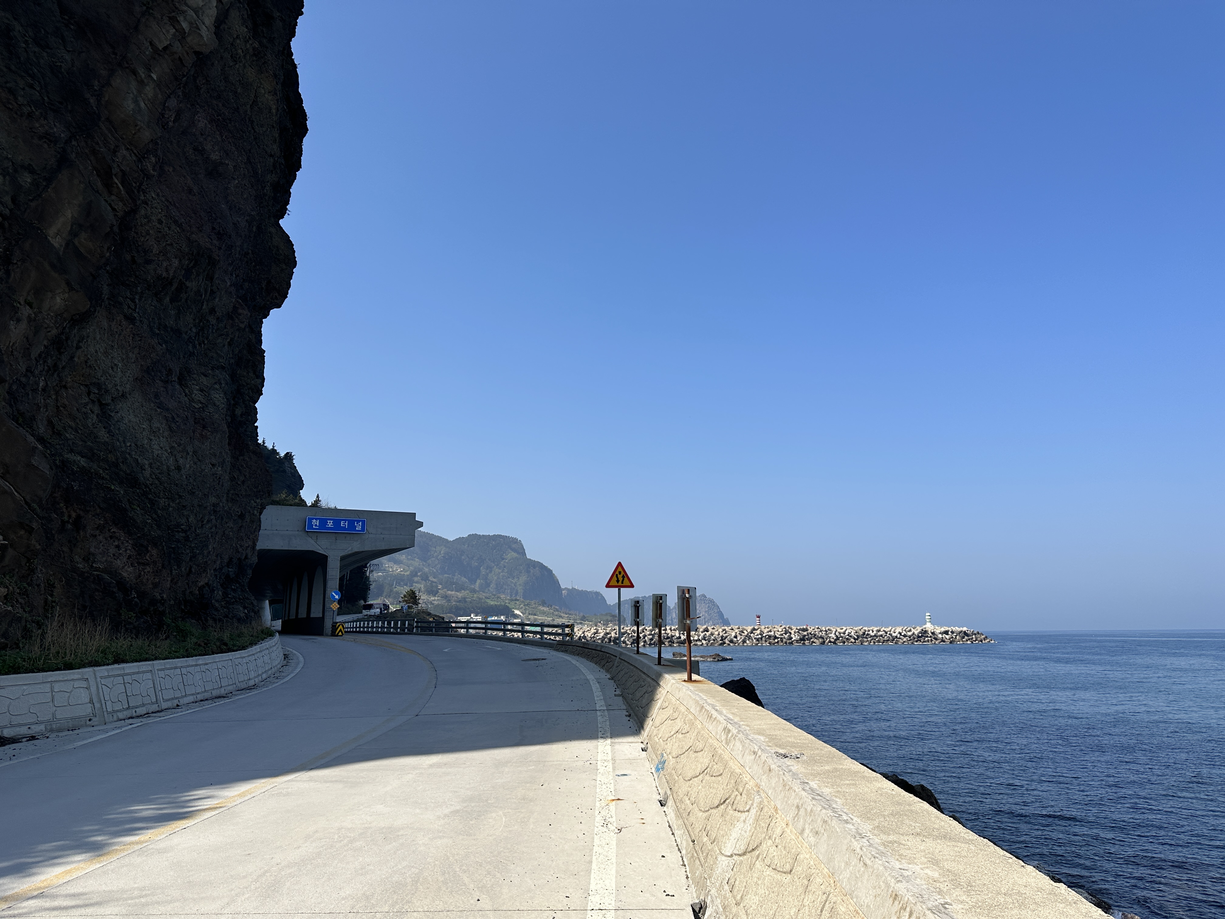 울릉도 곳곳에는 순환로가 이렇게 터널로 되어 있는 곳들이 꽤 있습니다. 자세히 보면, 해안으로 절벽이 솟아 있어 안전상의 이유로 만들었나봅니다. 꽤나 볼만합니다. ^^ 무섭기도 할 만큼 거대하구요.