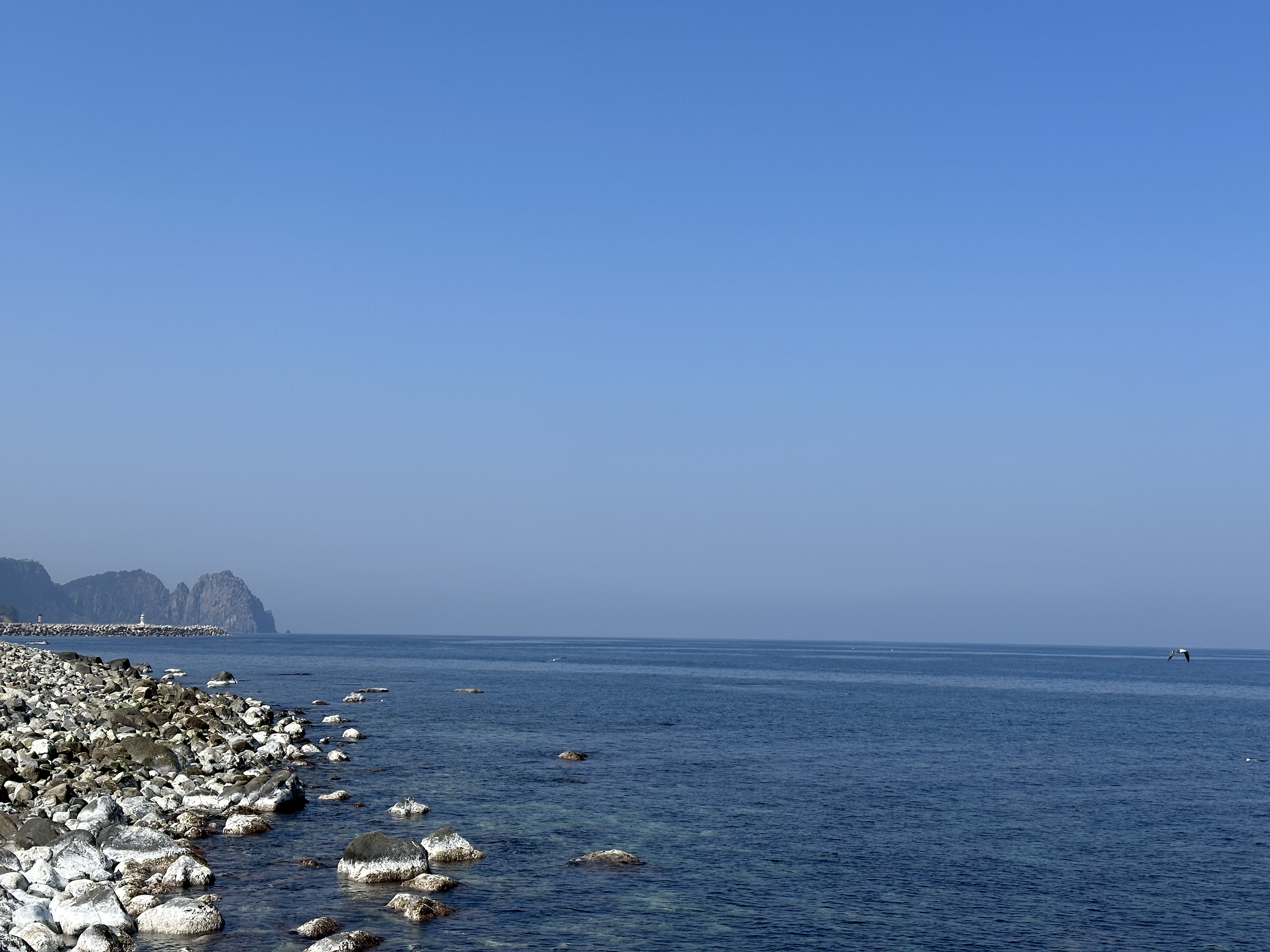 끝없이 펼쳐진 바다에 빼꼼 내민 얼굴 위에 앉은 갈매기 한마리가 정말 그림같아서 한 장 빠르게 찍었습니다. 갈매기들도 많고, 참 예쁜 섬입니다.