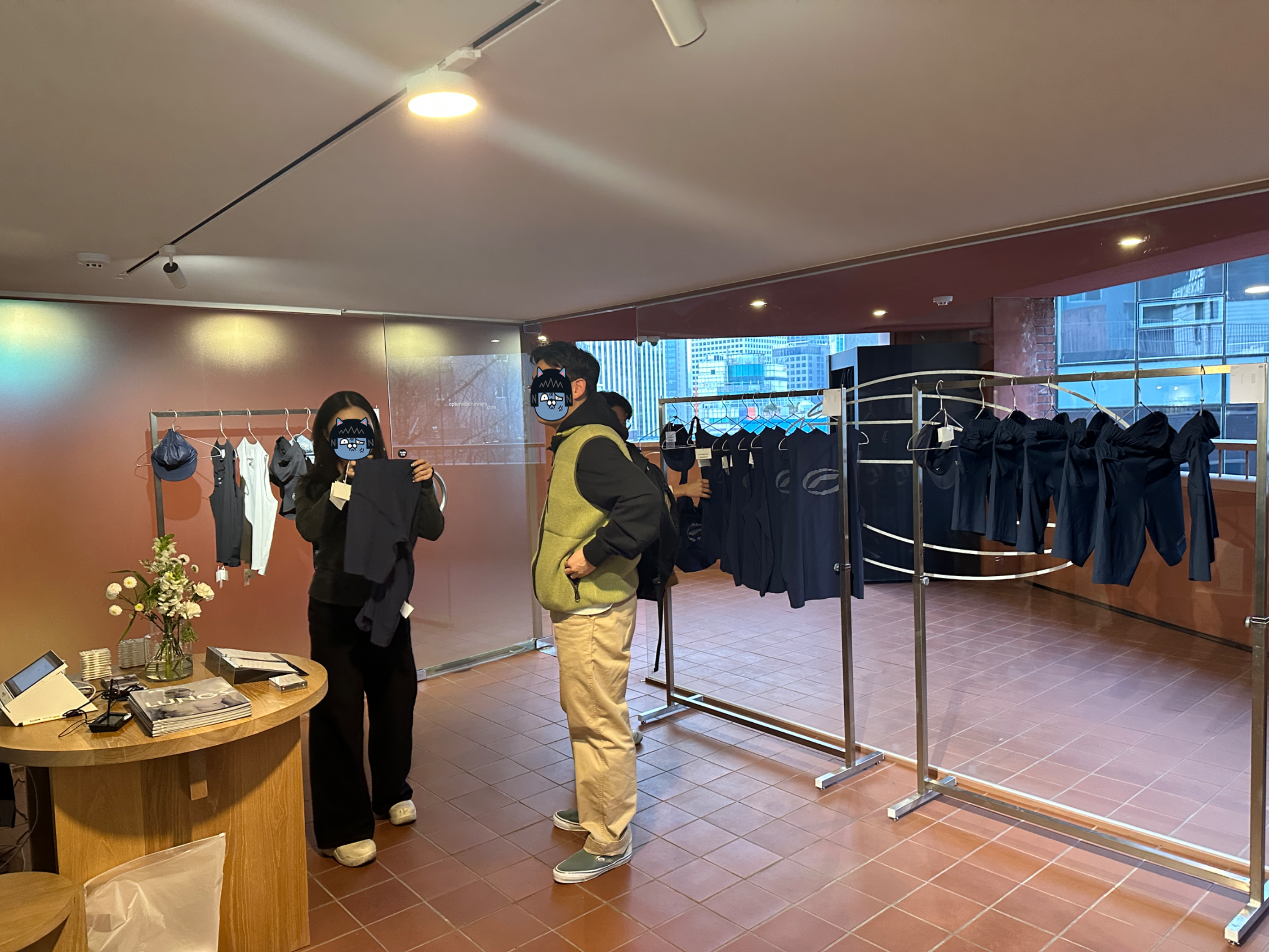 그런데, 이번에 옵티미스틱 러너즈(Optimistic Runners) 팝업에서 만져본 의류들의 품질은 생각보다 더 훌륭했습니다. 제가 정말 러닝에 진심인 사람이라면 한 번 쯤 고민해 볼 만 한 품질이었어요. 물론 가격이 많이 상당하긴 했지만...