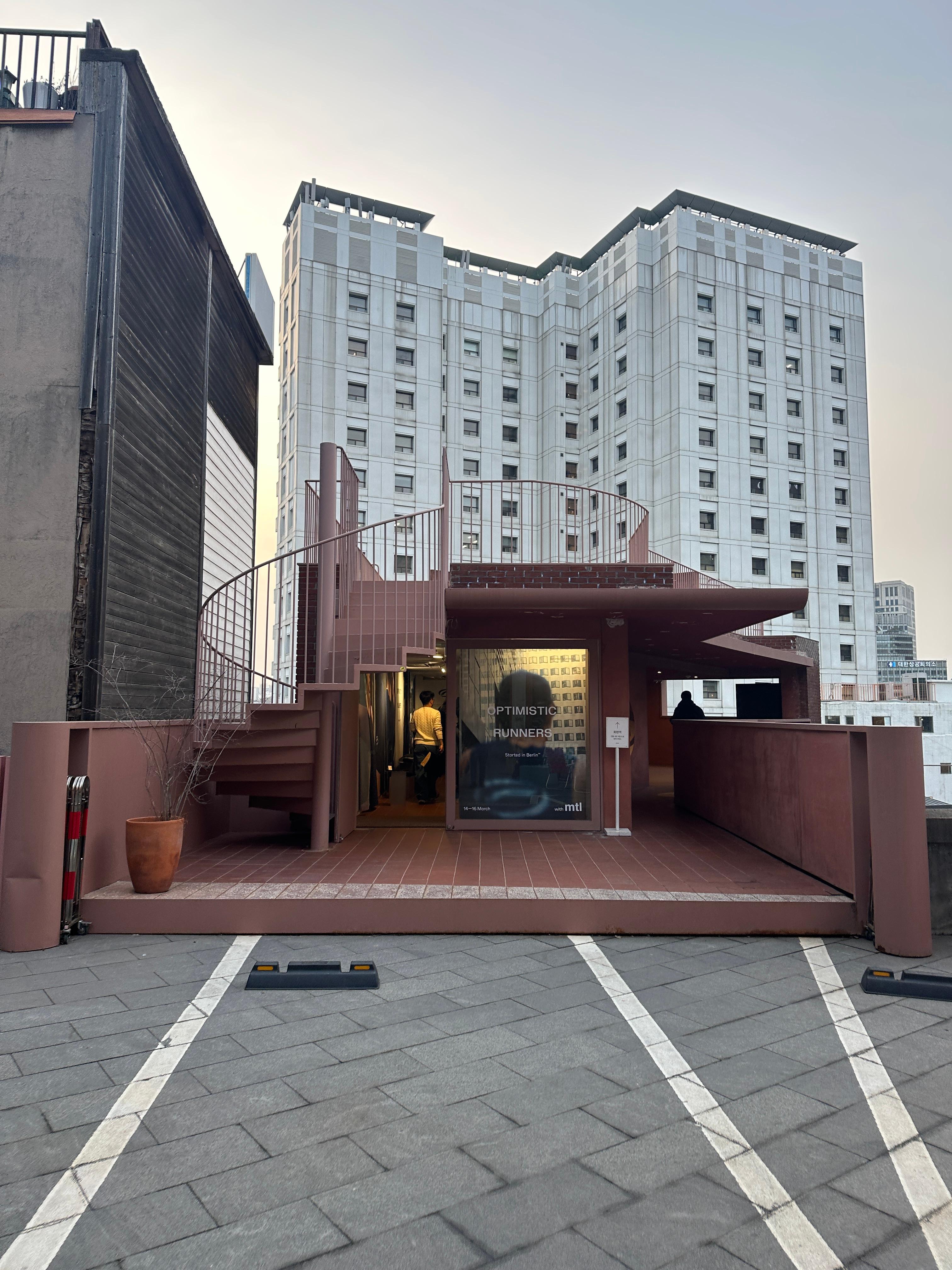 옵티미스틱 러너즈(Optimistic Runners) 팝업이 열리는 행사장 외관입니다. 깔끔하고 군더더기 없는 행사장의 모습입니다. 규모는 크지 않지만, 많은 분들이 방문하고 계셨습니다.