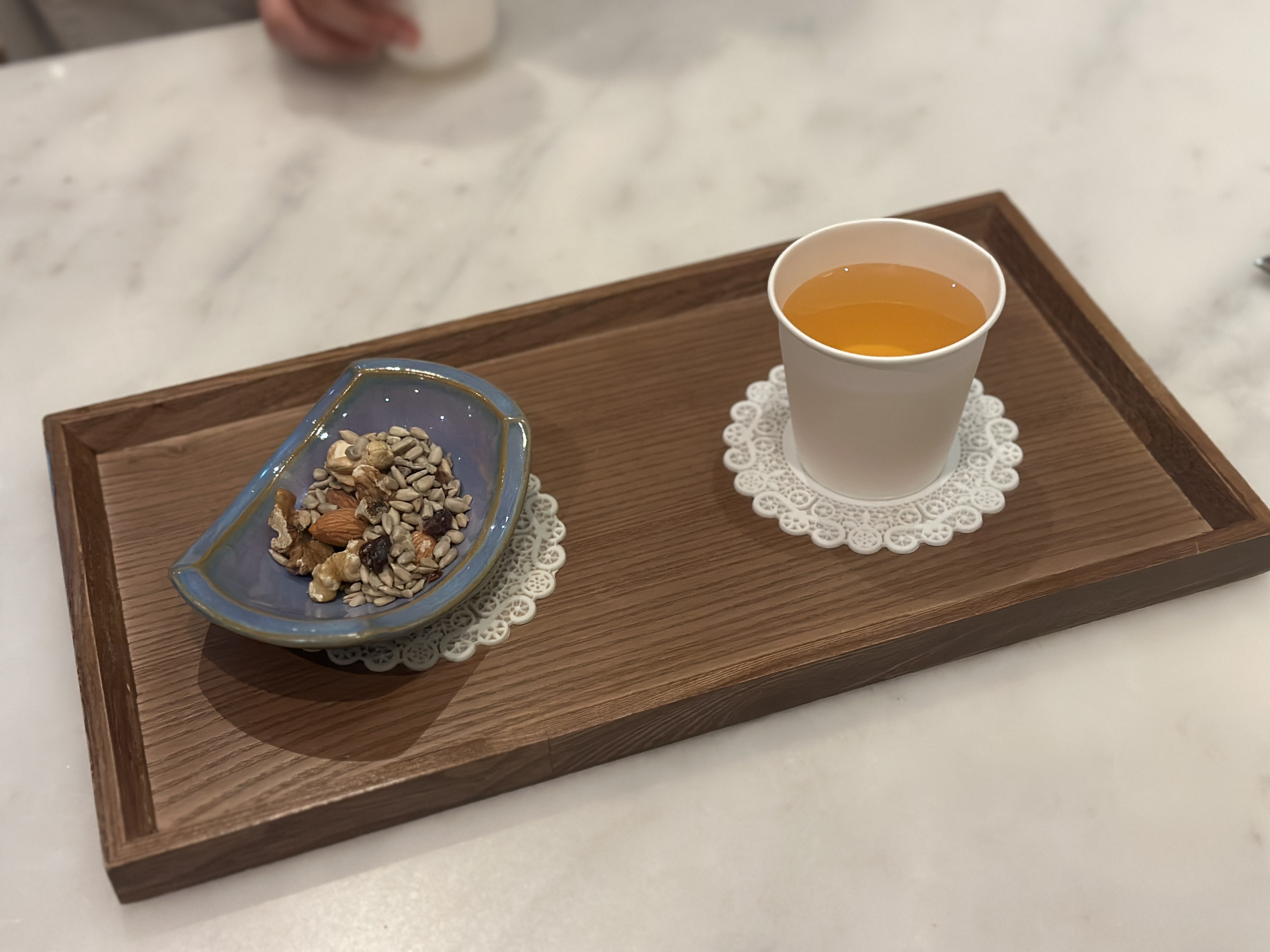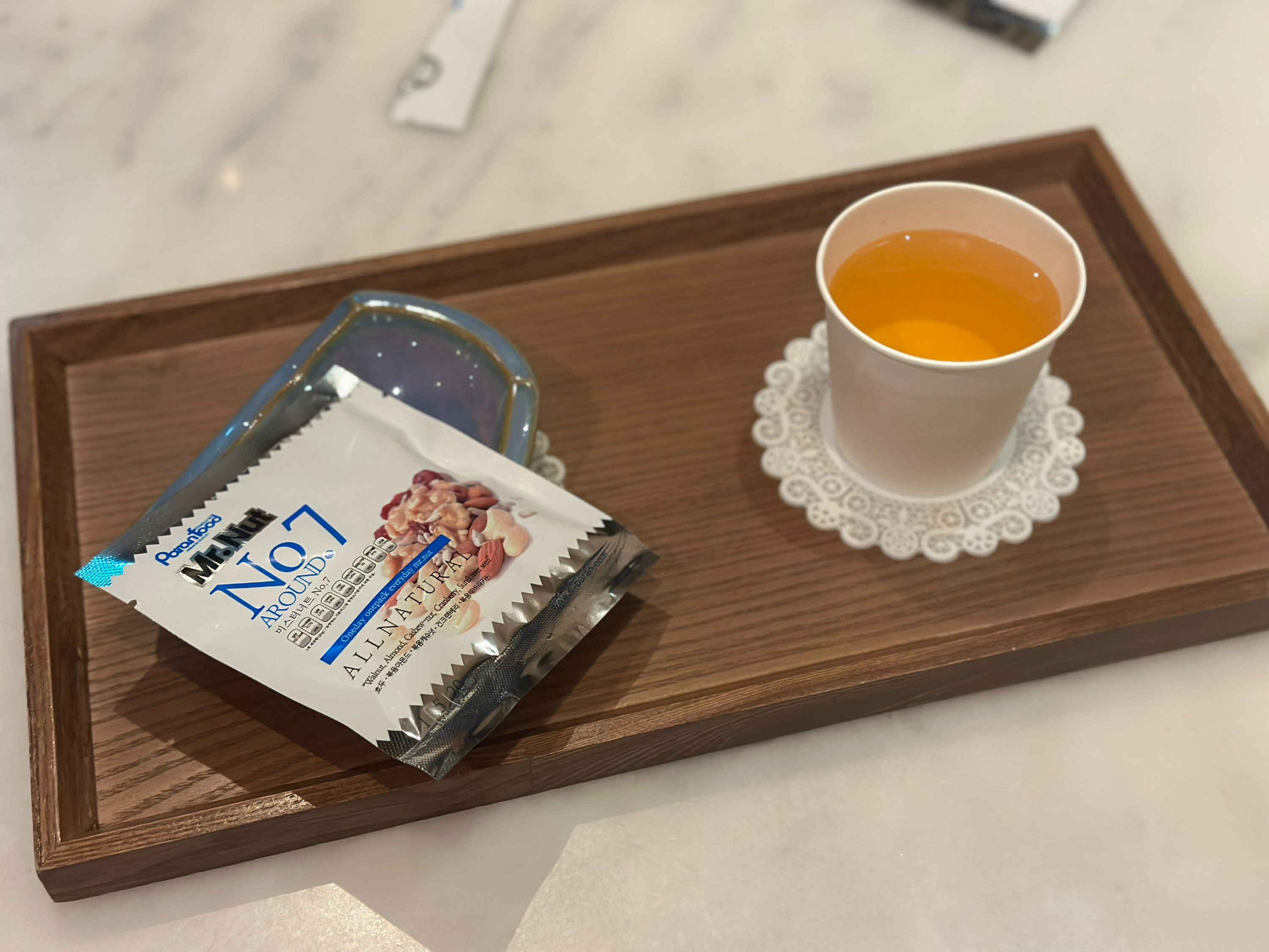 마사지를 마치면, 환복 후 이렇게 시원한 음료와 견과류를 예쁜 그릇에 마련해 주십니다.