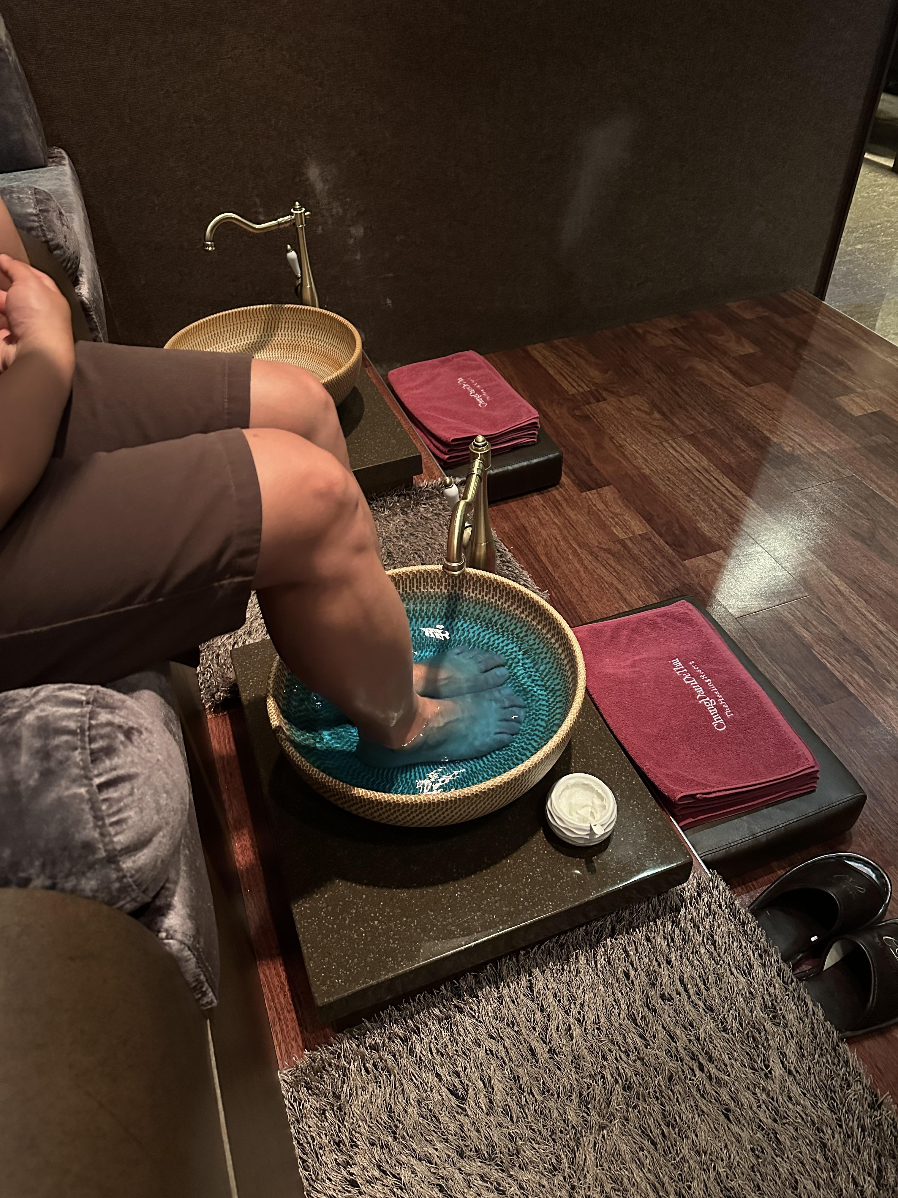 나오니 따뜻한 차와 함께 족욕부터 시작을 합니다. 푸른 물은 무엇인지 모르겠지만, 마사지 선생님들께서 정성스럽게 마사지를 시작해 주십니다.