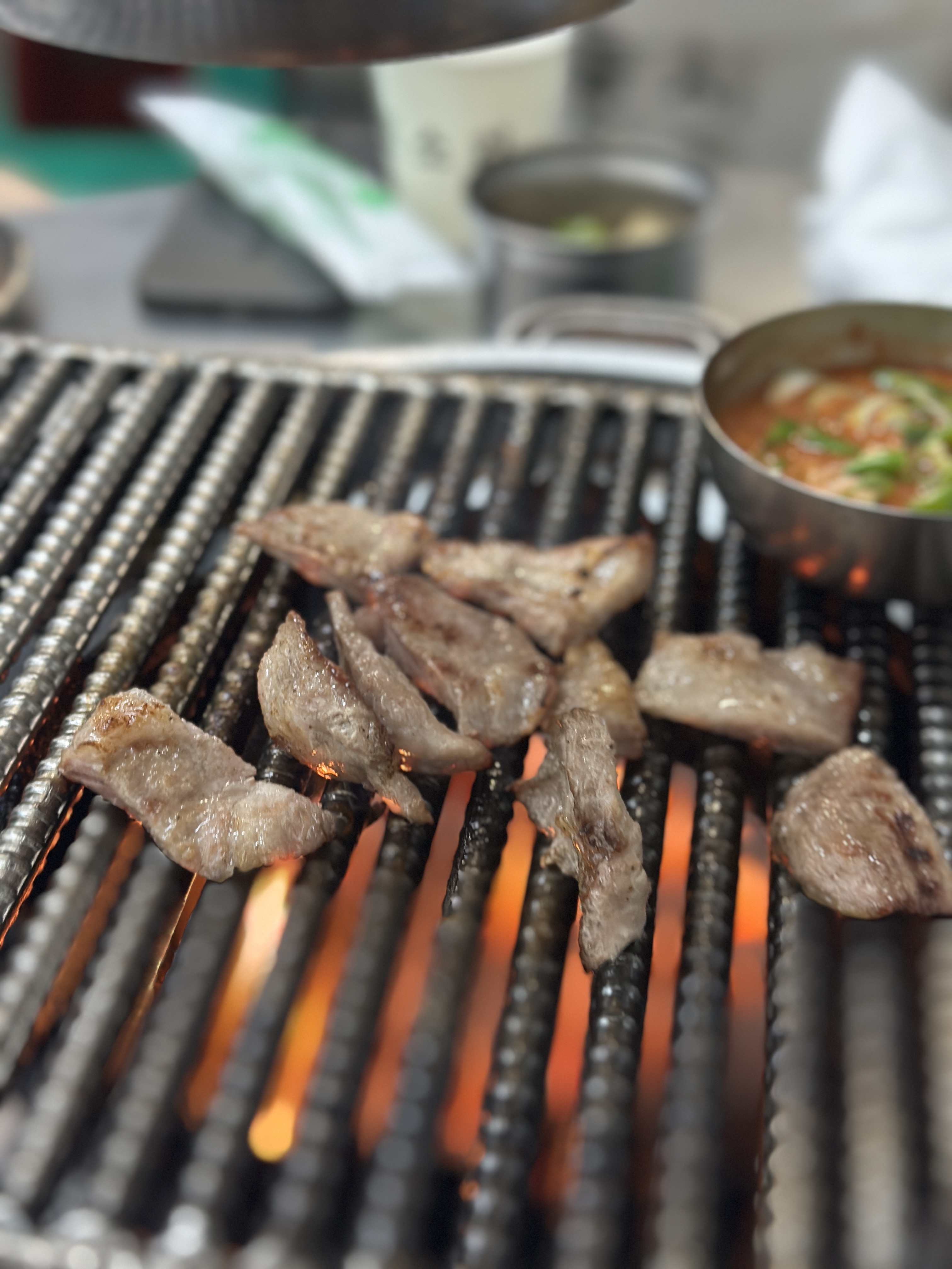 길음모소리의 돈차돌살입니다. 둥글게 말려 나오는데, 이게 왜 늦게 나왔나 싶긴 해요 ㅋㅋㅋ 차돌을 먼저 구워먹지않나 대체로...? 근데 뭐 이유가 있겠지 싶어서 그냥 나오는대로 먹습니다. ㅋㅋㅋㅋ 맛있으면 됐죠 ㅎ