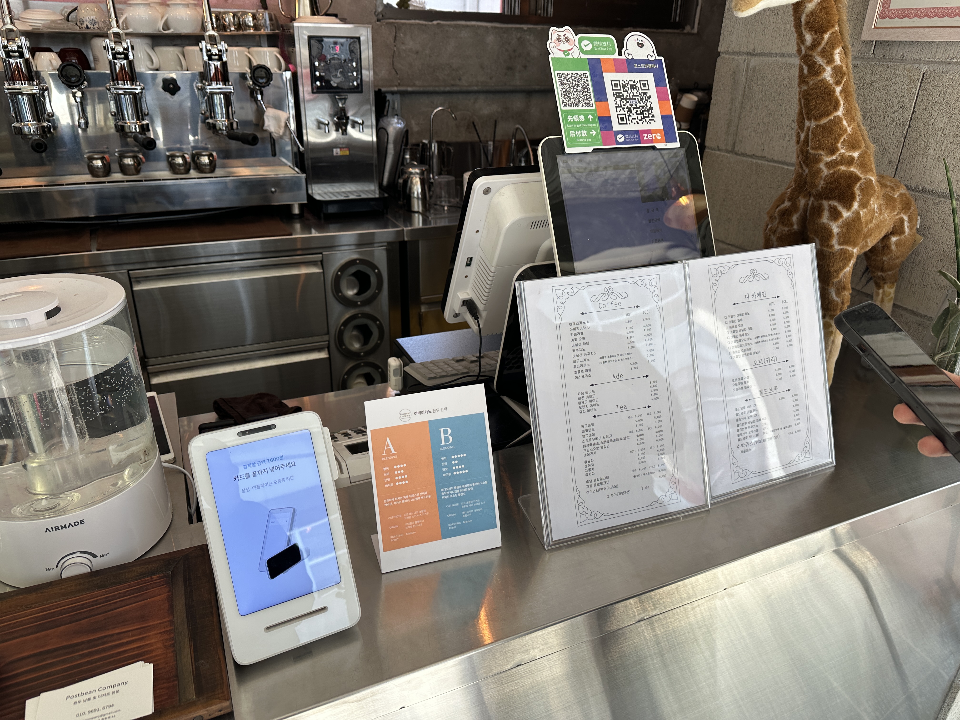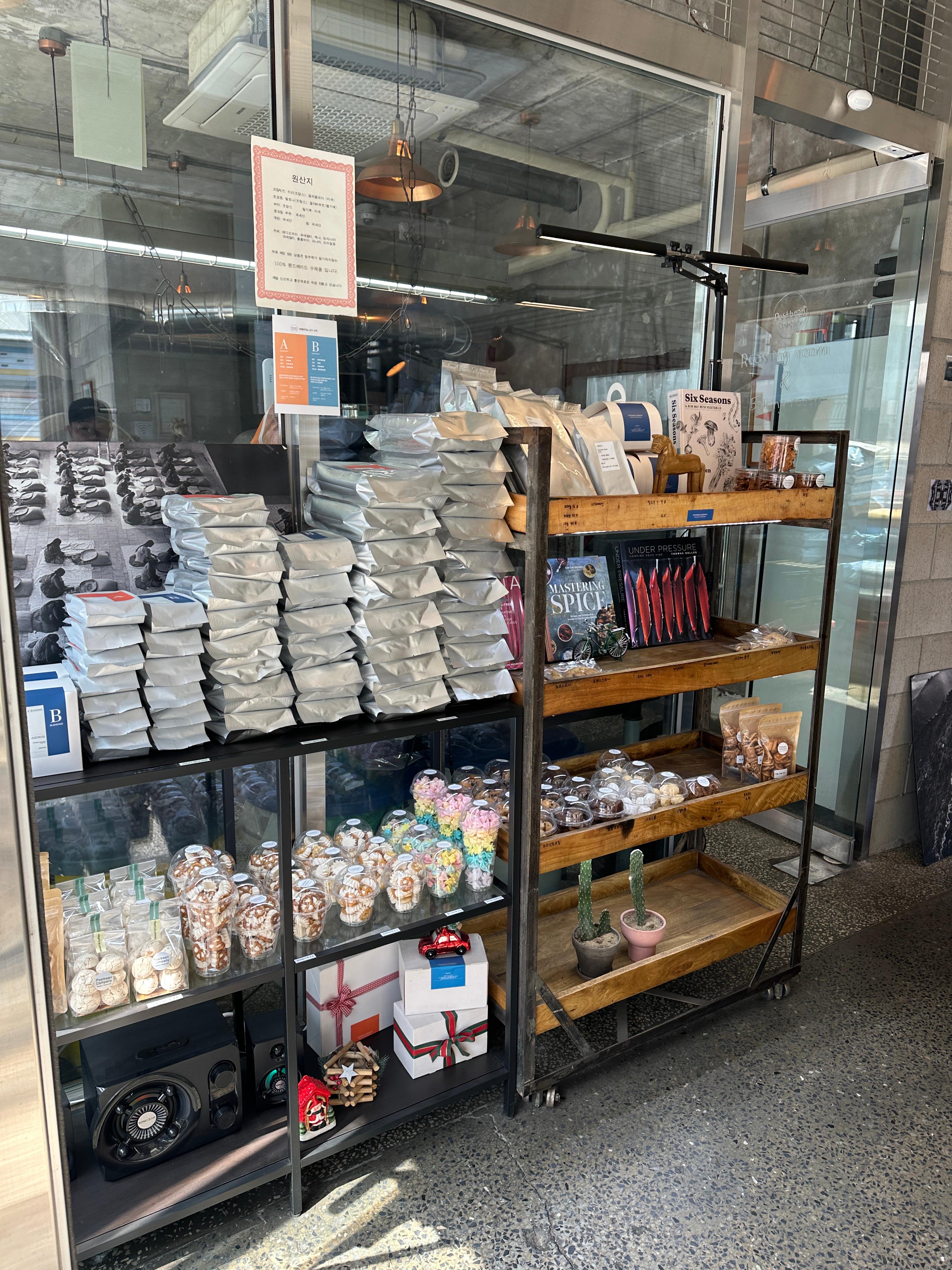 포스트빈컴퍼니의 입구에 들어서면 이렇게 1층 주문장소가 보입니다. 사진처럼 커피콩을 직접 로스팅하시기도 하고, 베이킹 역시 직접 하는 곳입니다. 인상적이네요. 이런 곳 정말 오랜만에 봅니다. 진심이 느껴지는 카페네요.