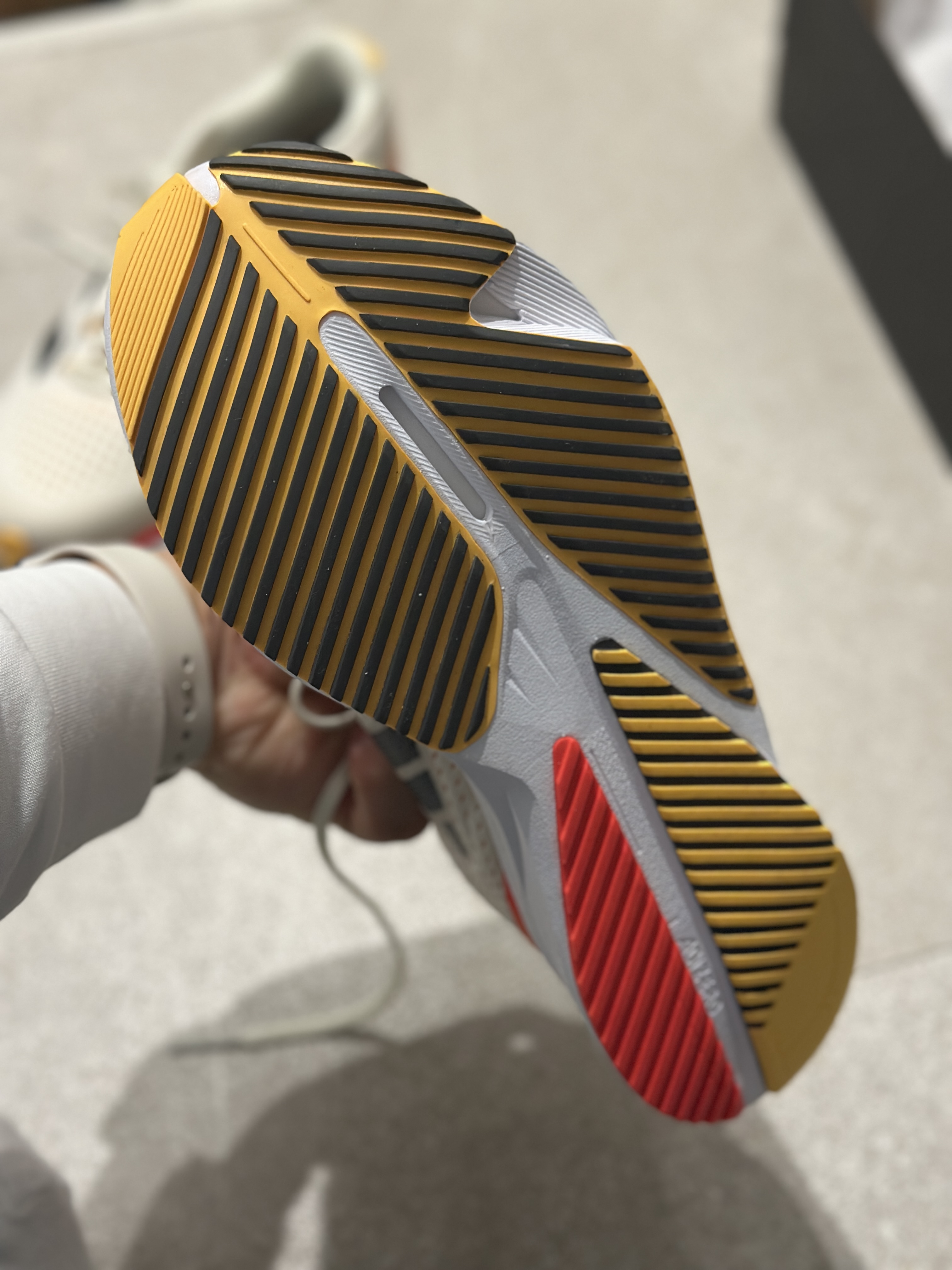 사진 찍어놓고 보니 더 예쁜듯 하다. 부담되지 않는 색배합이 매력적이고, 밑창역시 견고한 느낌이 딱 드는 그런 디자인이었다. 보트모양의 옆모양은 뛸 때 뒷꿈치가 닿는 부분에서 꽤 매력적일 듯 하고, 디자인적으로는 깔 게 없어보였다.
