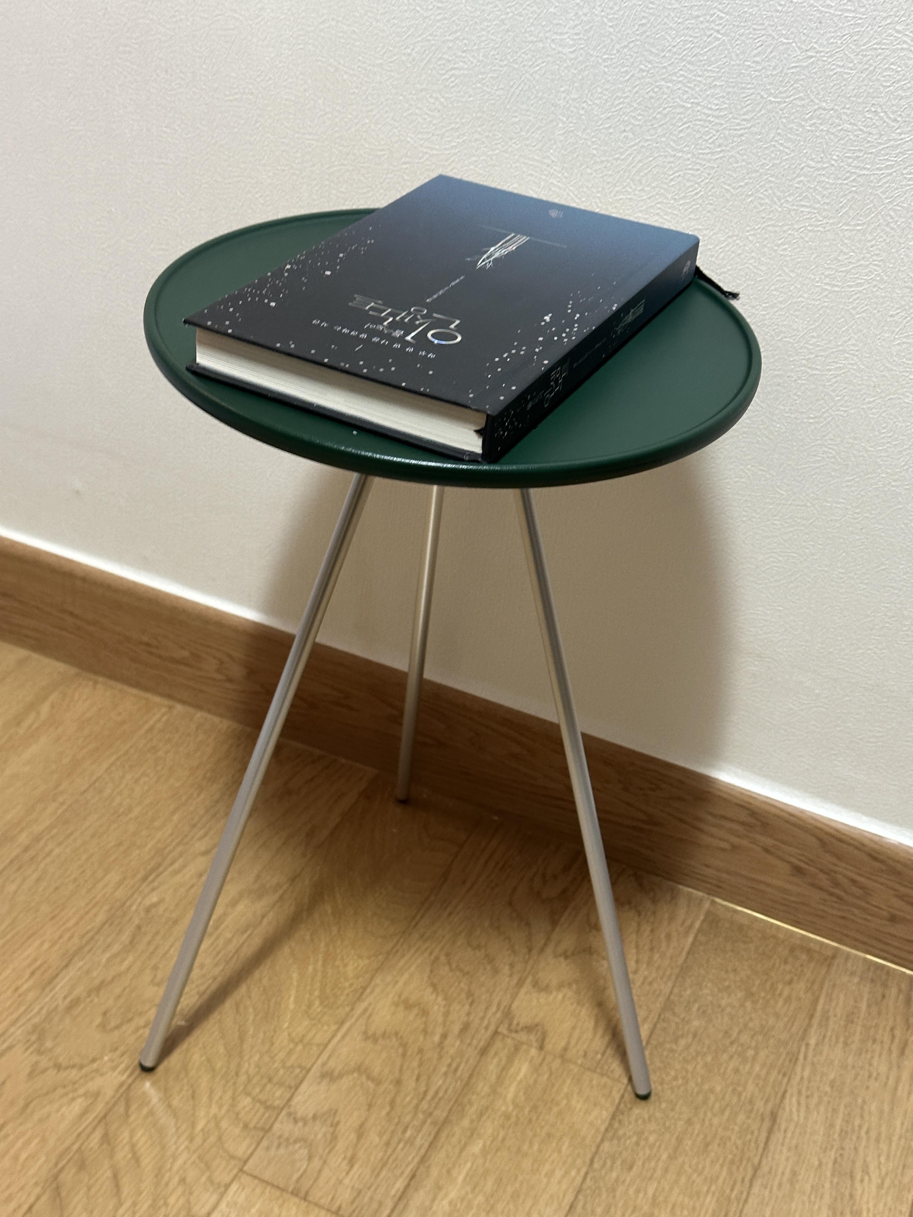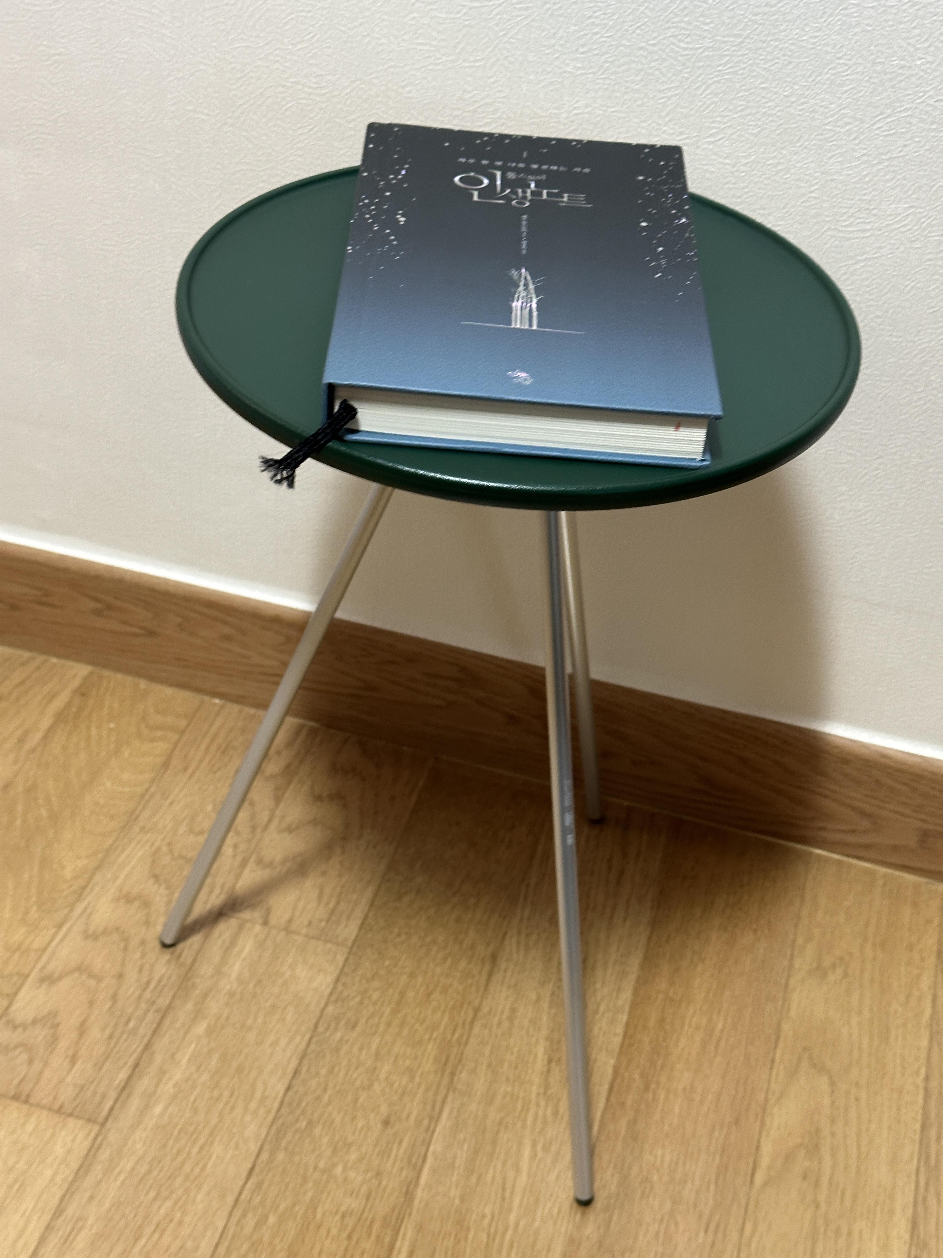바로 눈앞에 보이던 체어원도 올려보고, 읽던 책도 올려봤어요. 간단하게 집에서 사용하기 좋아 보입니다. 저는 굳이 캠핑 가서 사용할 것 같지는 않네요 ㅋㅋ