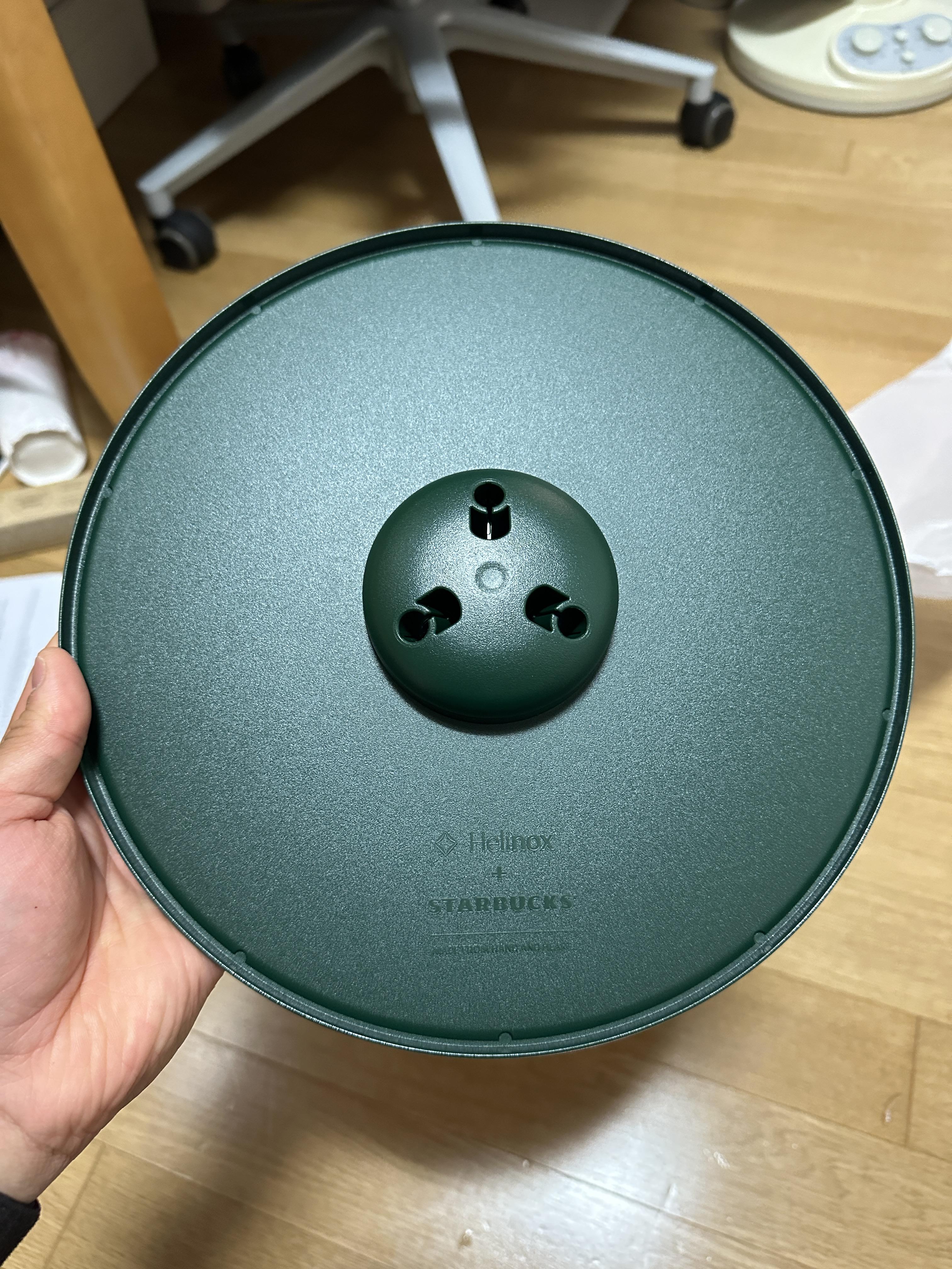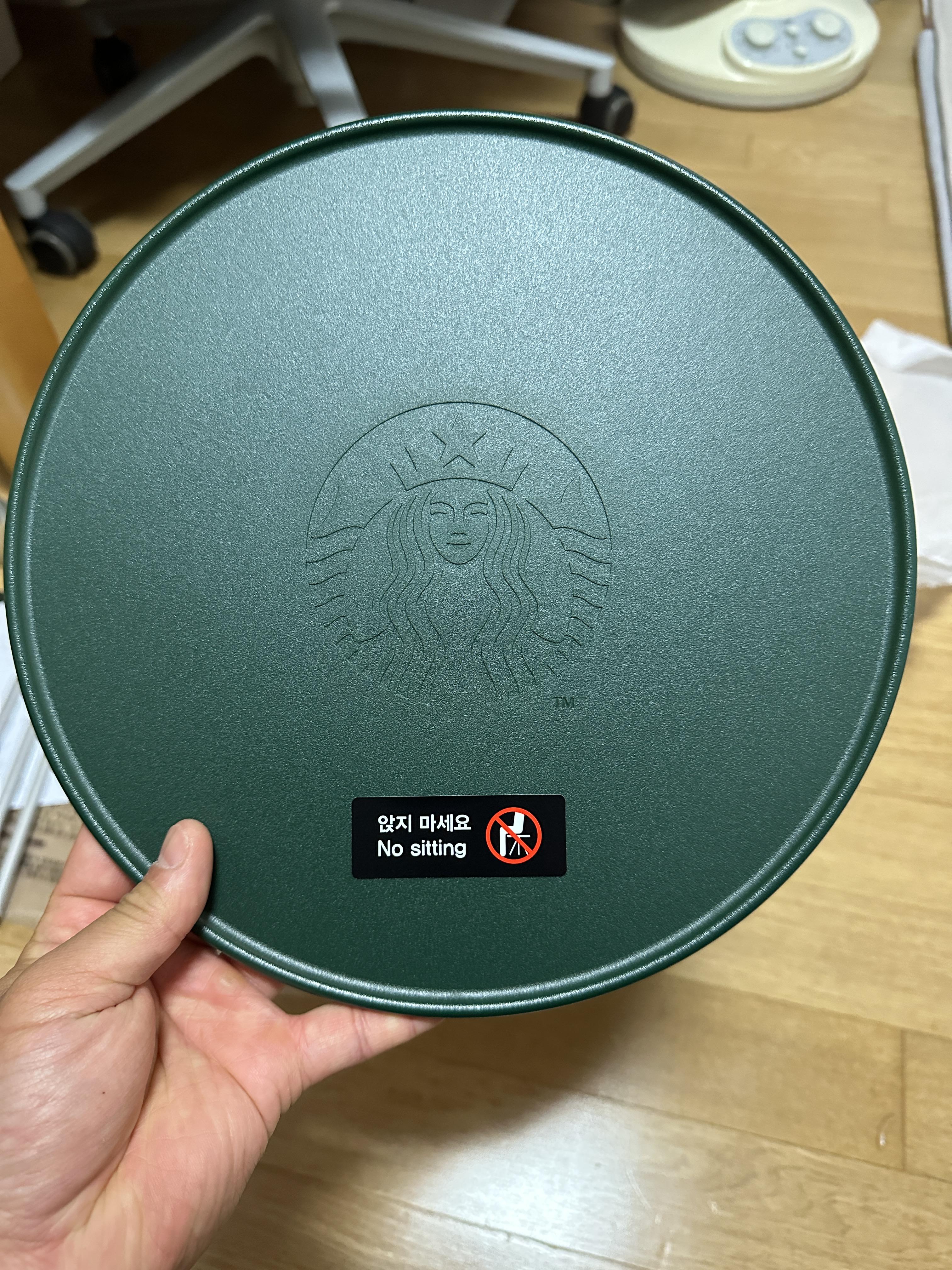 상판에 스타벅스 사이렌 마크가 크게 음각으로 되어 있습니다.