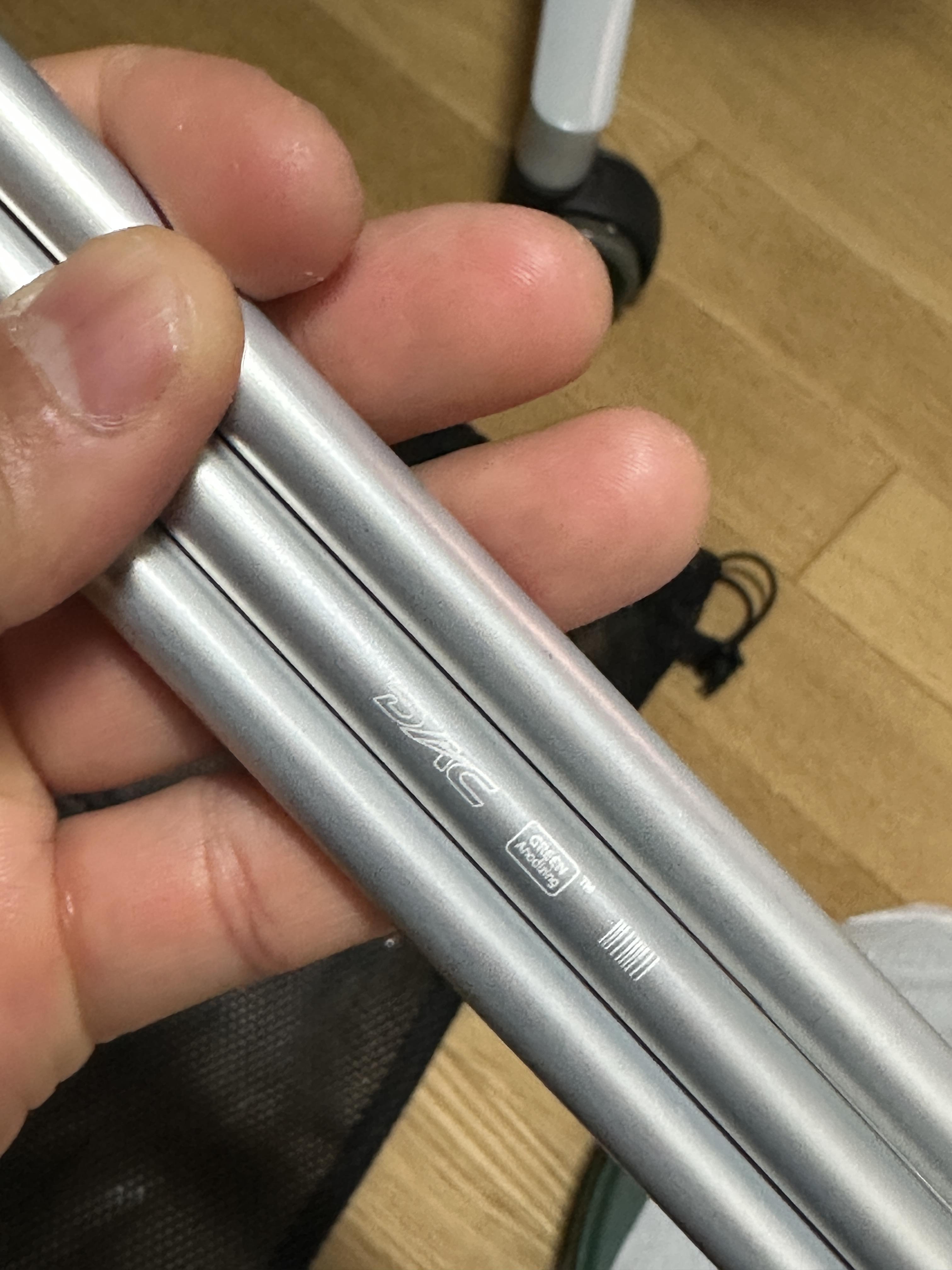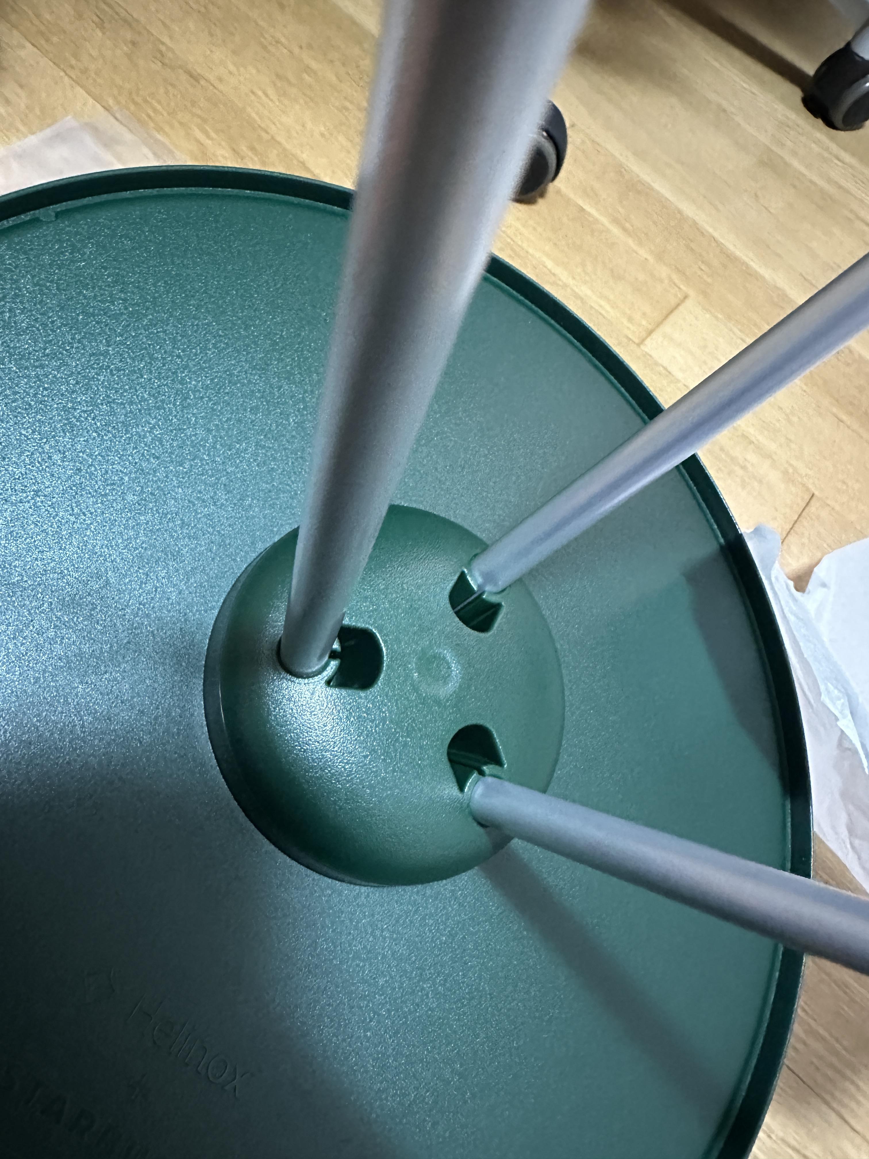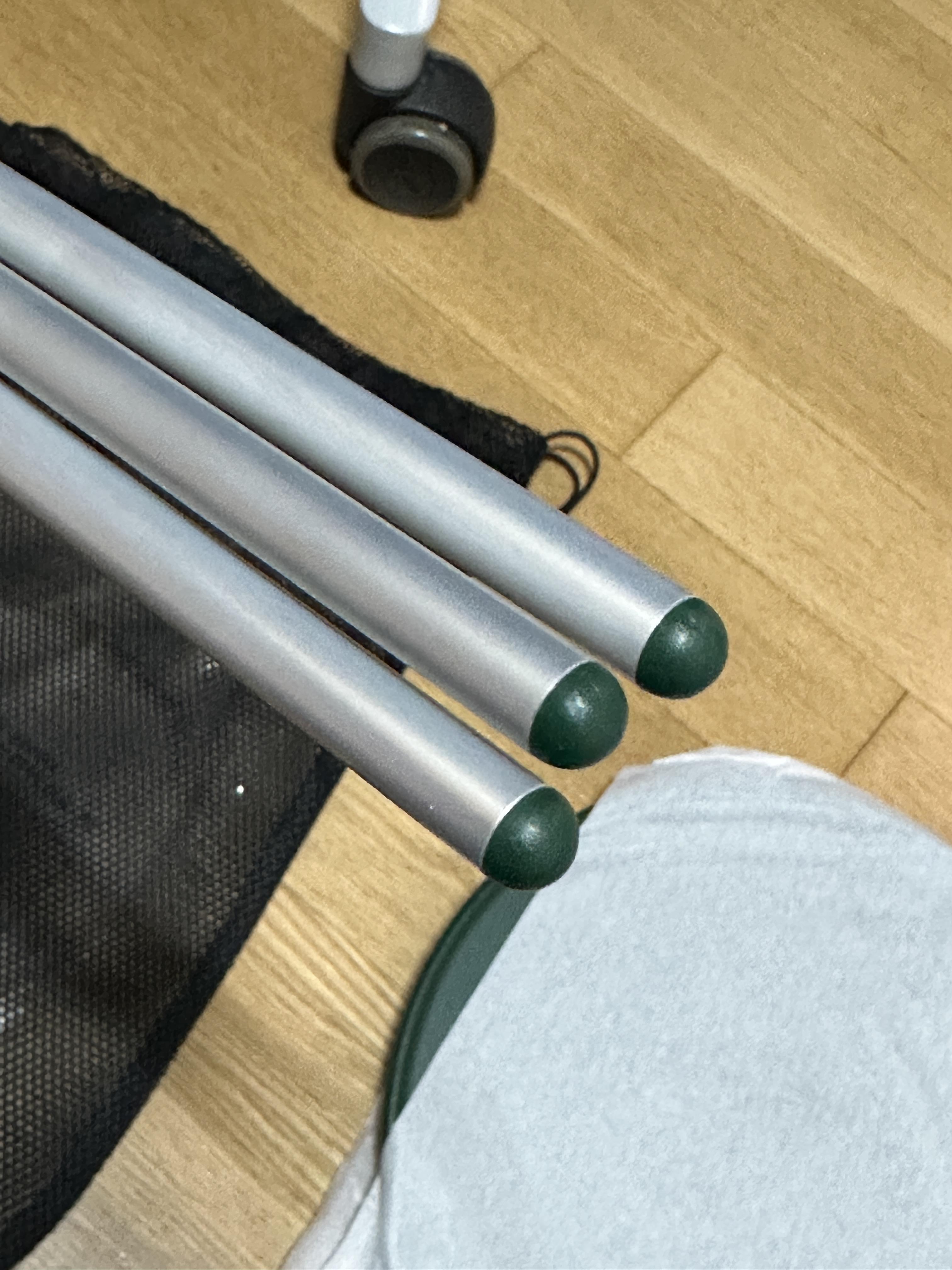 다리 역할을 하는 폴대입니다. 사실 이 폴대가 가장 궁금했답니다. DAC마크를 달고 있는 것을 보니 그래도 신경을 썼구나 하는 생각이 드네요. 폴 끝의 마감도 상판의 색깔과 동일한 그린으로 되어 있는 것이 귀엽습니다.