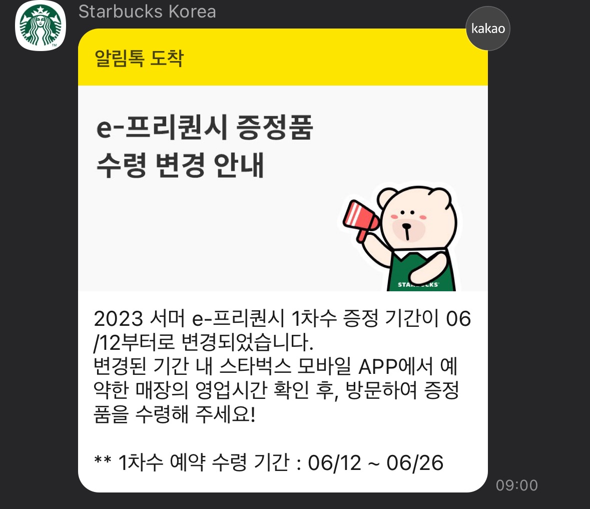 2023 스타벅스 서머 e-프리퀀시 1 차수 증정기간 변경 : 6월 17일부터 -> 6월 12일부터로 변경