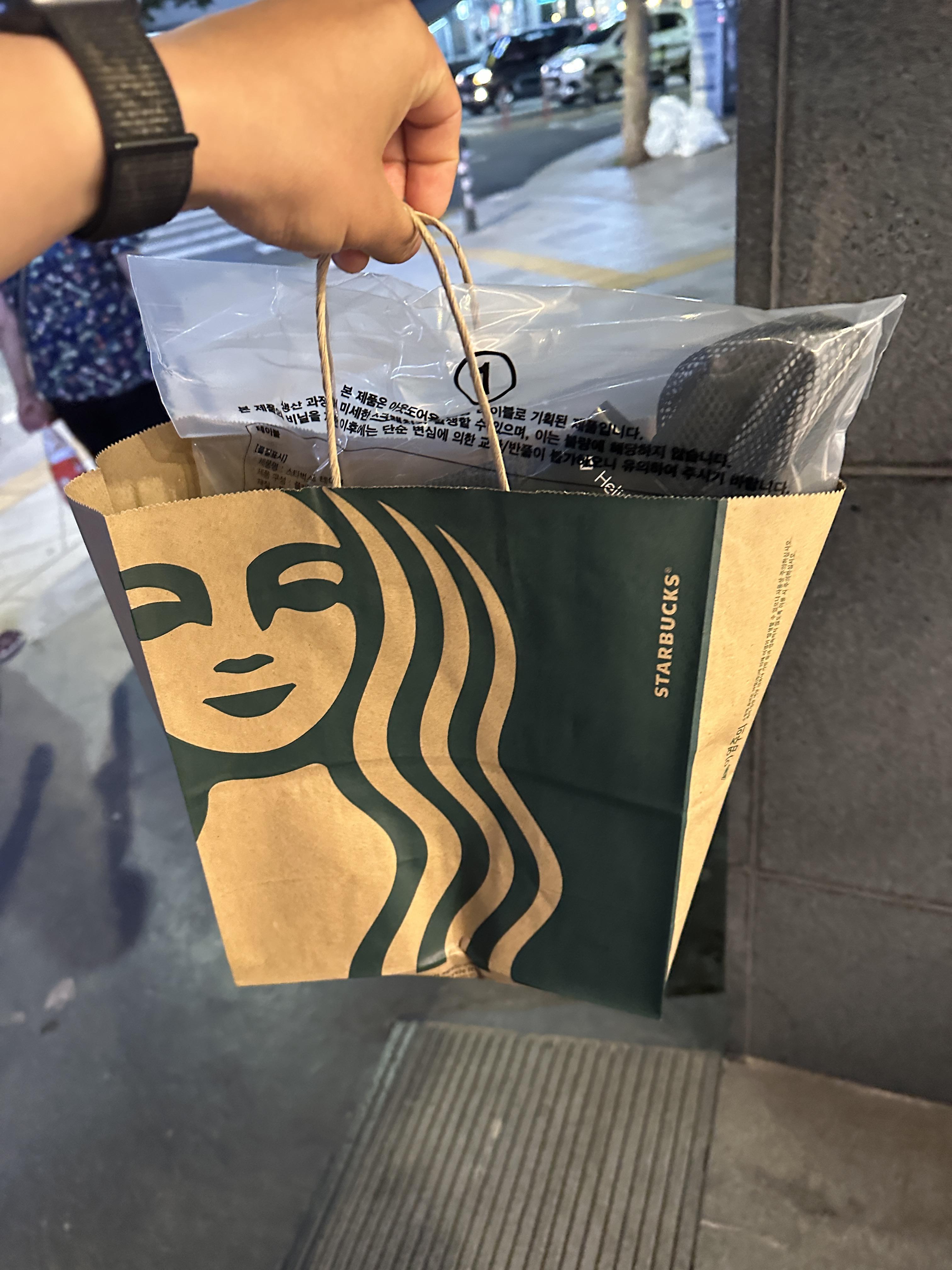직원분께 교환하러 왔다고 말씀드리고 위의 바코드를 보여드리면, 바로 꺼내 주시는데, 역시 스타벅스 직원분들은 너무 친절하십니다. ㅋㅋㅋ 쇼핑백에 깔끔하게 넣어서 바로 주셨어요 ㅎㅎ