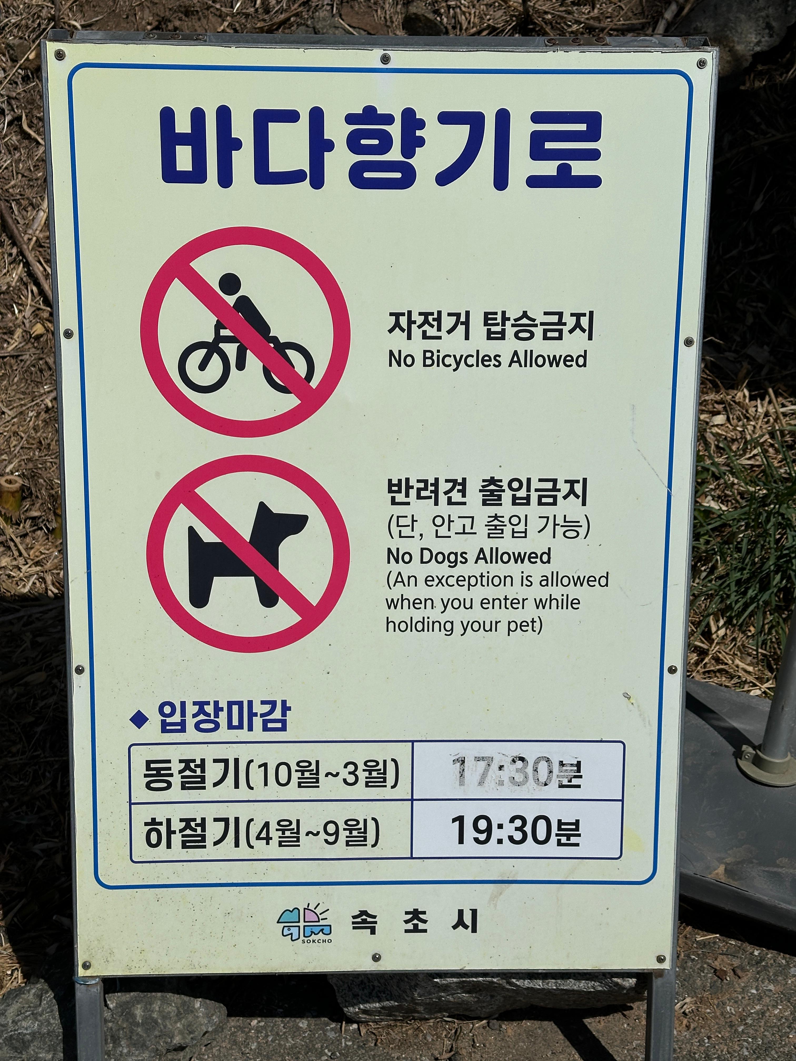 외옹치바다향기로는 속초해변길 제 5길과 이어지는 길로, 데크길 + 야자매트길입니다. 입장마감 시간이 있는 것도 참고하시고요.