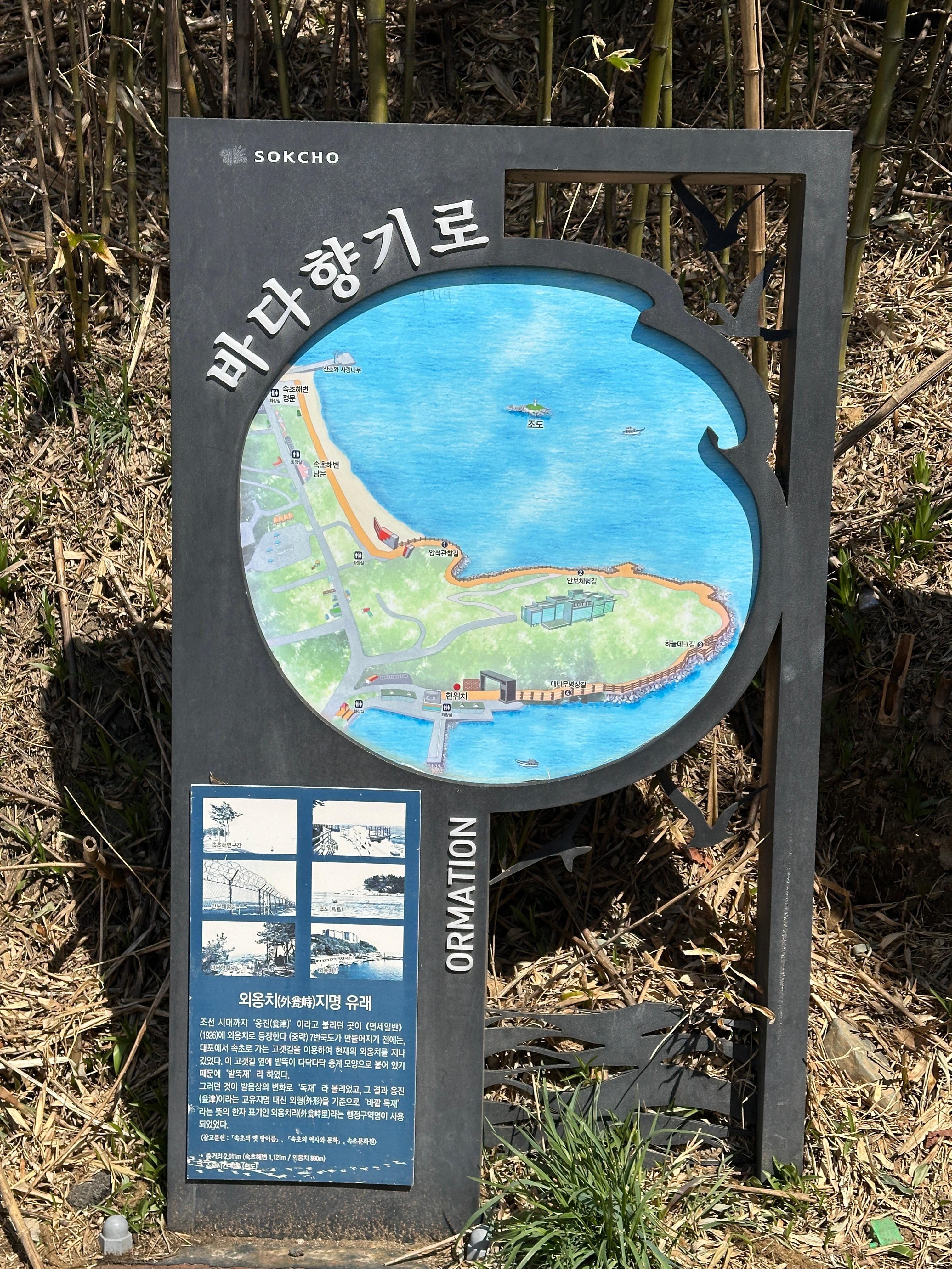 외옹치바다향기로를 걷다보면 이렇게 지명의 유래도 찾아볼 수 있습니다. 중간중간 넓은 데크에서 바다를 맘껏 즐길 수 있는 공간이 곳곳에 있습니다.