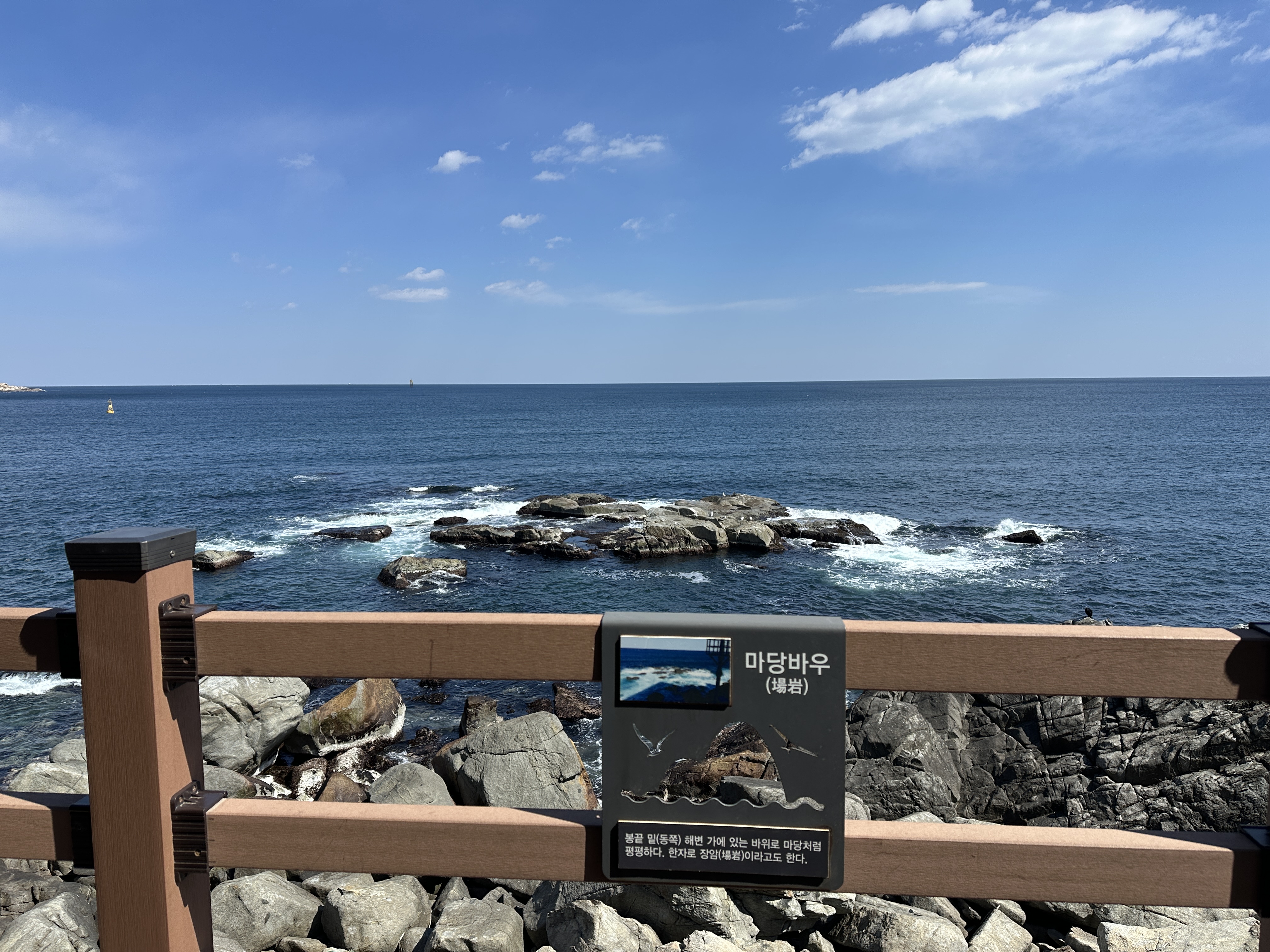 조금만 더 걸어보니 이렇게 외웅치해변이 보이기 시작합니다. 생각보다 거리가 짧네? 싶은 생각이 드는 순간입니다. 마당바우라는 지명도 발견합니다. ㅋㅋㅋ 아마도 옛사람들 입에서 입으로 이름이 불려왔겠죠?