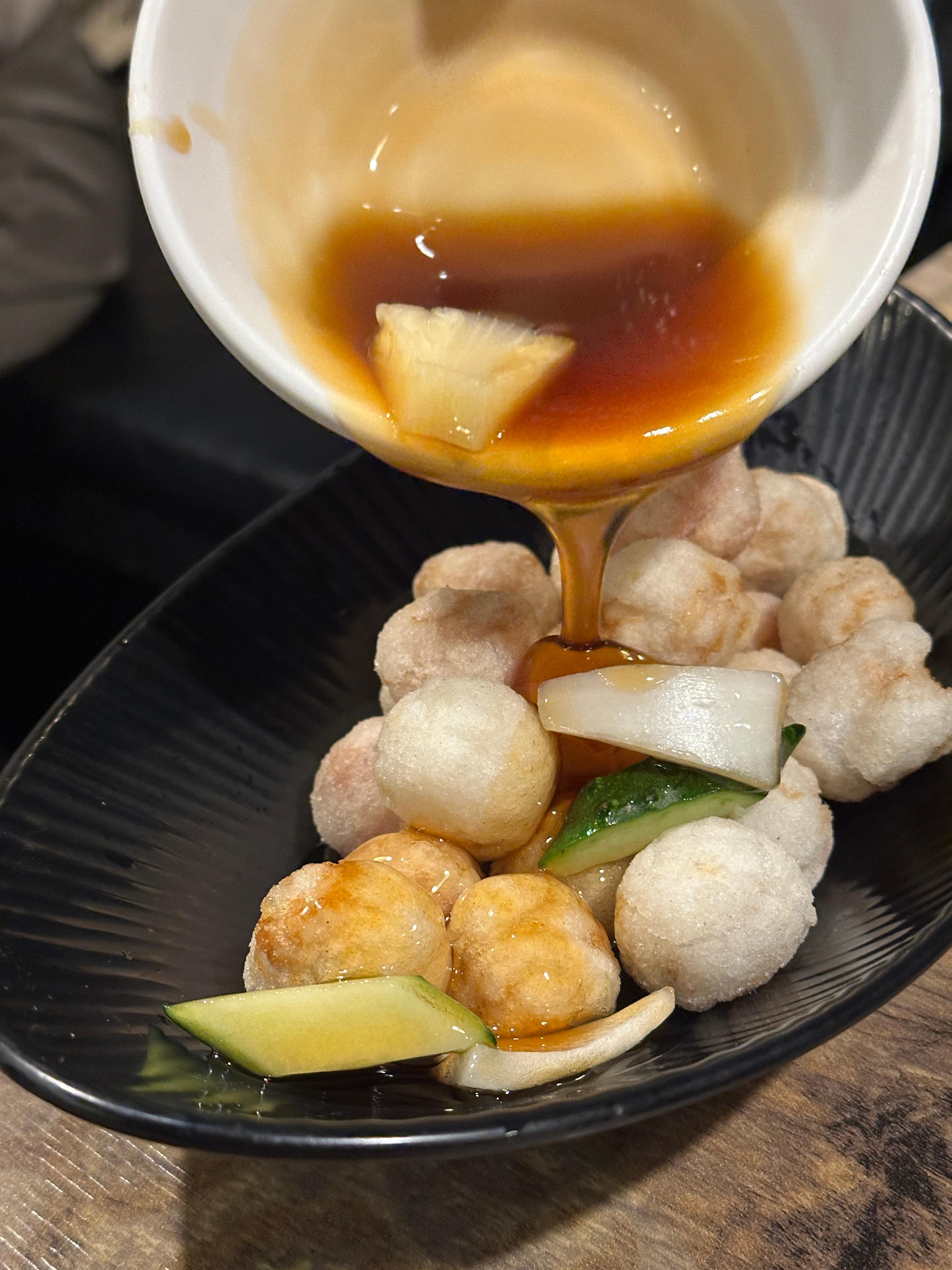 한강진역 중식 전문점 한남동 자리의 목화솜탕수육입니다. 알고보니 약간 상징적인 메뉴였나봐요 ㅋㅋ 모양도 귀엽고 바삭한 것도 좋았습니다. 고기도 맛있었고요 ㅎㅎ안에 찹쌀도 있어서 꿔바로우처럼 쫄깃한 식감도 챙겼습니다. 소스와 잘 어우러지니까 먹는 재미도 있구요.