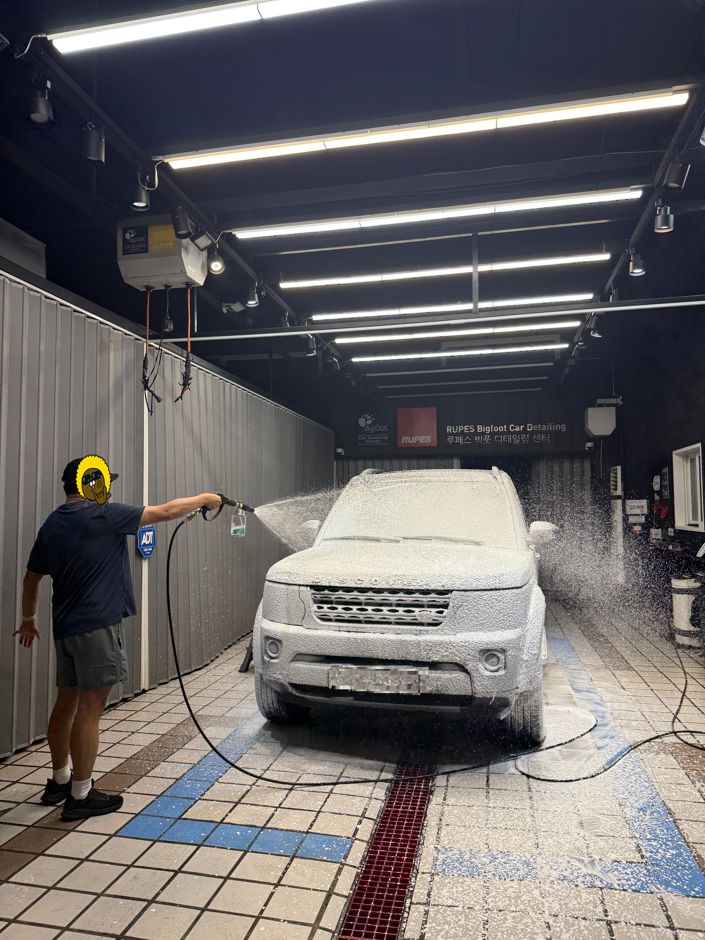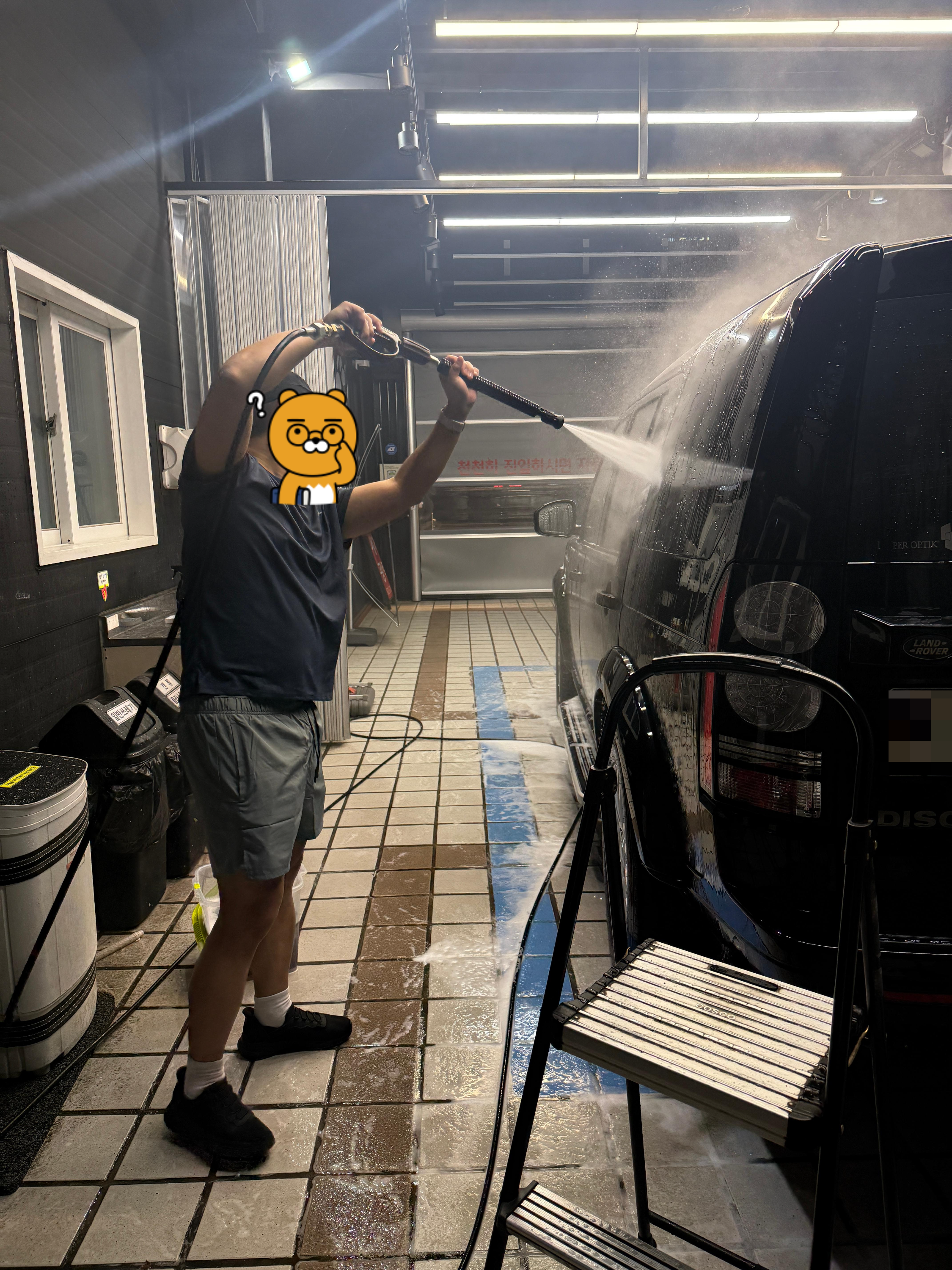 루페스빅풋 디테일링센터 동대문점에서 신나게 버블건과 고압수로 청소하는 모습입니다. 의자가 높아서 제 디스커버리 같은 차량에게도 유용했습니다.