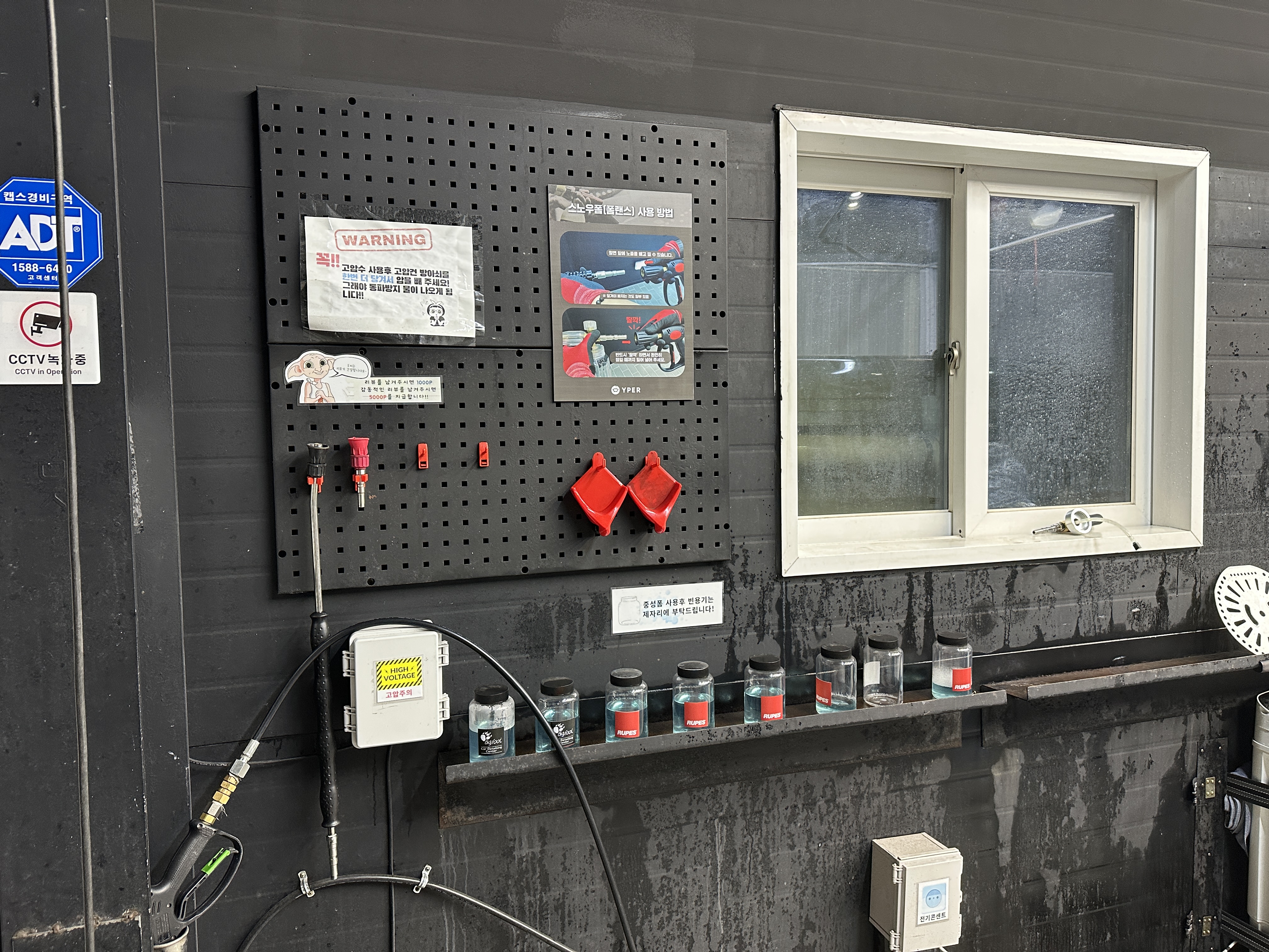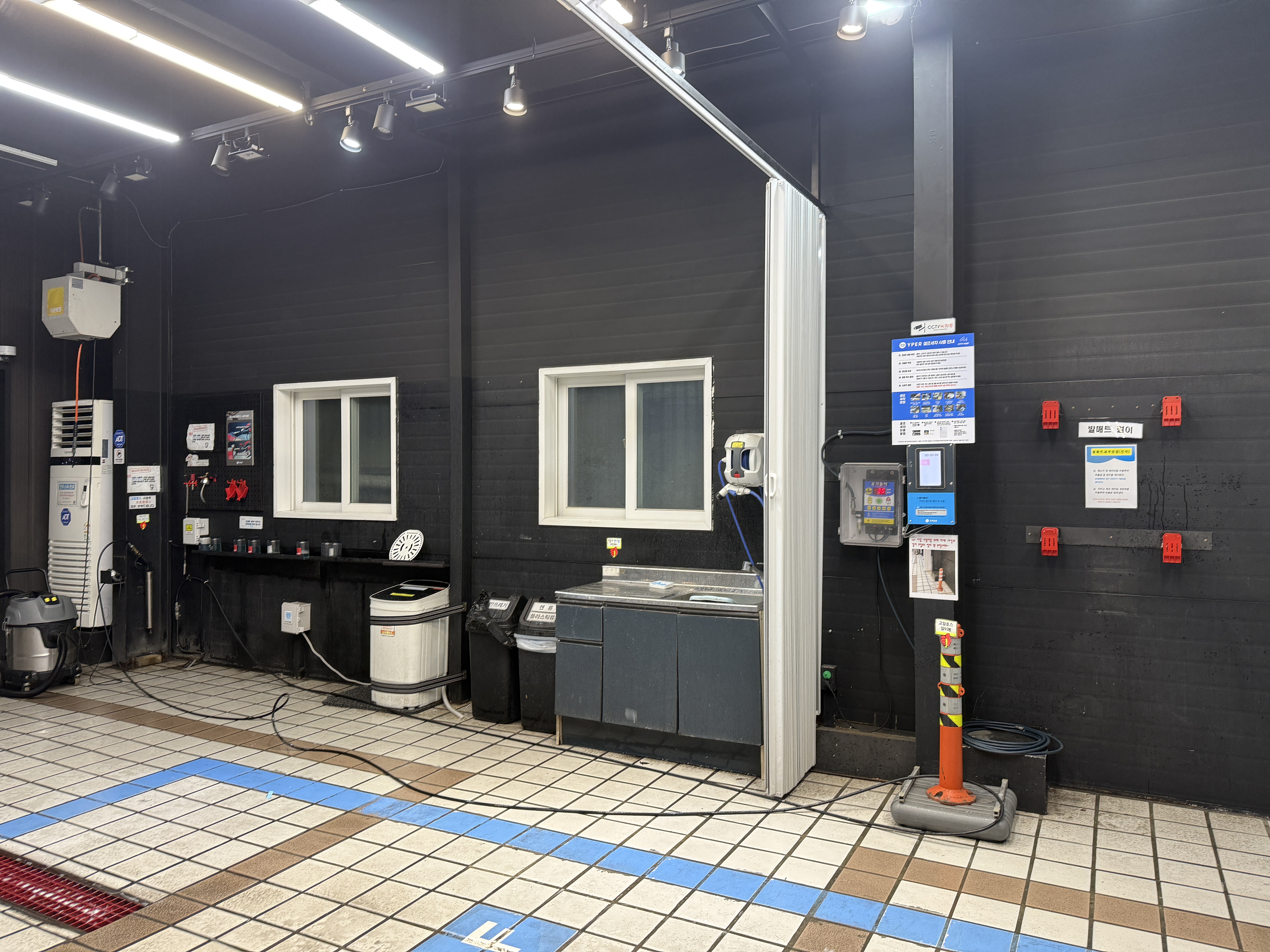 차를 청소하는 장비들은 오른편에 쭉 비치되어 있고요.