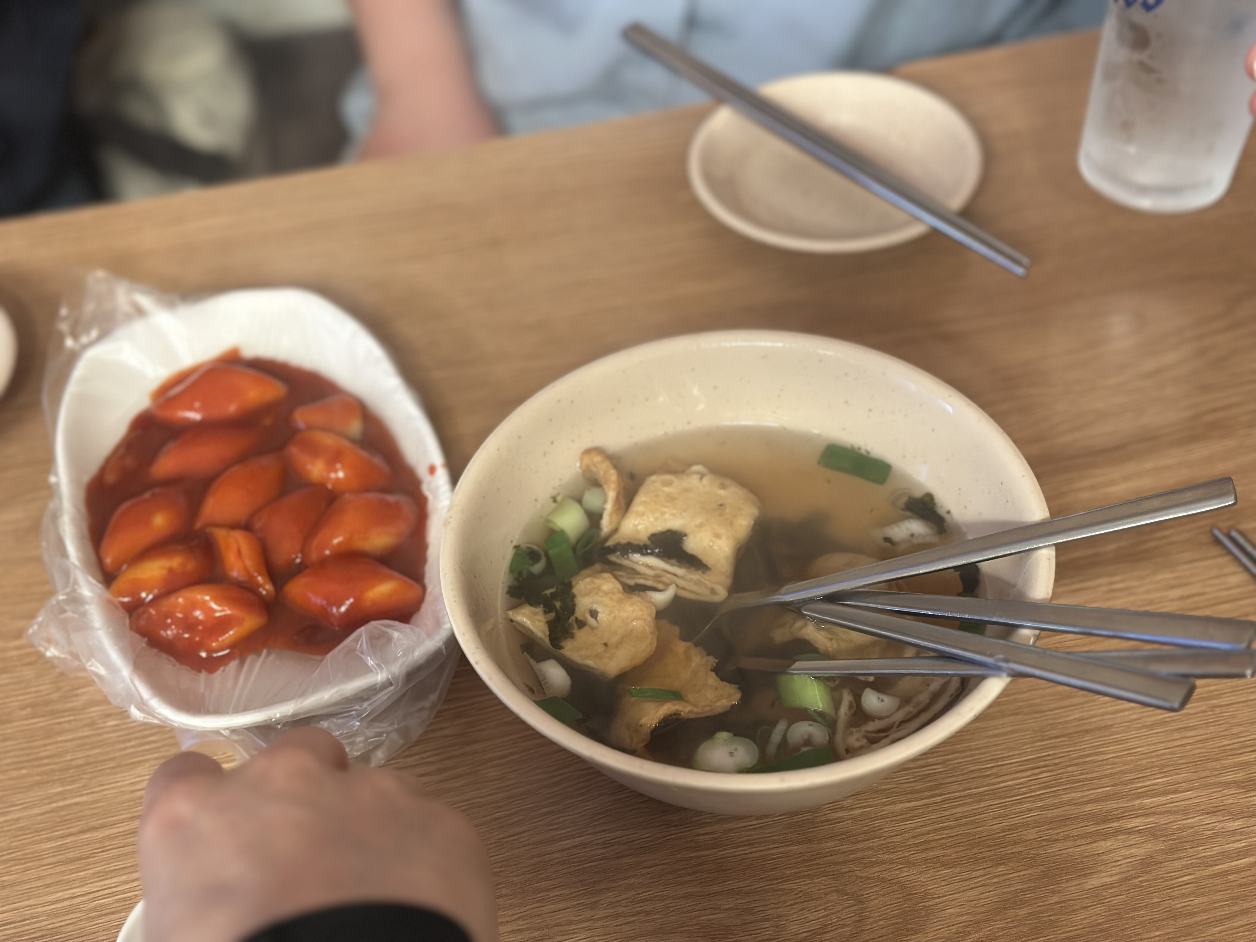 동대문역 왕십리 원조곱창은 주문과 동시에 입구의 철판에서 바로 조리가 들어갑니다. 잠시 기다리니 떡볶이 약간과 오뎅국물이 나오는데, 딱 예전 어릴 때 먹던 포장마차 느낌 그대로입니다.ㅋㅋㅋ