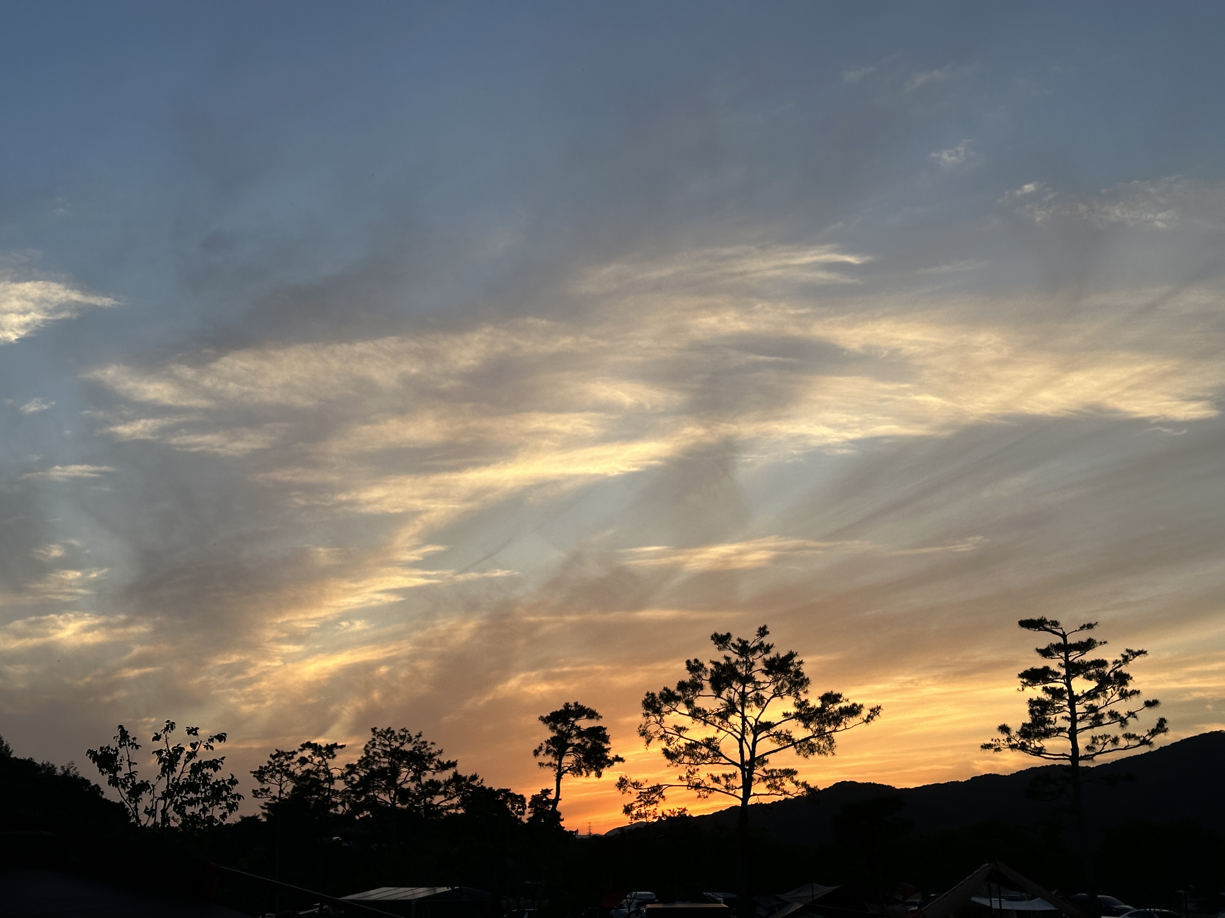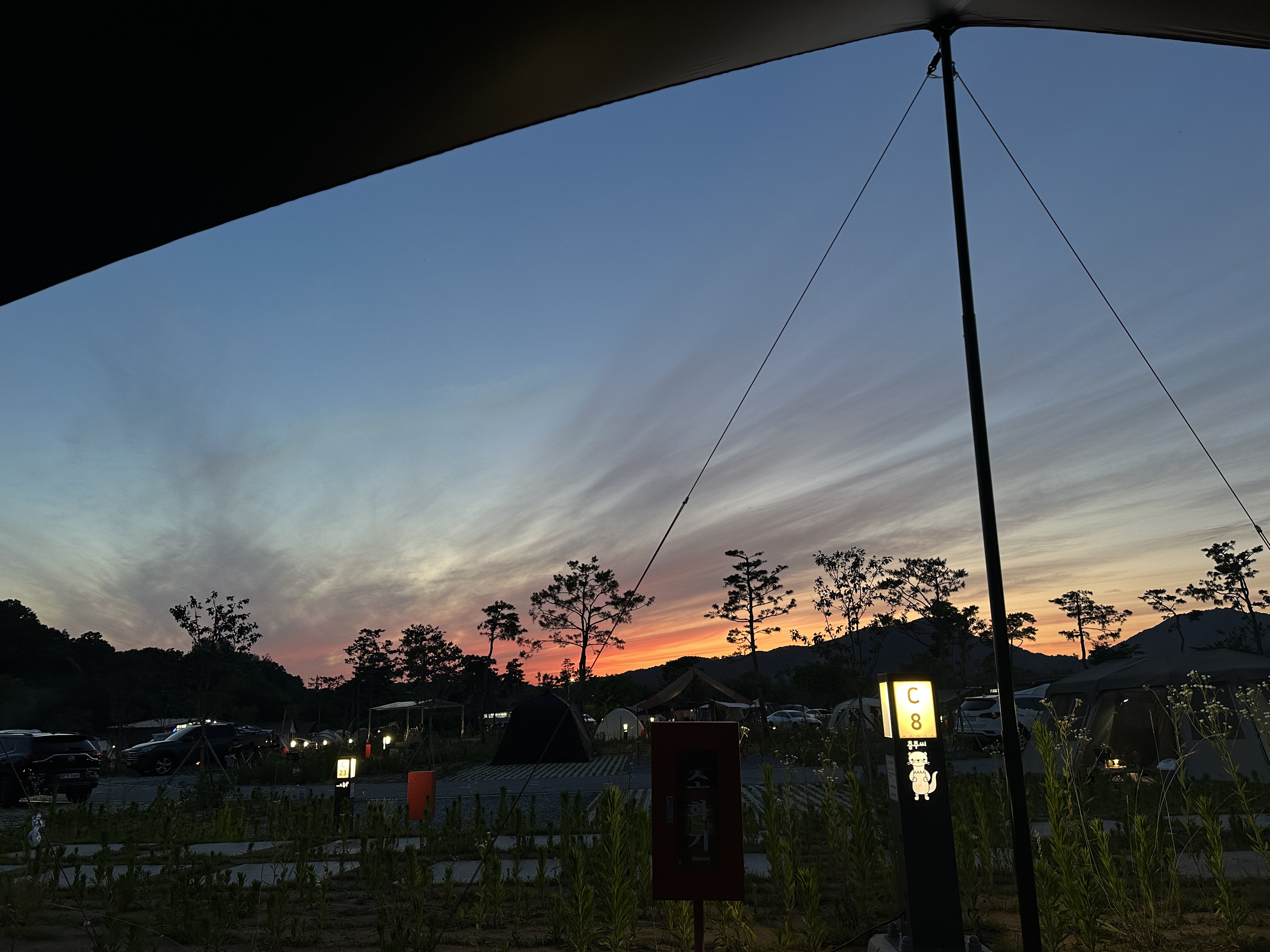 노을이 이렇게 지는 모습도 볼 수 있습니다. 생각보다 너무 예뻐서 그야말로 캠핑의 맛을 느끼고 왔어요.