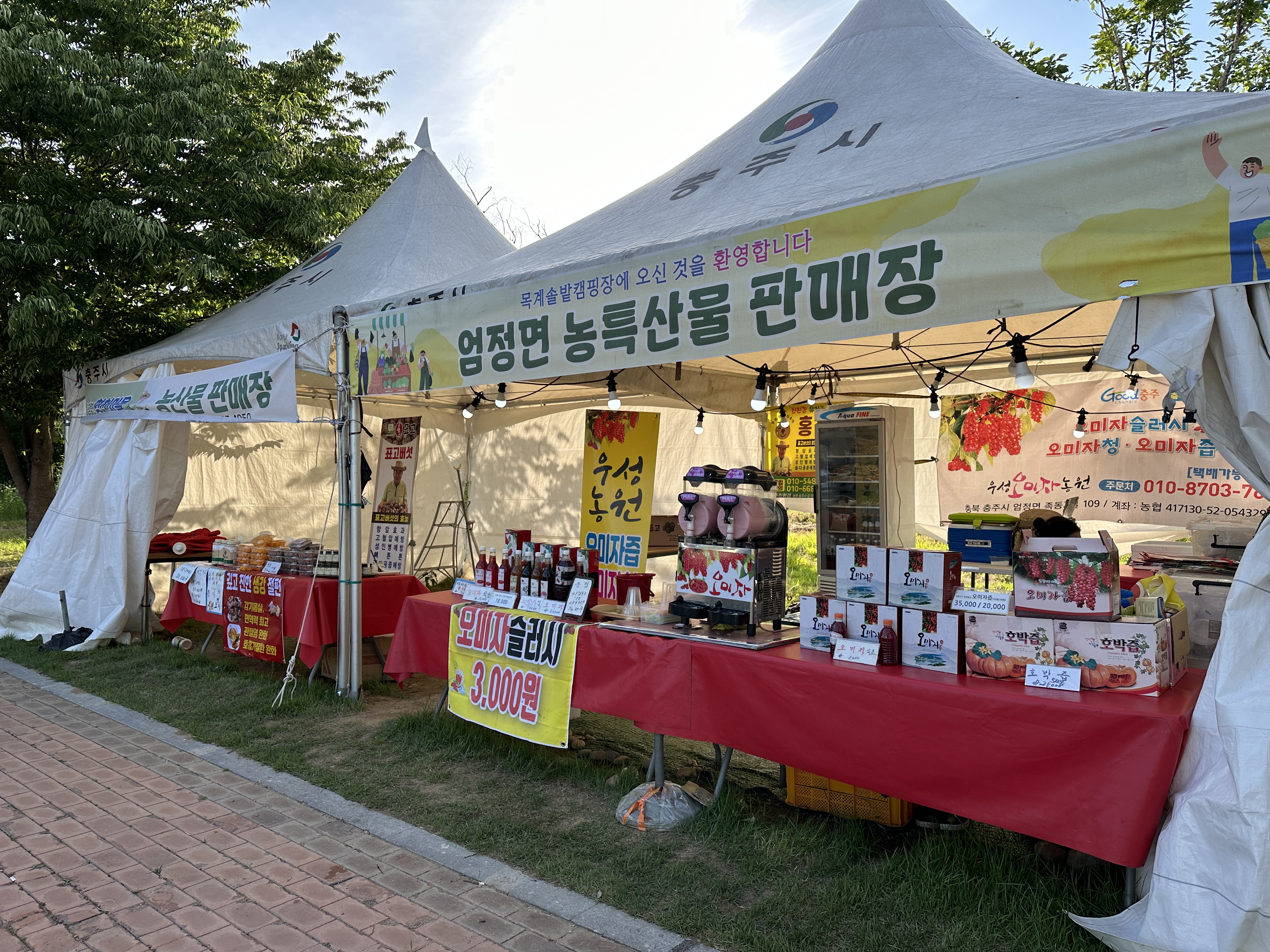 매점과 농특산물 판매장은 캠핑장 정 중앙에 위치하고 있습니다. 운영하시는 분들도 매우 친절하시고, 취급 물품도 많아서 만족스러웠어요. 목계솔밭캠핑장 올 때는 장을 많이 안 보고 와도 되겠구나 생각도 들었답니다.