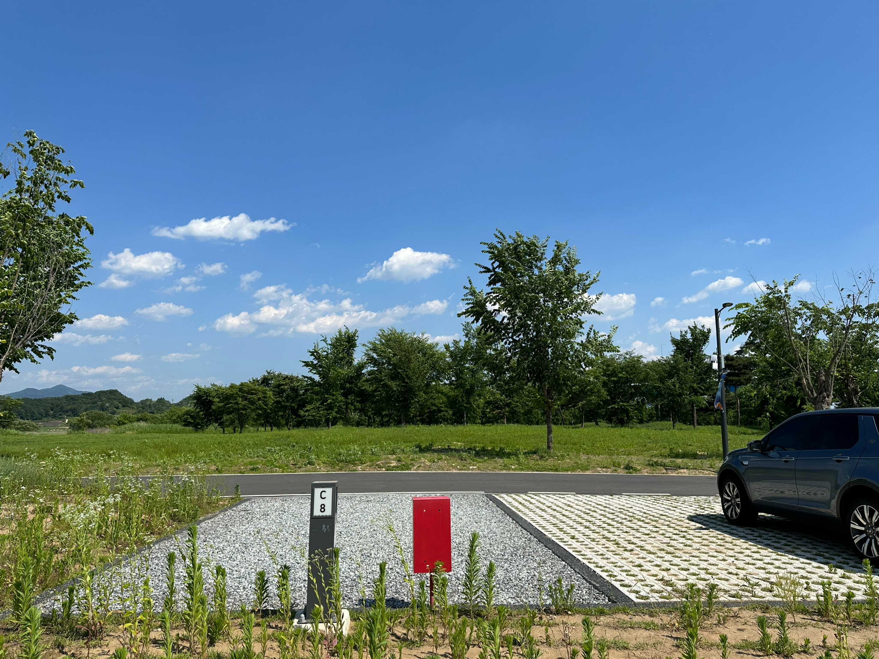 얼핏 보셔도 아시겠지만, 사이트 크기가 엄청나게 큽니다. 2인캠퍼이다 보니 일반 소형으로 예약했음에도 불구하고 8X10m 사이즈의 어마어마한 규모입니다. 심지어 주차공간은 또 따로입니다...ㅋㅋㅋ