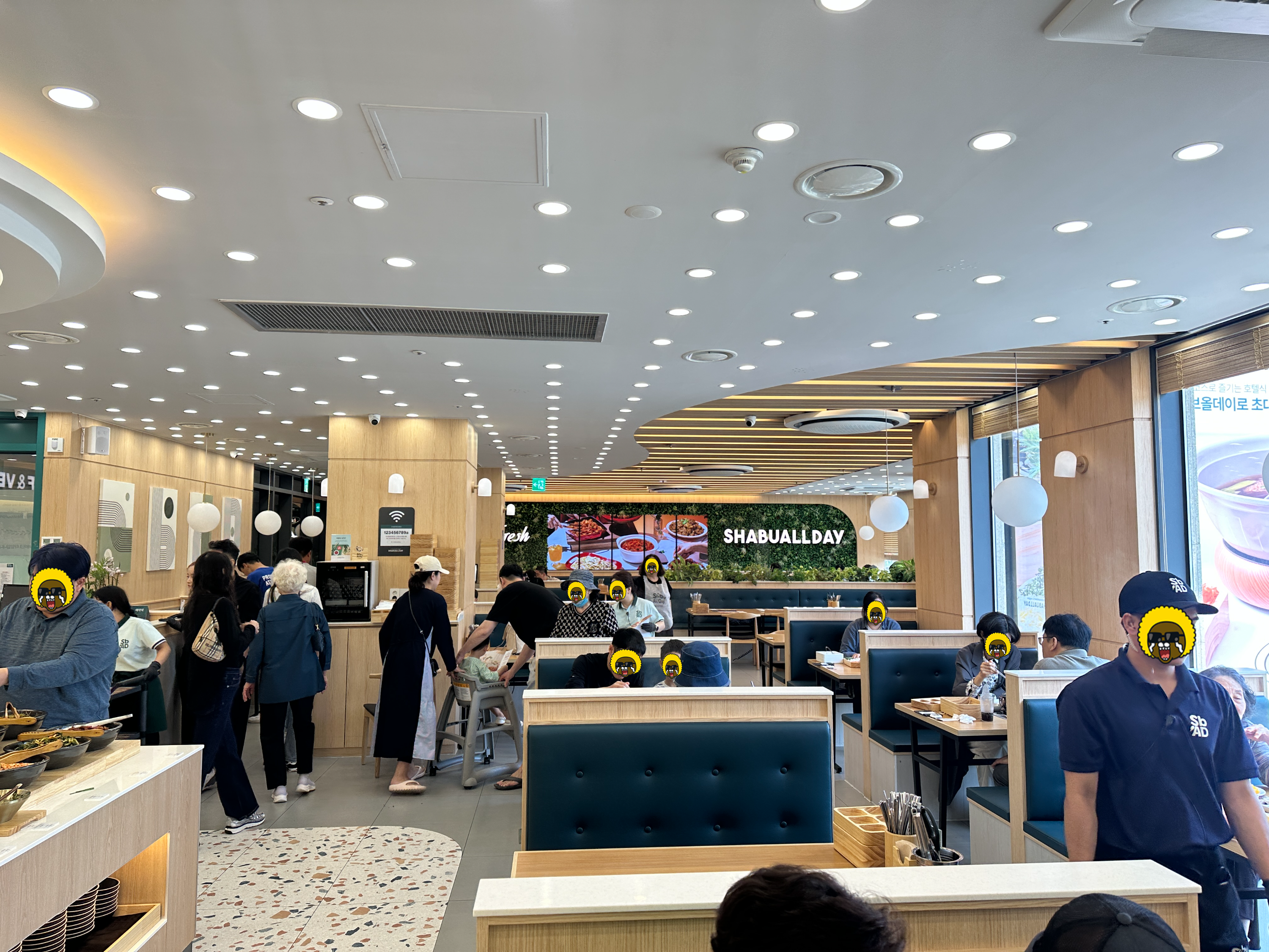 샤브올데이 다산테라타워점 실내입니다. 좌석이 적거나 공간이 좁은 건 아니지만, 사람이 워낙 많다보니 금세금세 빈 자리 없이 회전이 됩니다.