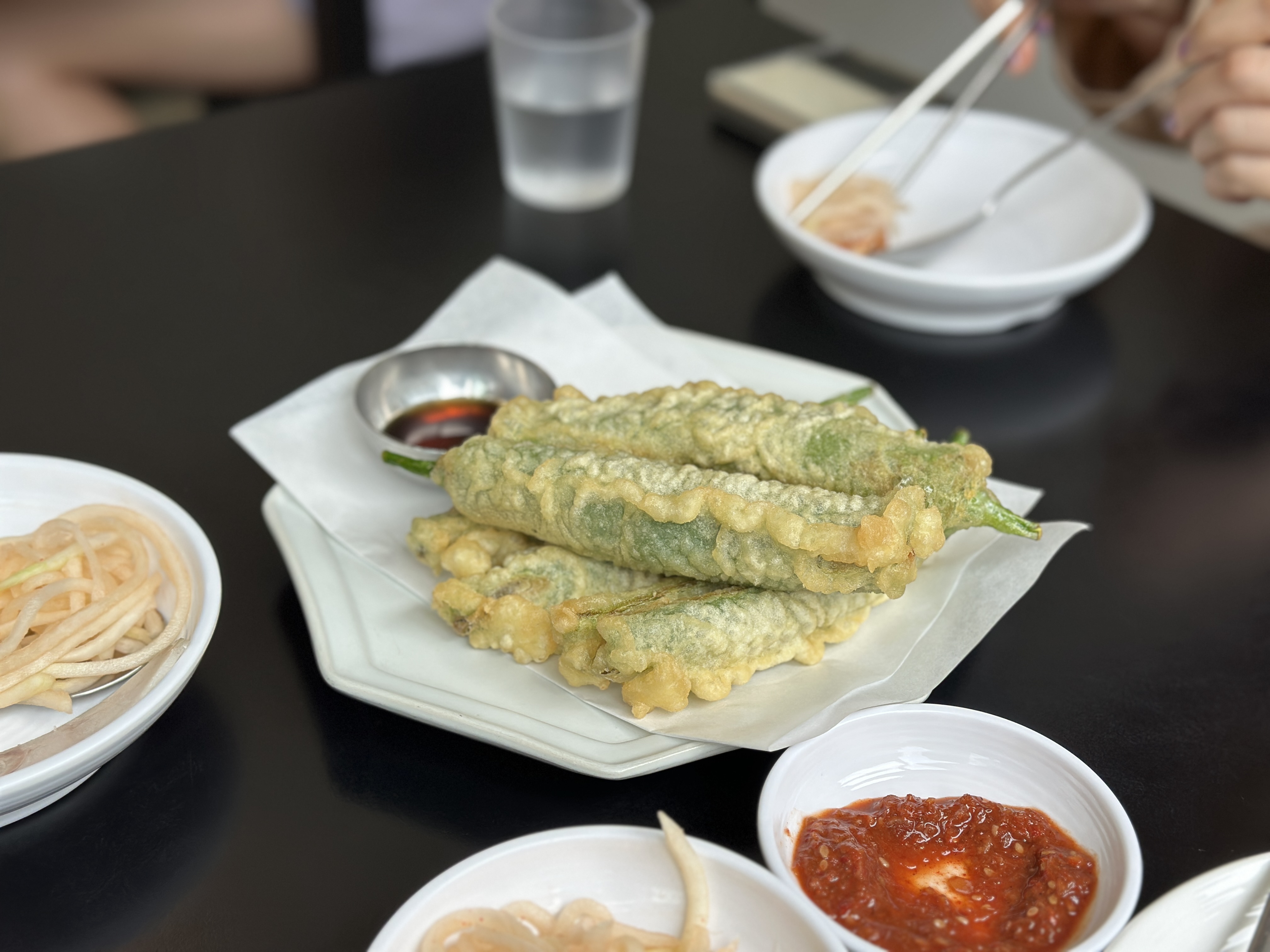두번째로 등장한 메뉴는 고추튀김입니다. 꽤 많이 시켜먹은 녀석인데, 단순합니다. 맛있어요. ㅋㅋㅋ 고추 안에 들어있는 고기반죽도 푸짐한 편이고, 맛은 당연히 인정이죠. ㅋㅋㅋ 간장에 콕 찍어 먹으면 절로 고개가 끄덕여집니다.