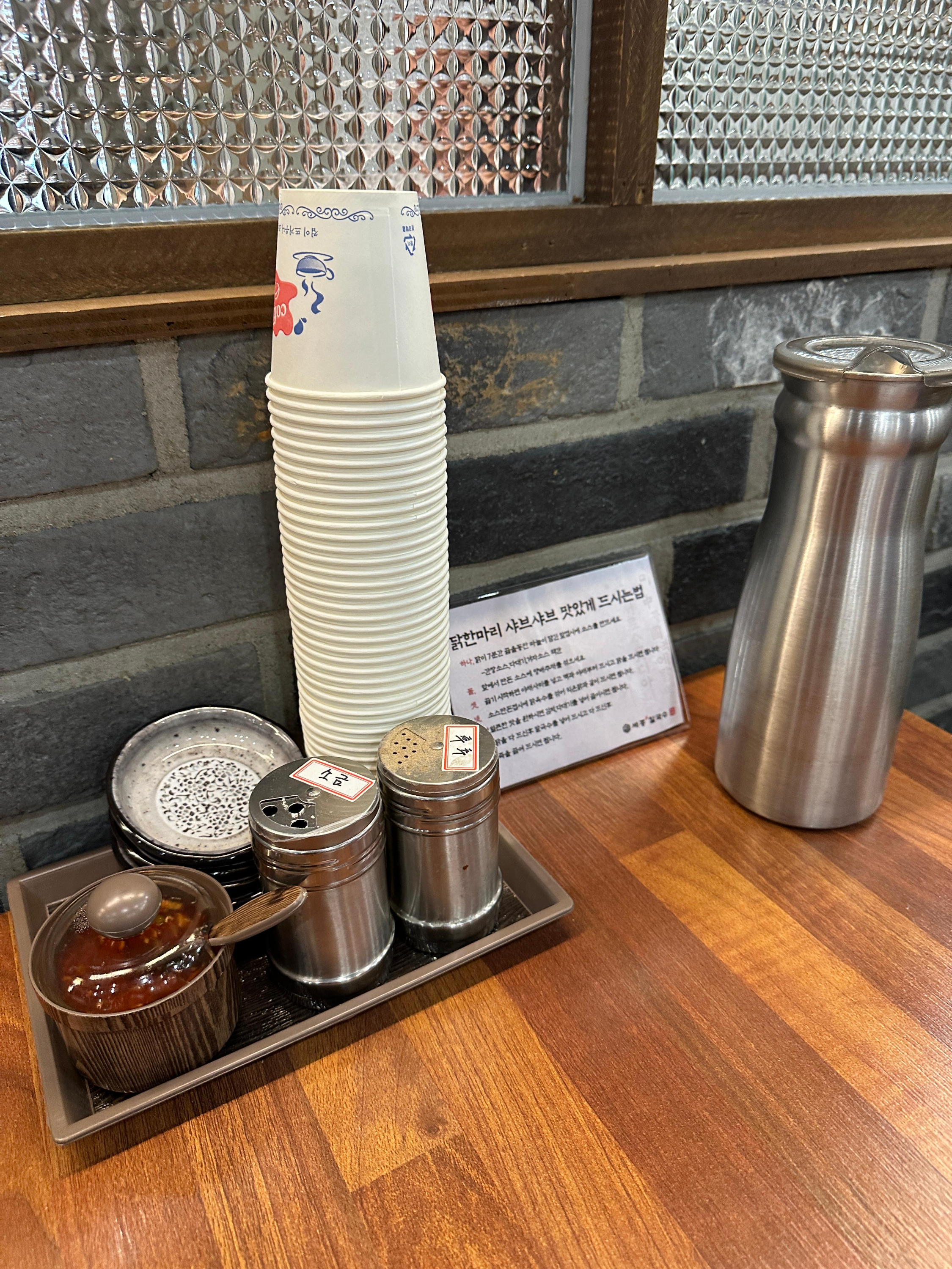 세종칼국수 군자본점의 실내입니다. 사실 이 식당이 들어오기 전에도 이 자리에 있는 식당들을 몇 번 왔어서 익숙한 스멜...ㅋㅋㅋ 테이블 간격도 꽤 괜찮고, 인테리어도 깔끔합니다.